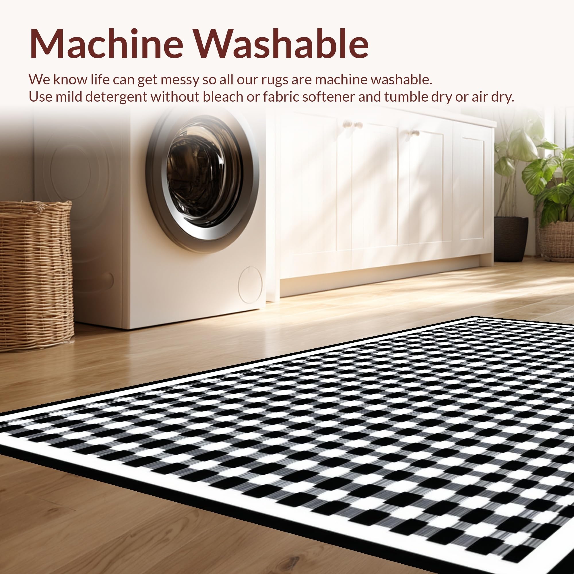 - Machine Washable: Our rugs can be easily thrown in the wash machine.