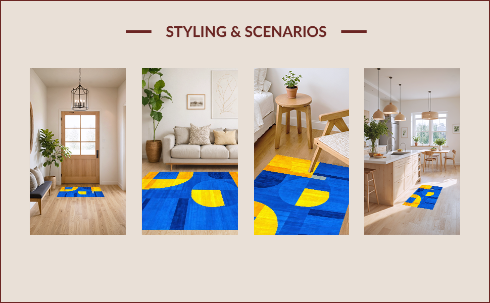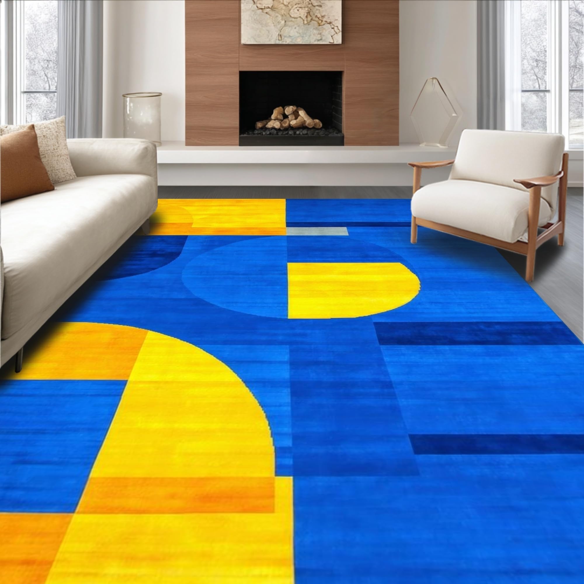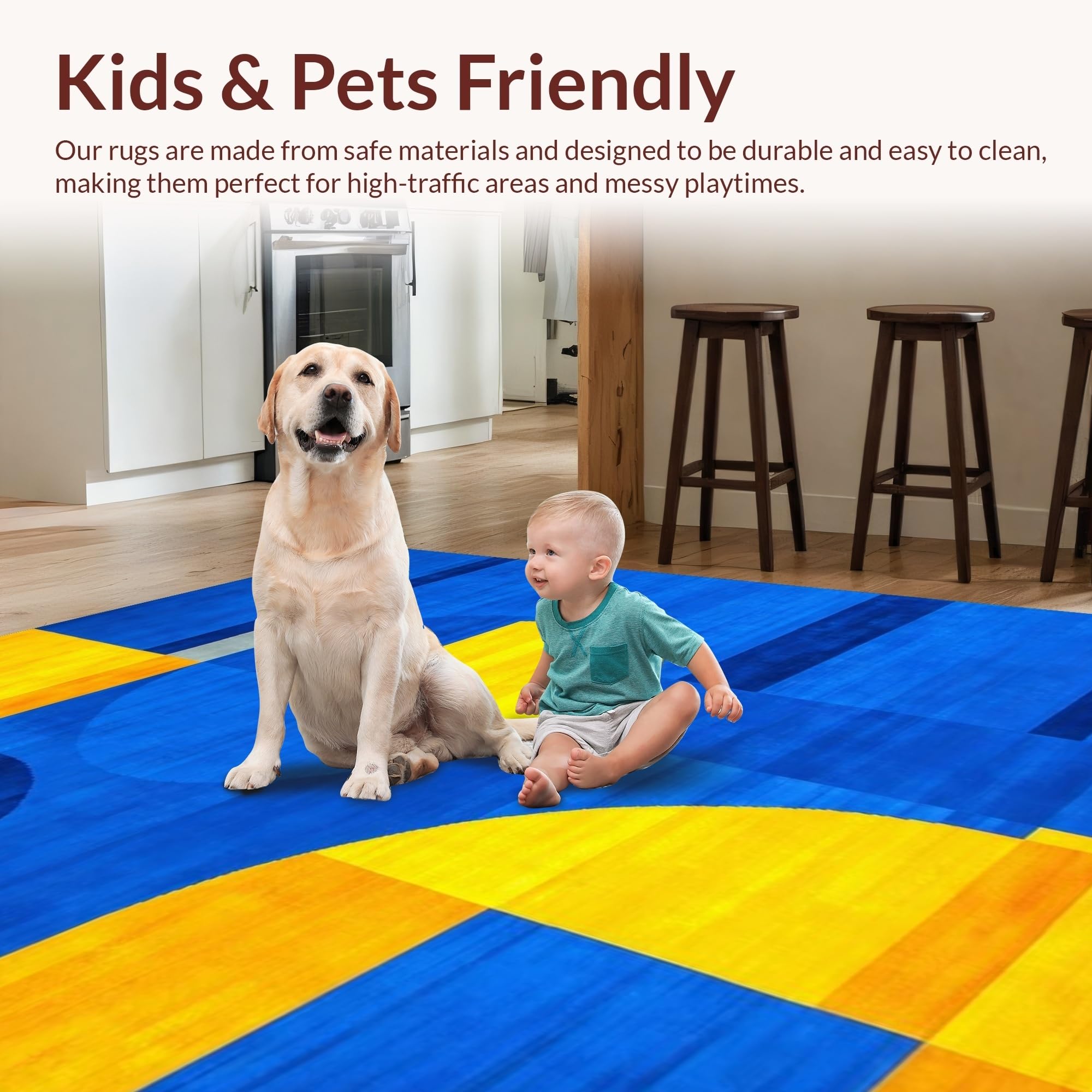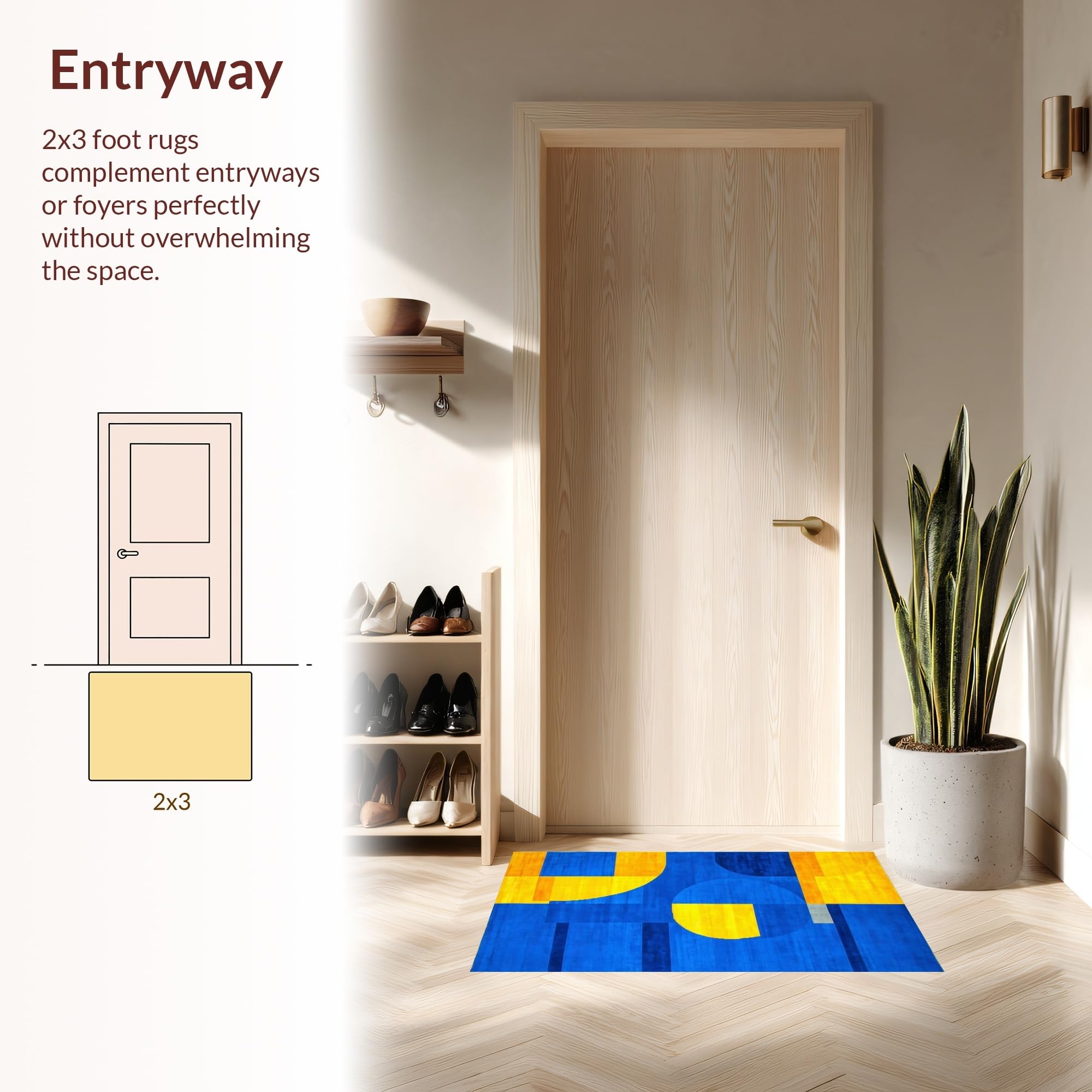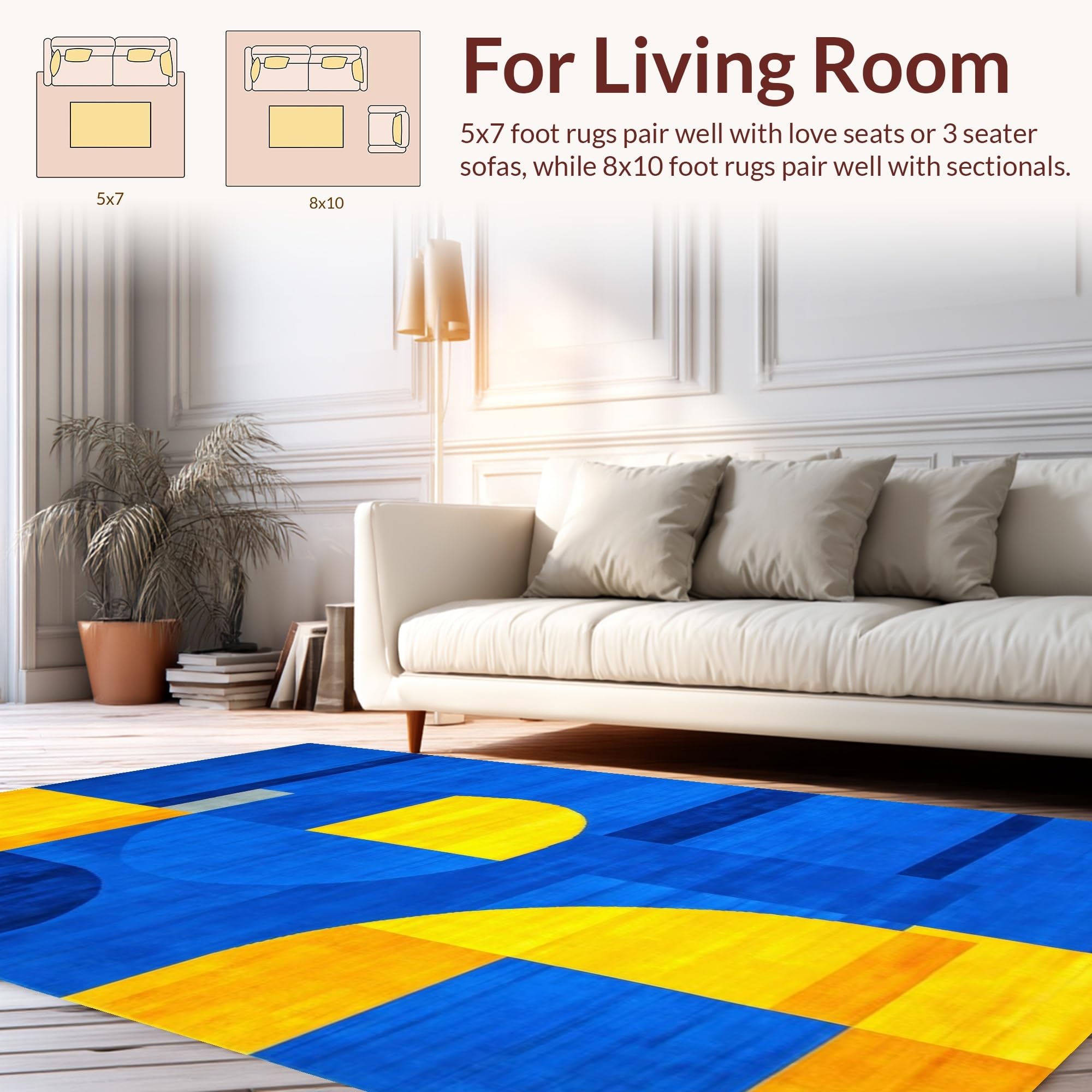 Ultra Soft Area Rug, Non Slip, Stain Resistant, Washable Area Rugs for Living Room, Bedroom, Chic Geometric Patterned Elegance(Blue) Overview: