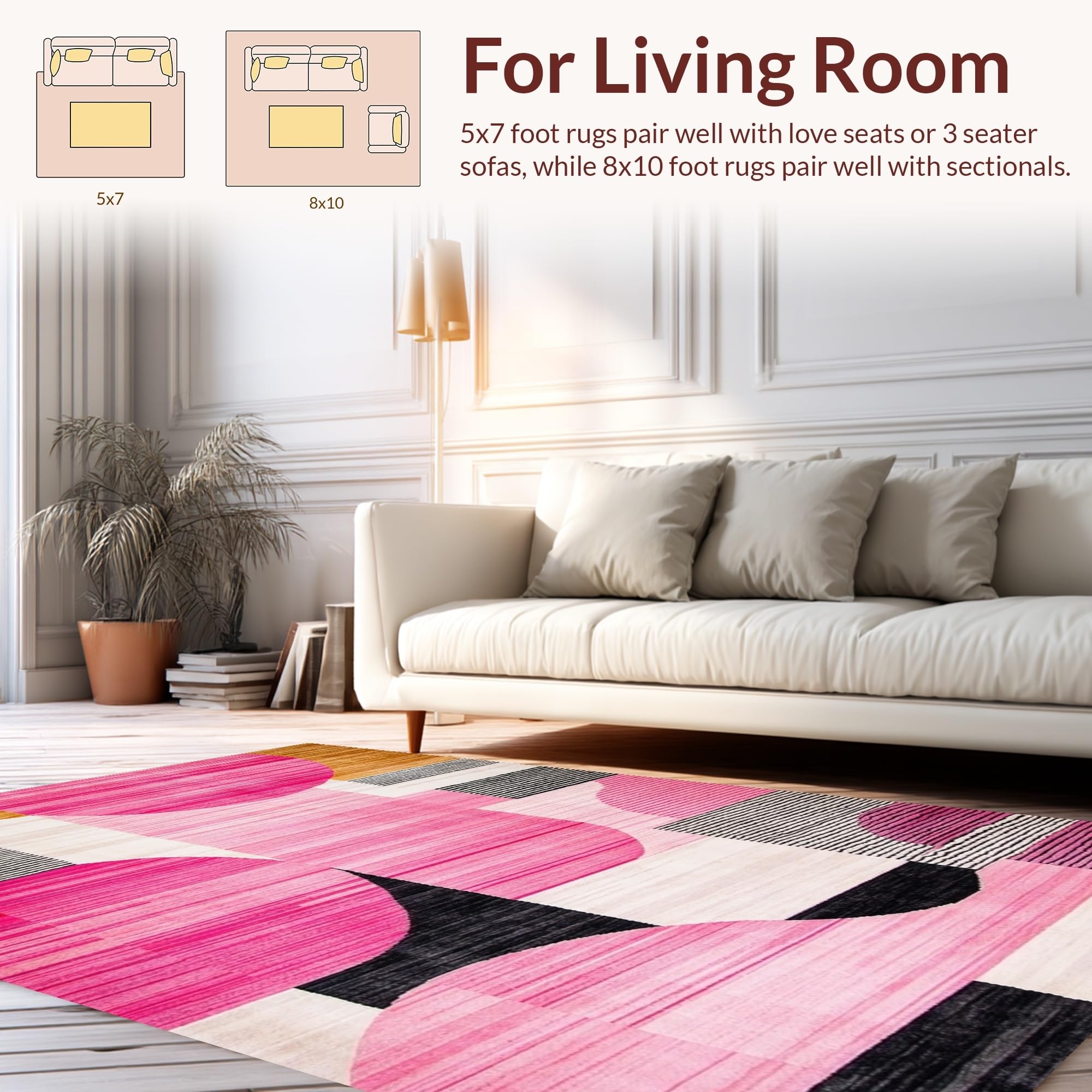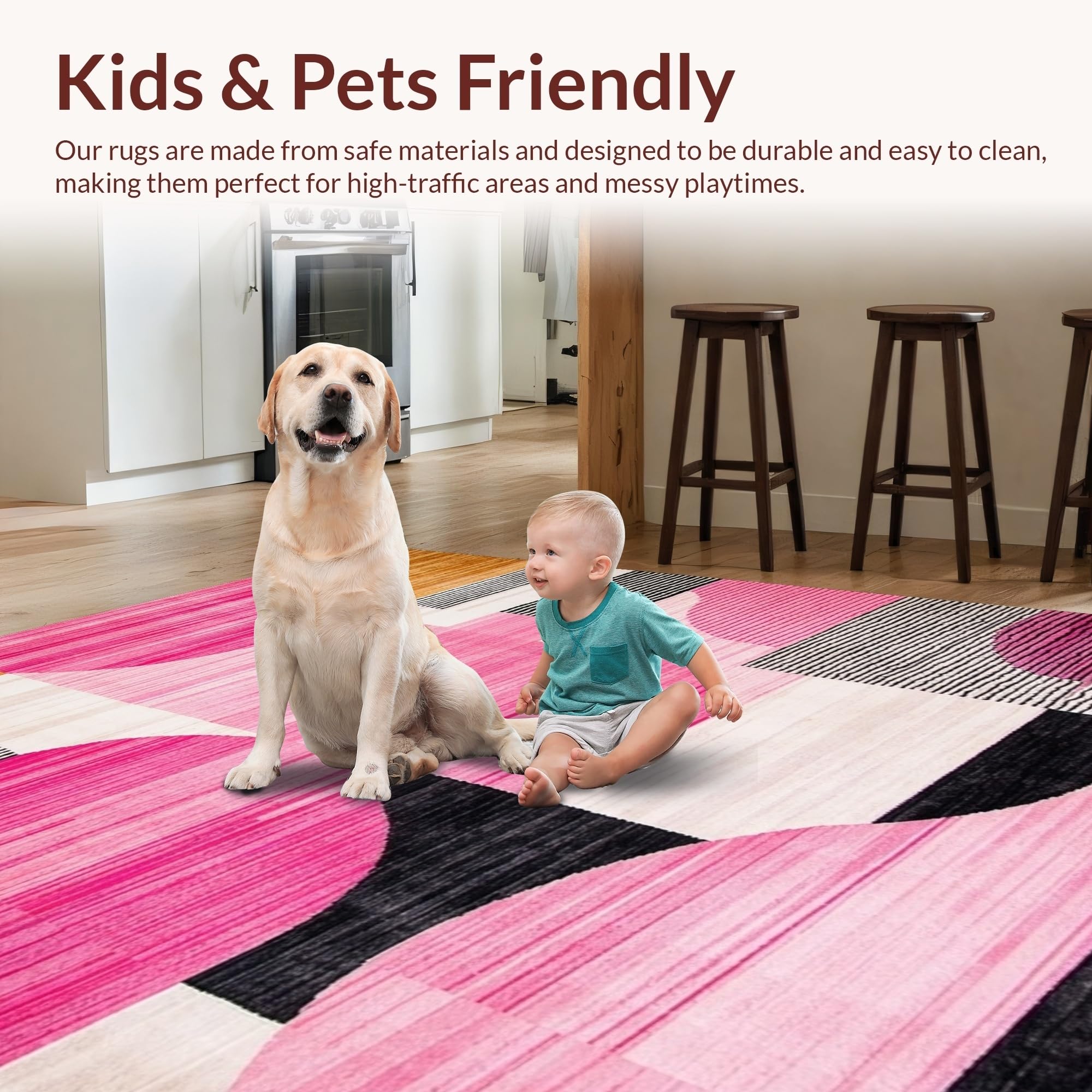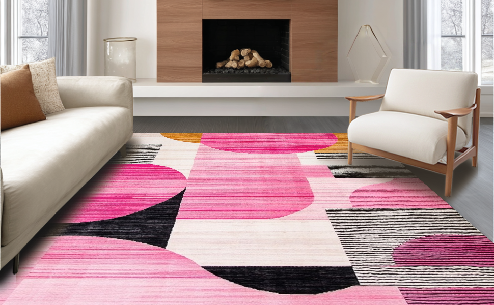 Ultra Soft Area Rug, Non Slip, Stain Resistant, Washable Area Rugs for Living Room, Bedroom, Chic Geometric Pink Aesthetic(Pink) Overview: