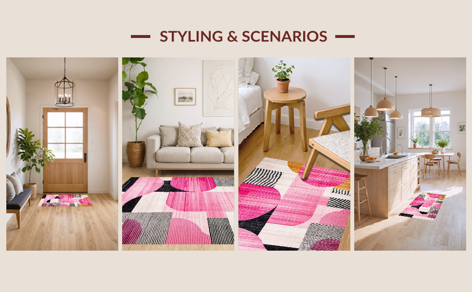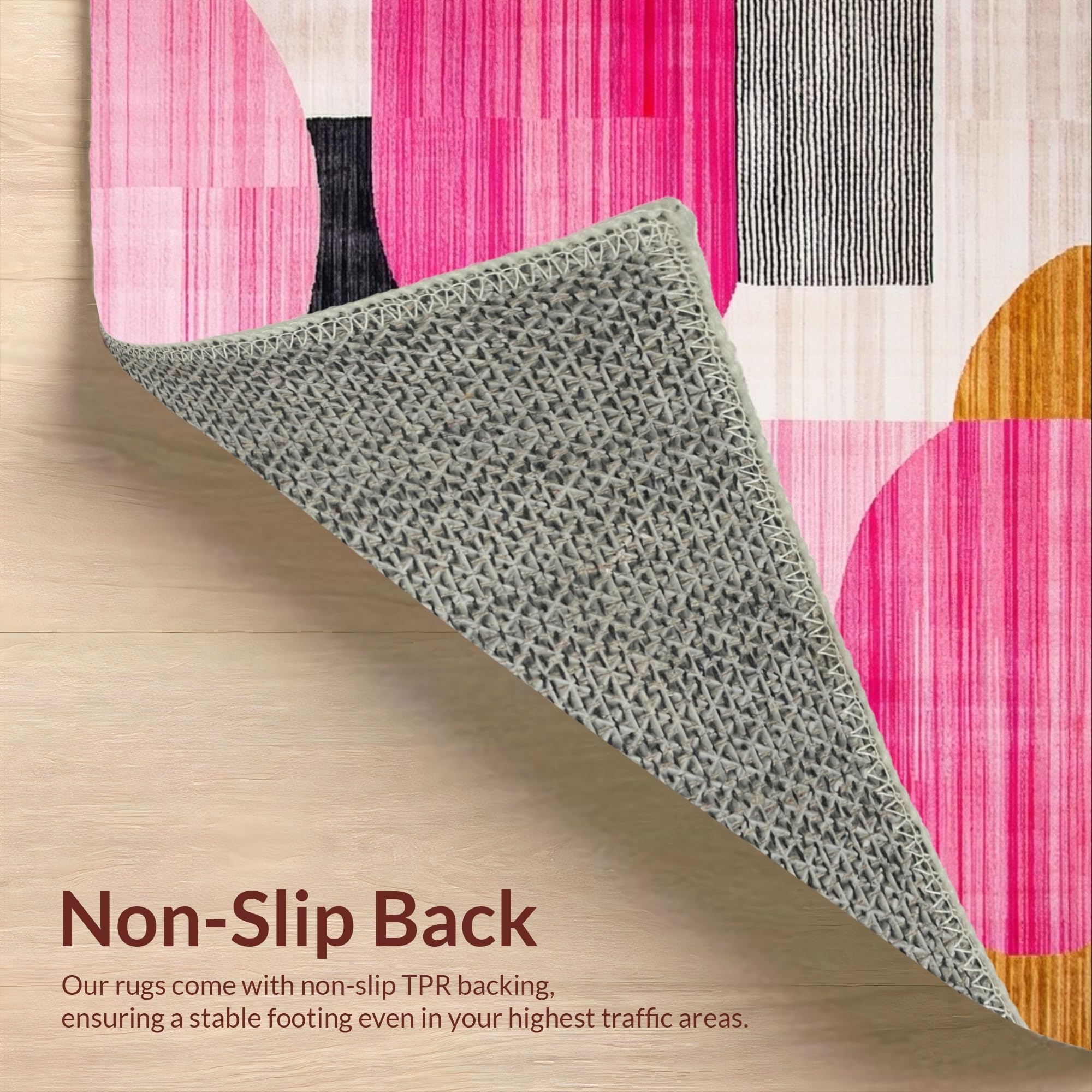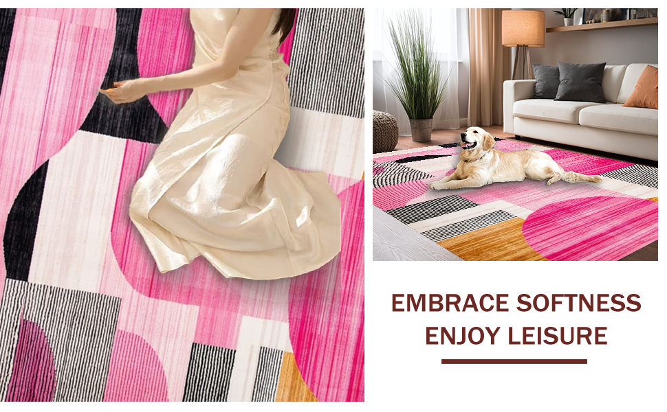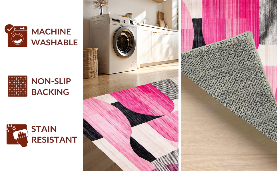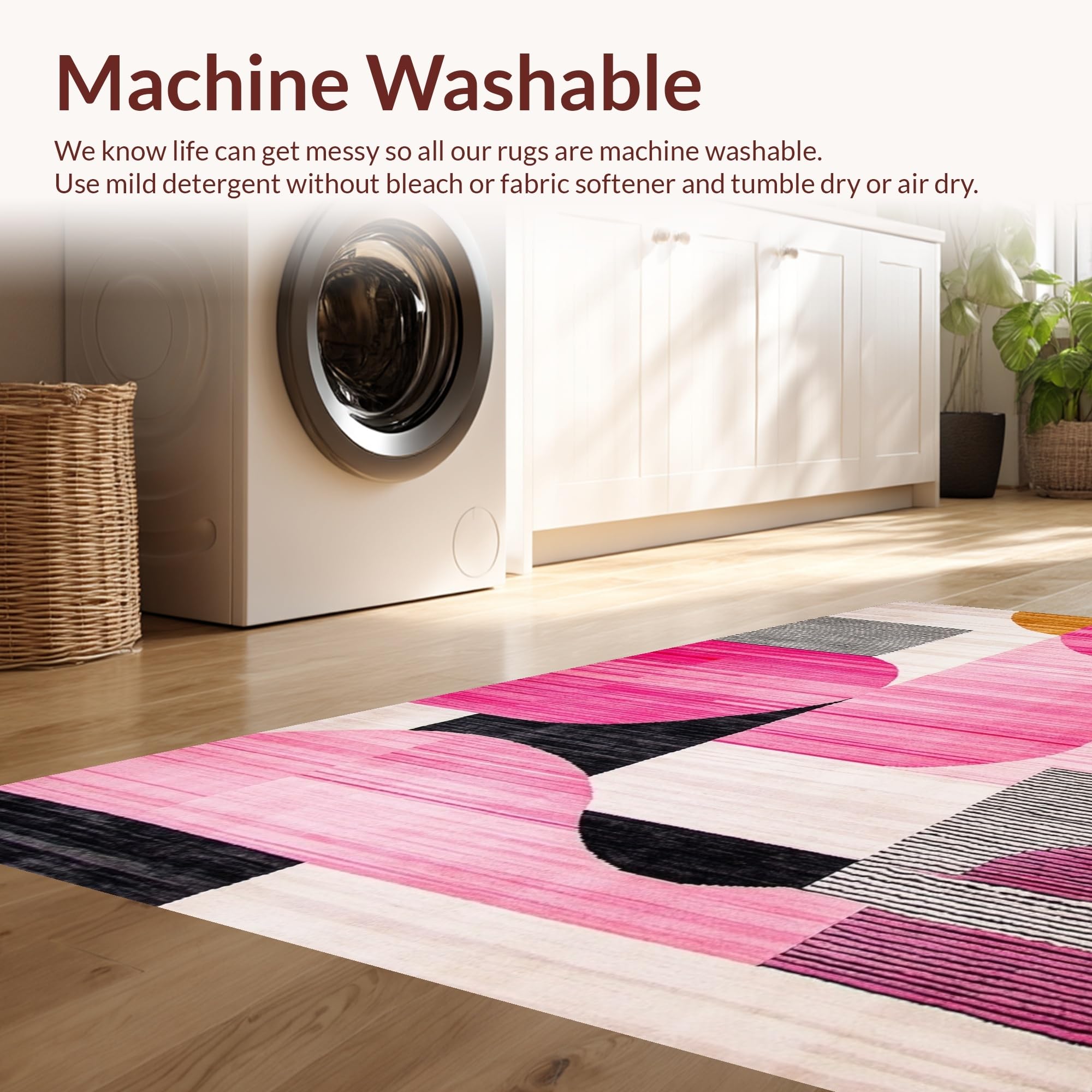 Ultra Soft Area Rug, Non Slip, Stain Resistant, Washable Area Rugs for Living Room, Bedroom, Chic Geometric Pink Aesthetic(Pink) Overview: