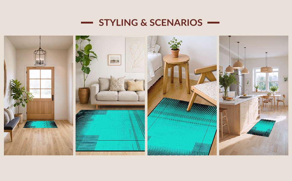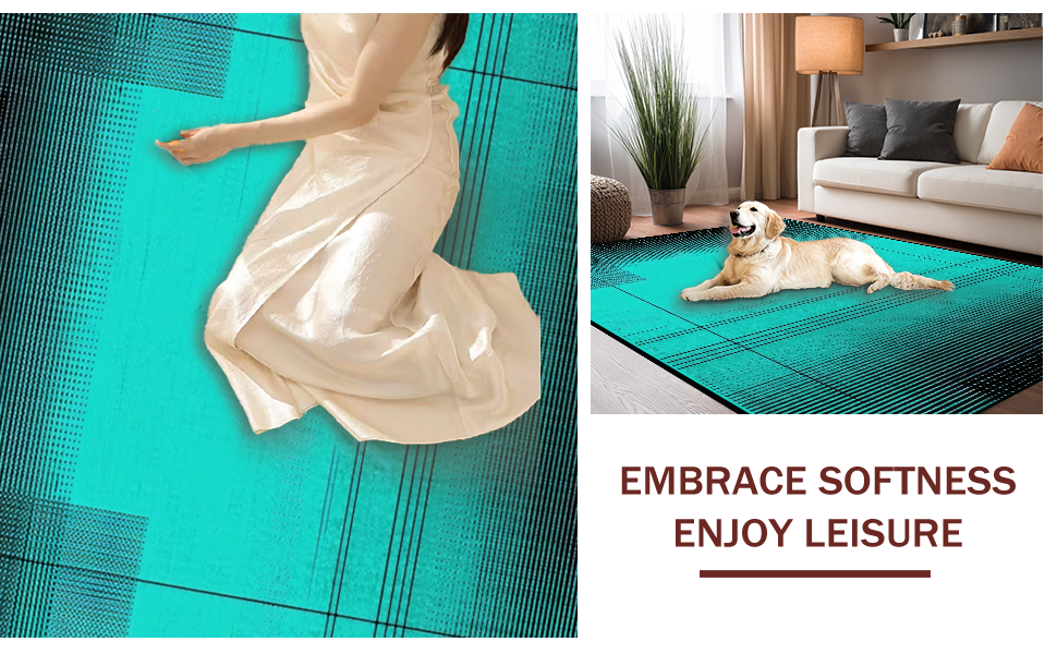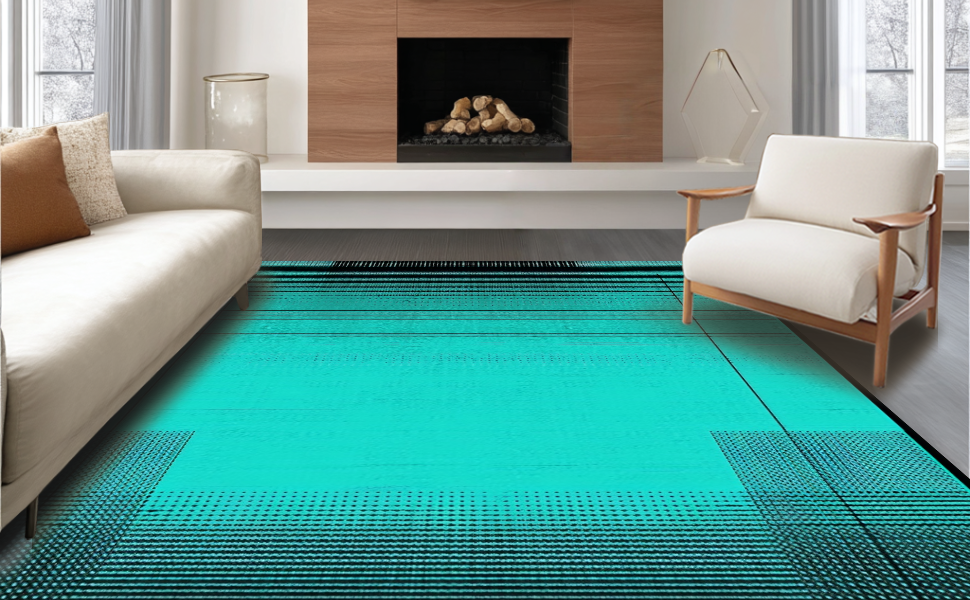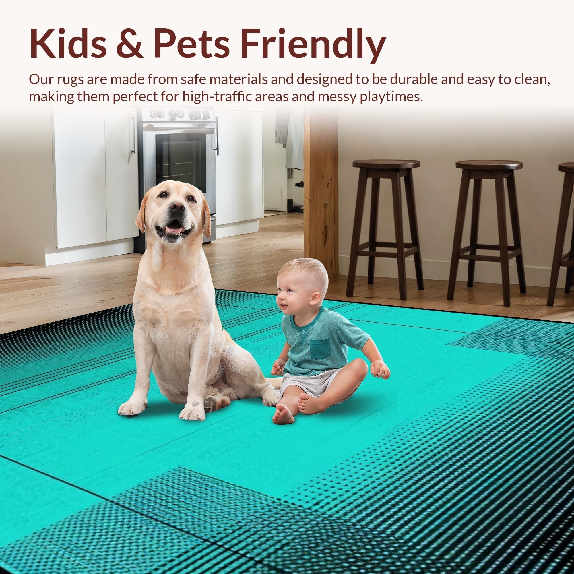 Ultra Soft Area Rug, Non Slip, Stain Resistant, Washable Area Rugs for Living Room, Bedroom, Chic Geometric Teal and Black Blend(Blue) Overview: