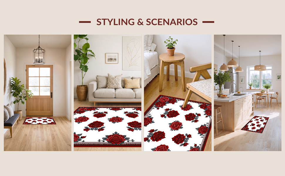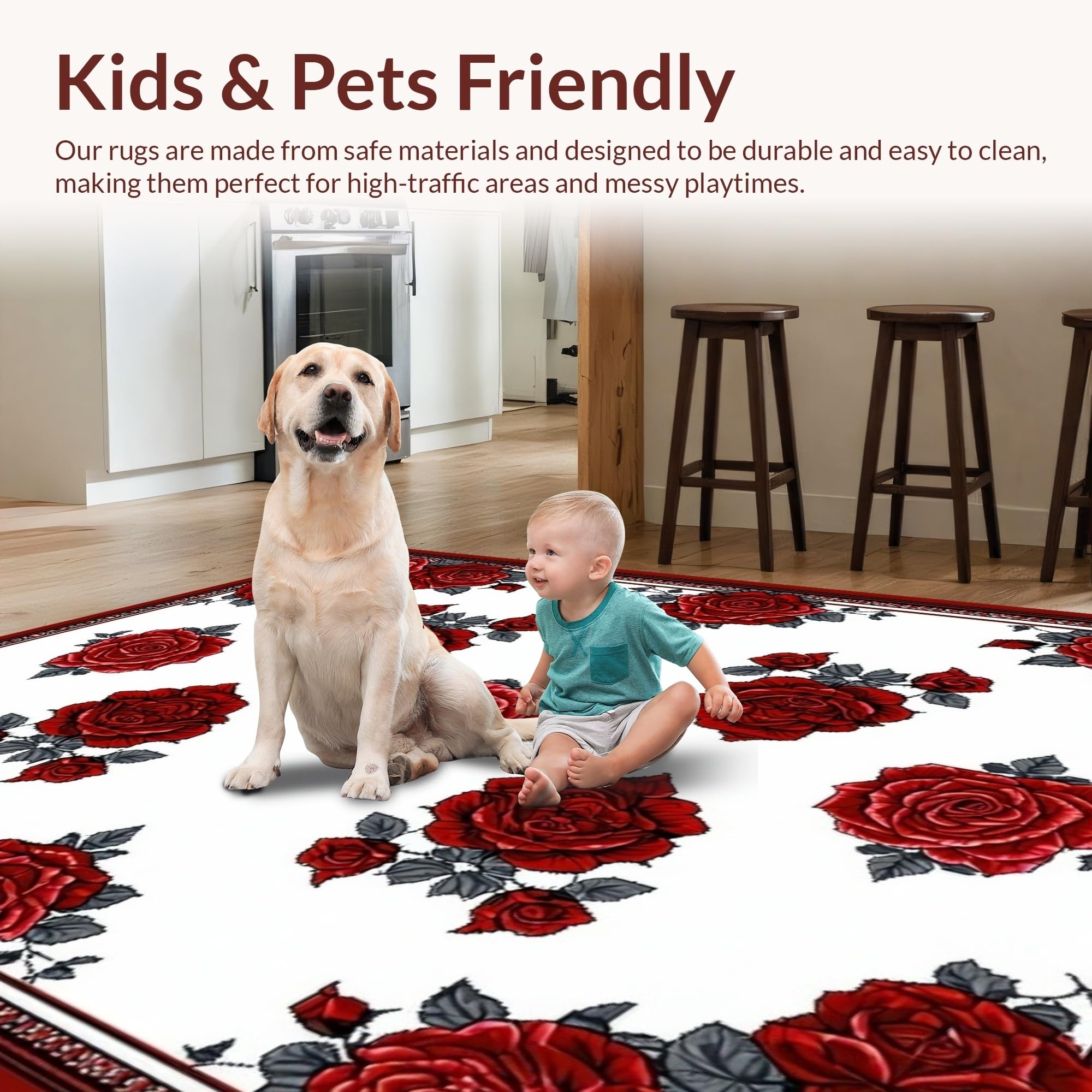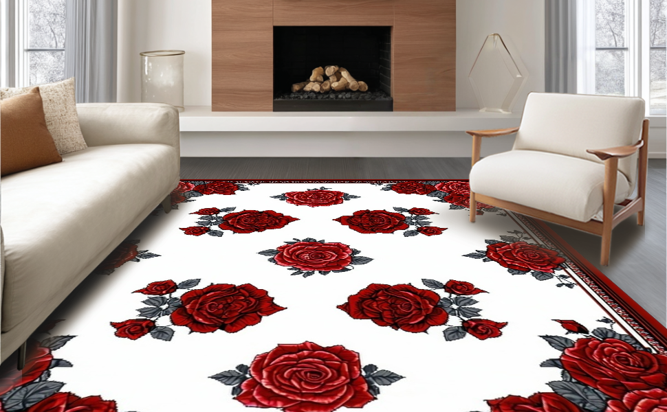Ultra Soft Area Rug, Non Slip, Stain Resistant, Washable Area Rugs for Living Room, Bedroom, Chic Girly Circular Aesthetic(Red) Overview: