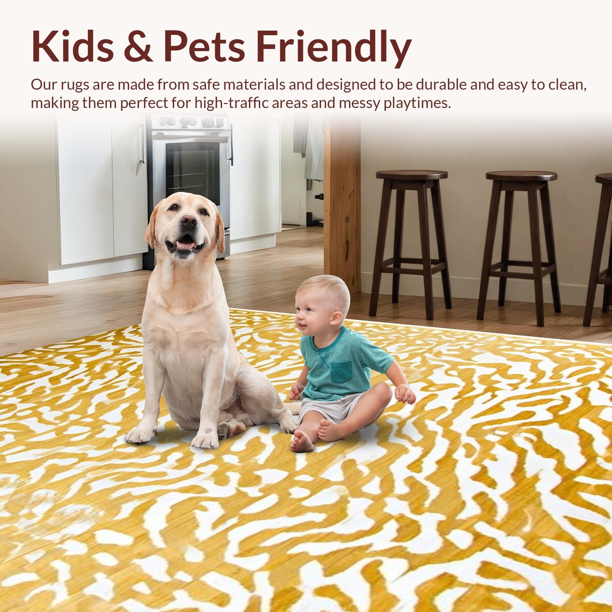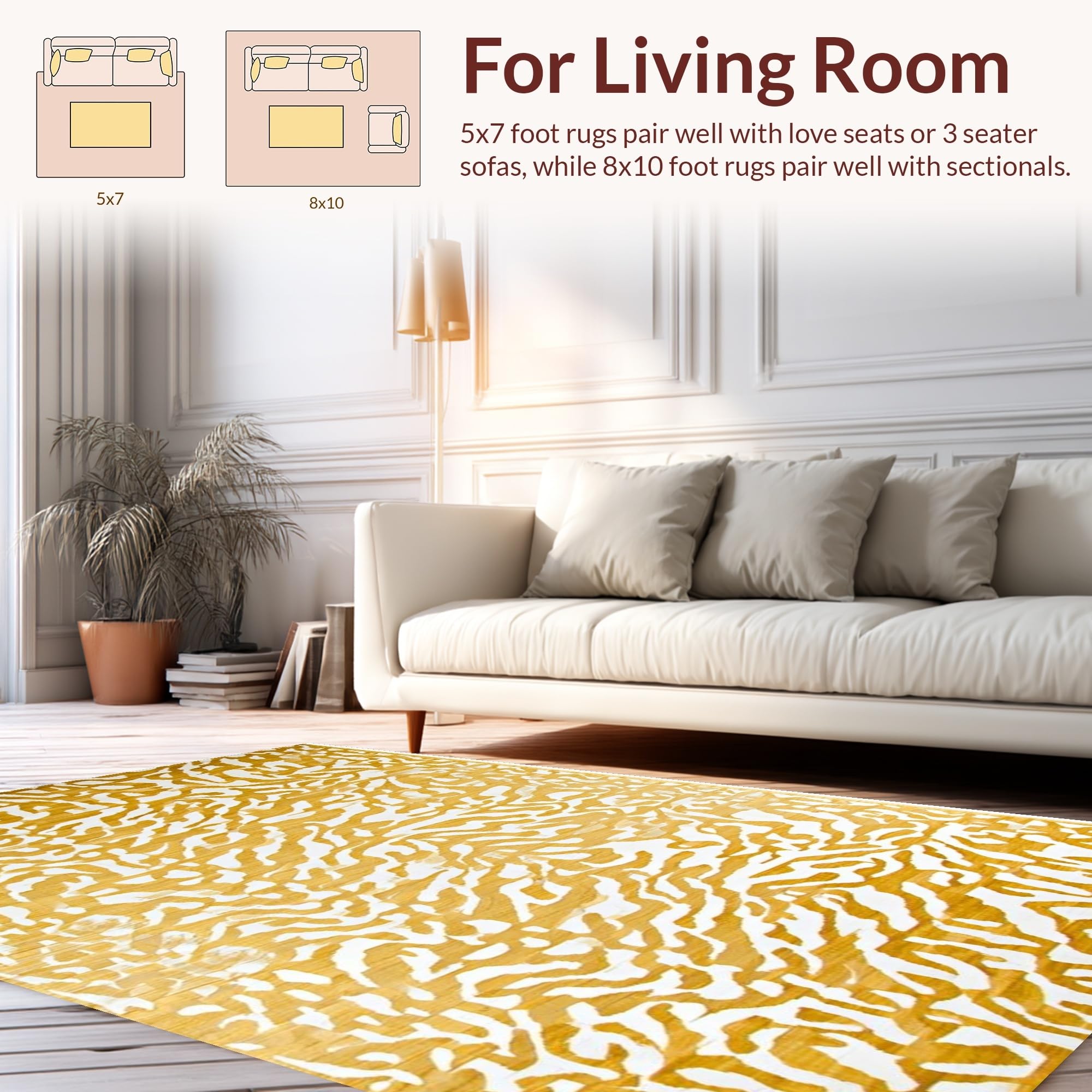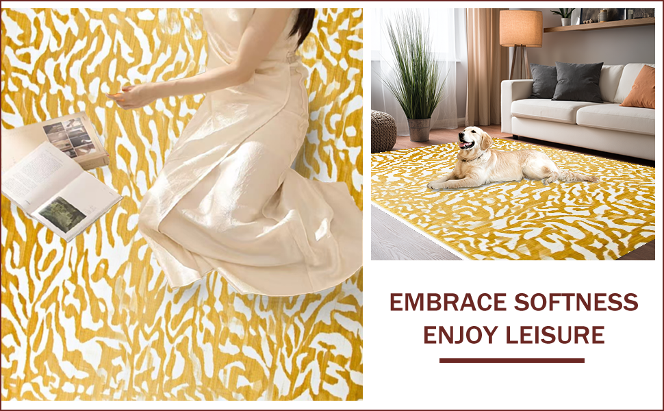 Ultra Soft Area Rug, Non Slip, Stain Resistant, Washable Area Rugs for Living Room, Bedroom, Chic Gold Animal Motif(Gold) Overview: