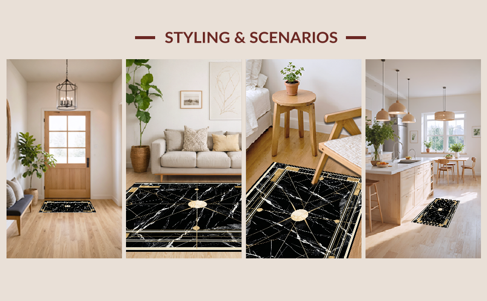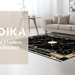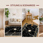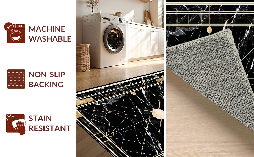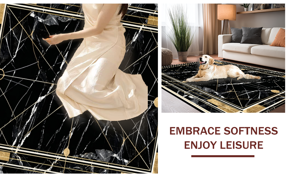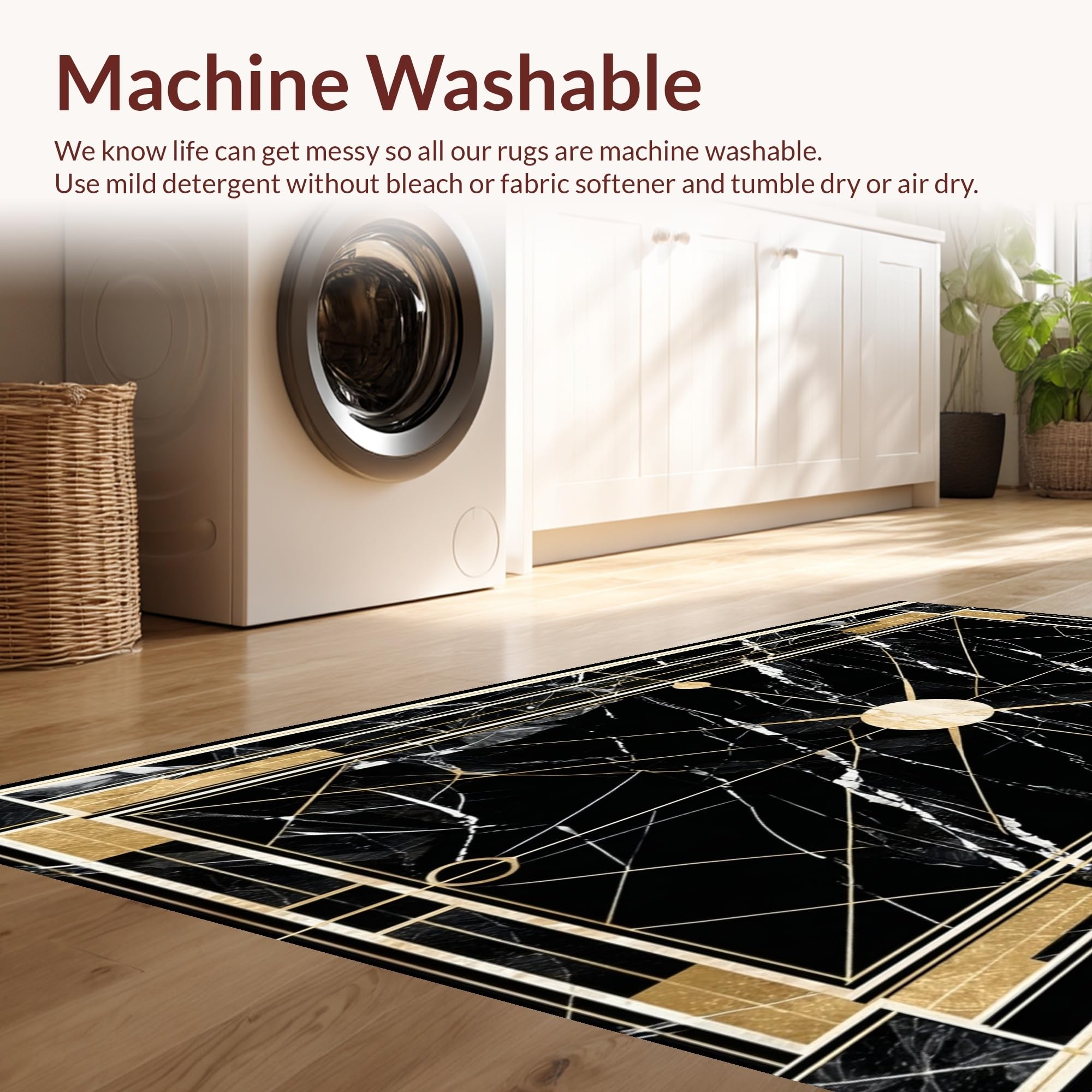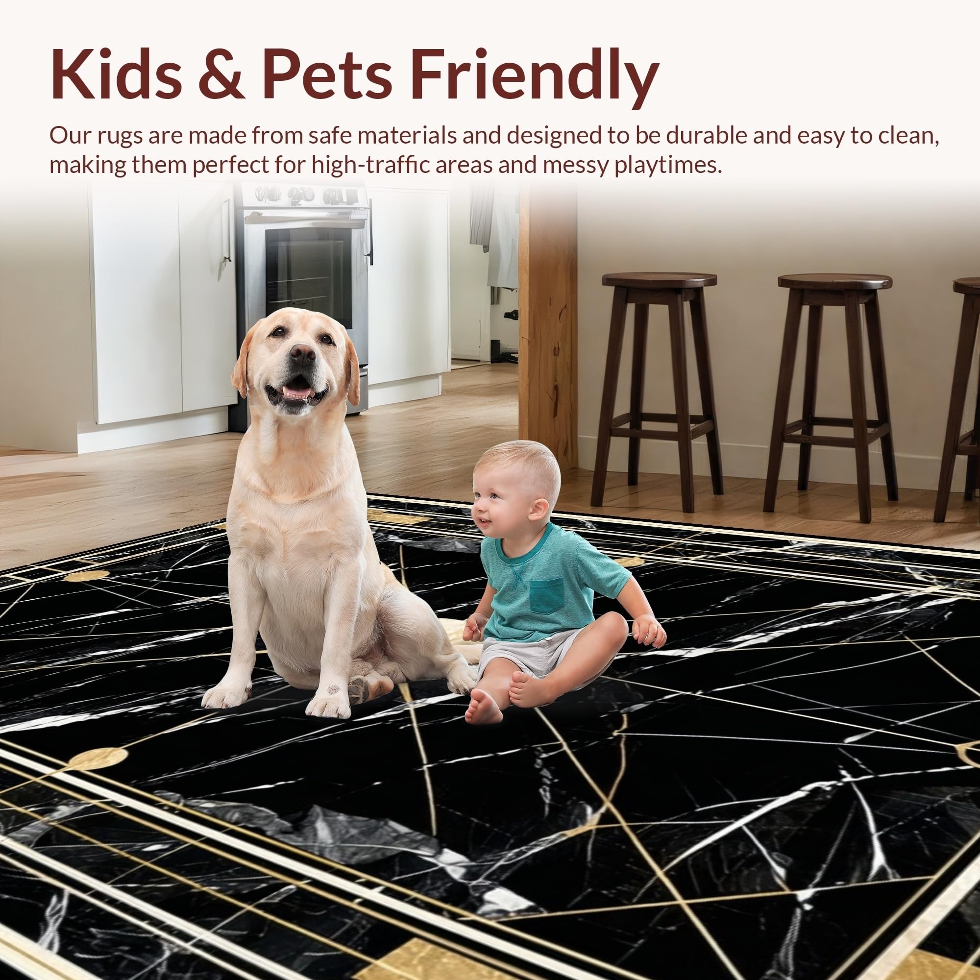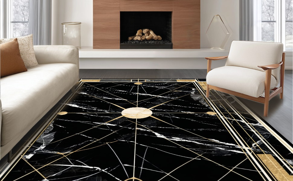 Ultra Soft Area Rug, Non Slip, Stain Resistant, Washable Area Rugs for Living Room, Bedroom, Chic Gold Geometric Motif(Black) Overview: