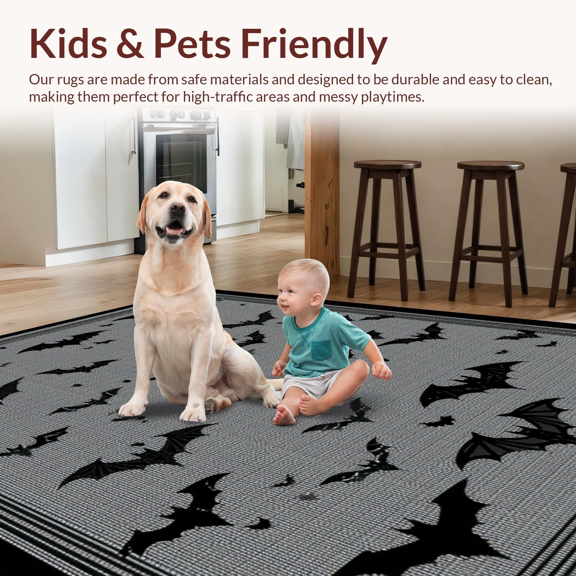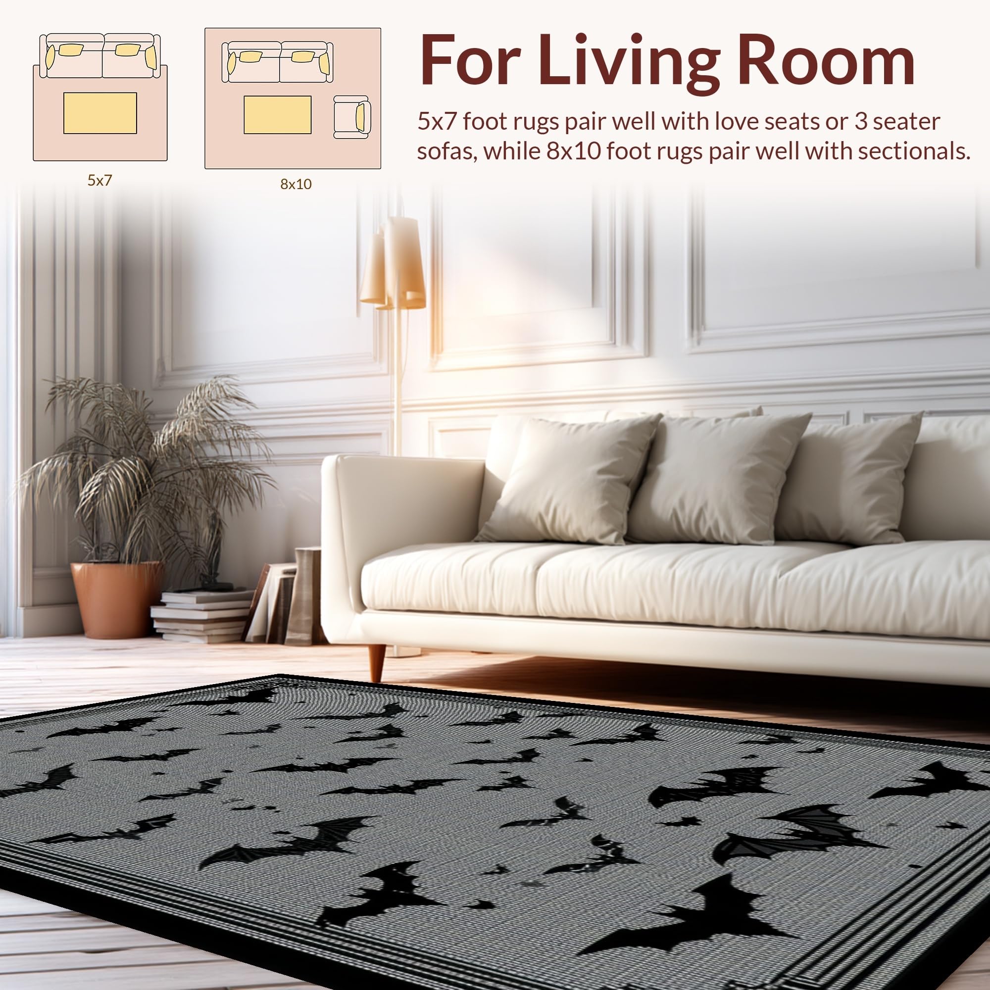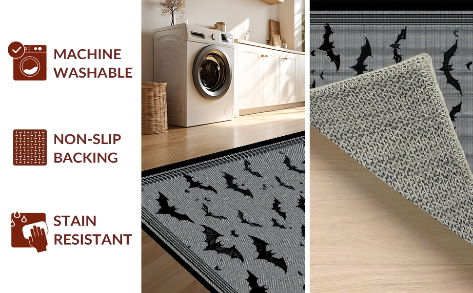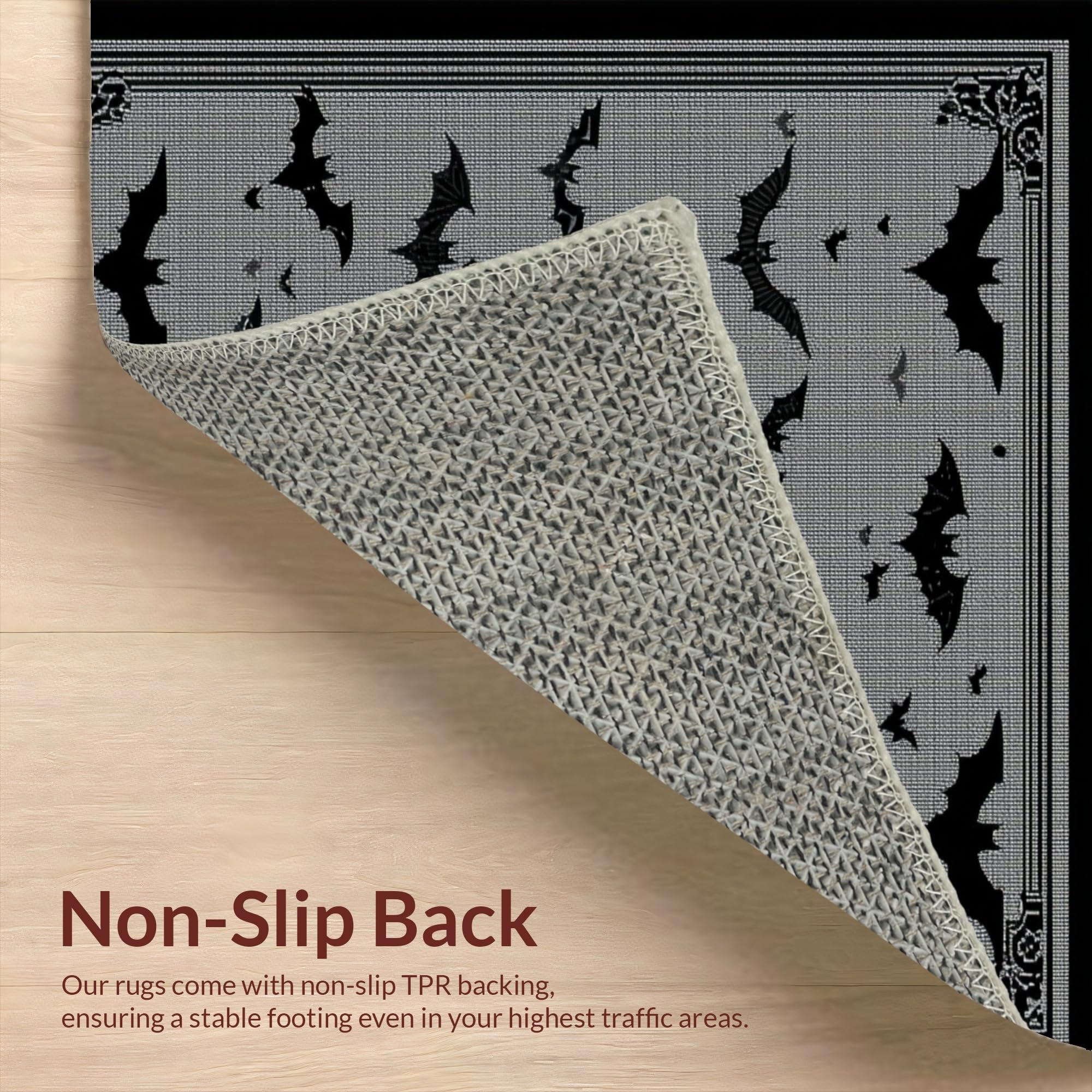 Ultra Soft Area Rug, Non Slip, Stain Resistant, Washable Area Rugs for Living Room, Bedroom, Chic Gothic Inspired Textile(Black) Overview: