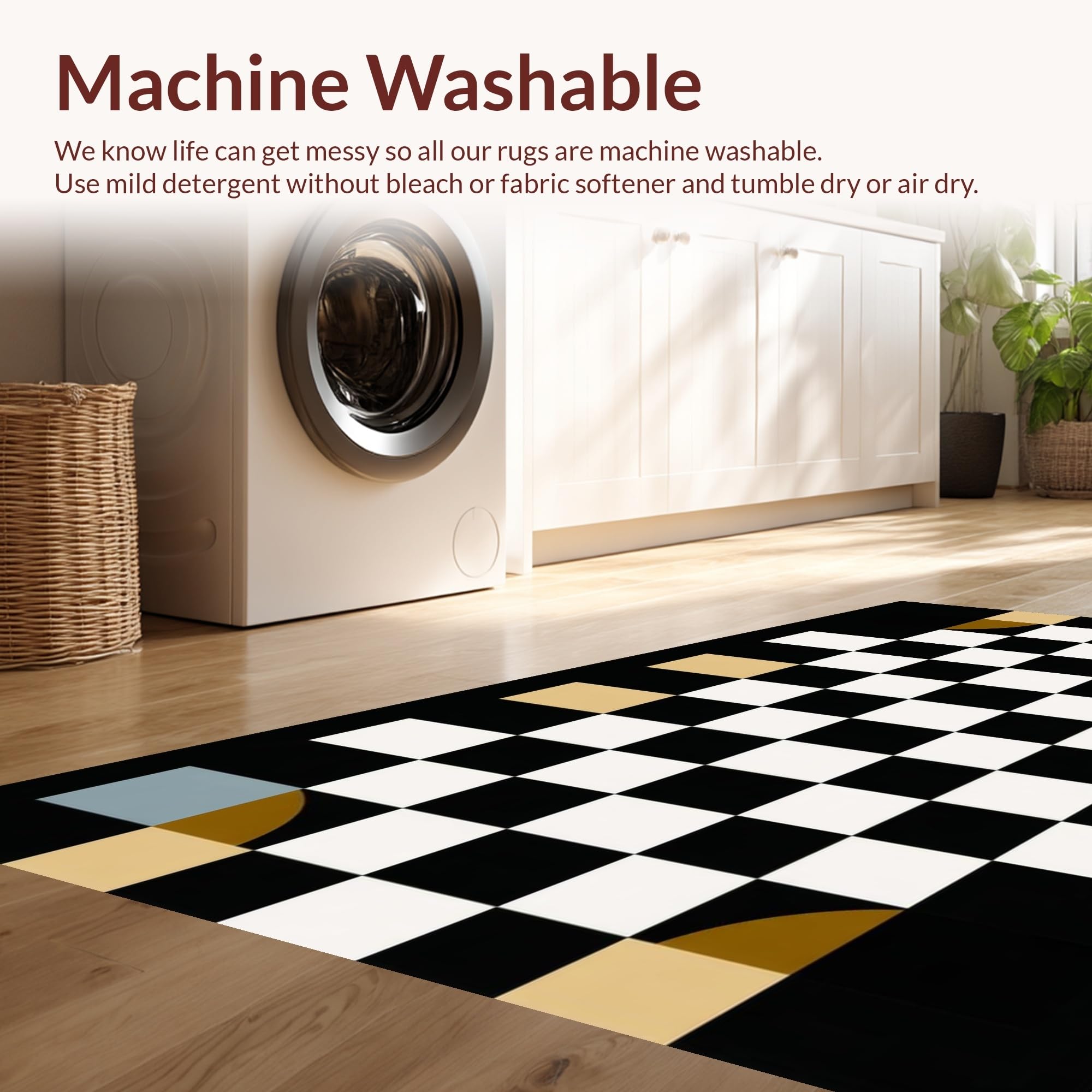 - Machine Washable: Our rugs can be easily thrown in the wash machine.