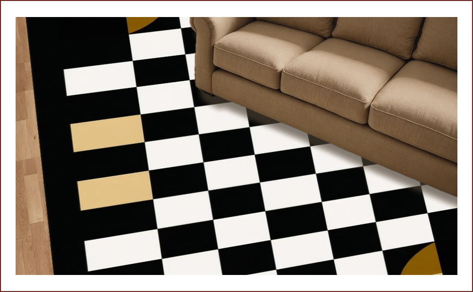 Ultra Soft Area Rug, Non Slip, Stain Resistant, Washable Area Rugs for Living Room, Bedroom, Chic Graphic Black and White Motif(Black) Overview: