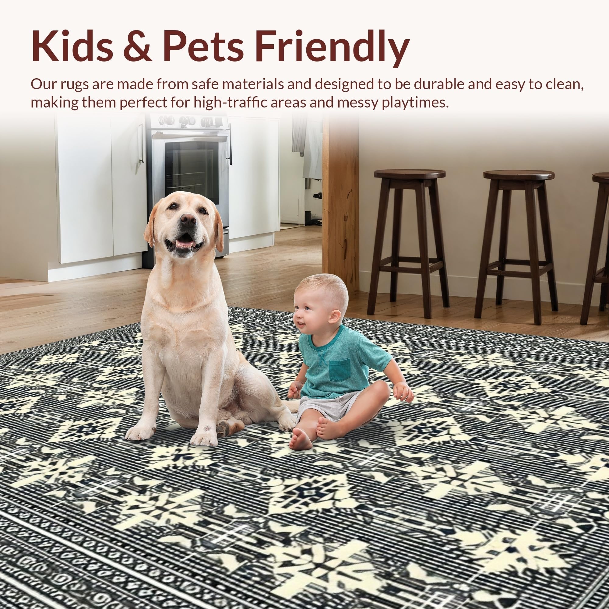 Ultra Soft Area Rug, Non Slip, Stain Resistant, Washable Area Rugs for Living Room, Bedroom, Chic Graphic Patterned Floor Piece(Gray) Overview: