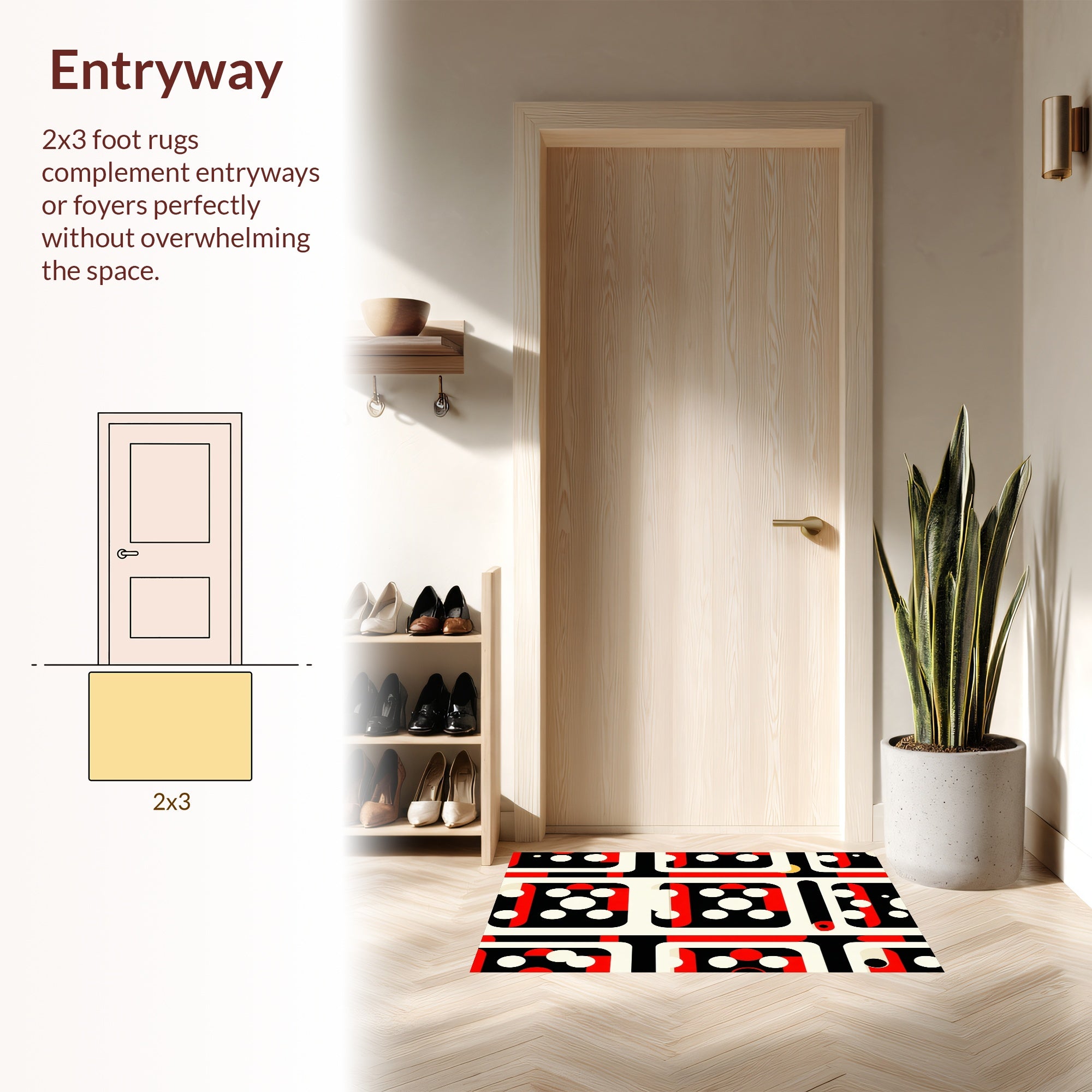 Flatwoven High Traffic Area Rug, Chic Graphic Playful Shapes, Non Slip, Stain Resistant, Washable Area Rugs for Living Room, Bedroom (Red) Overview: