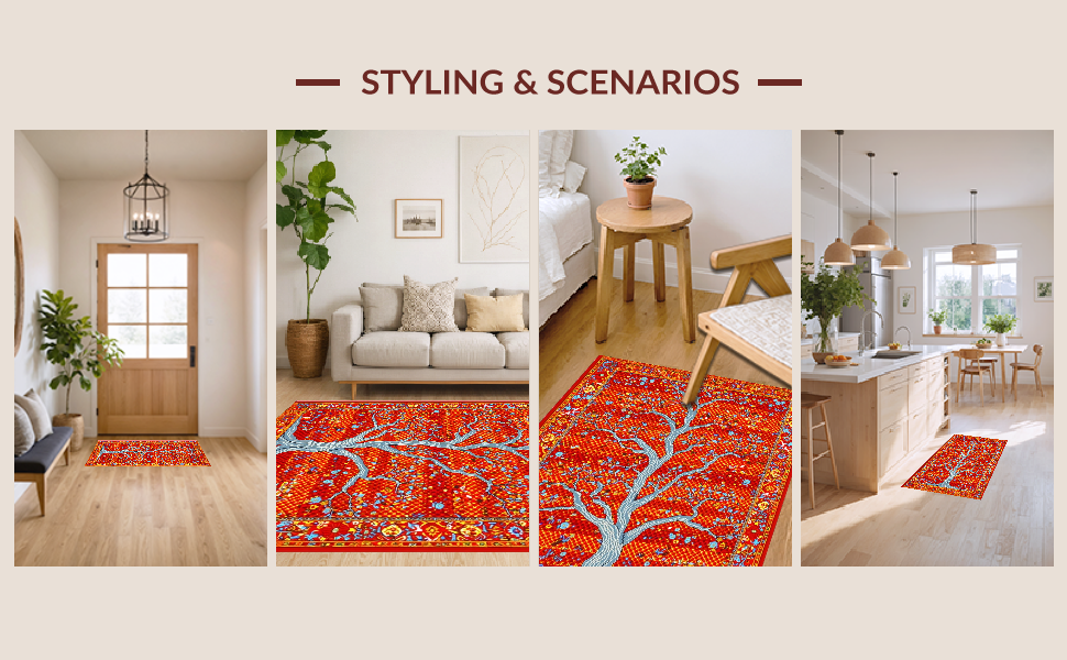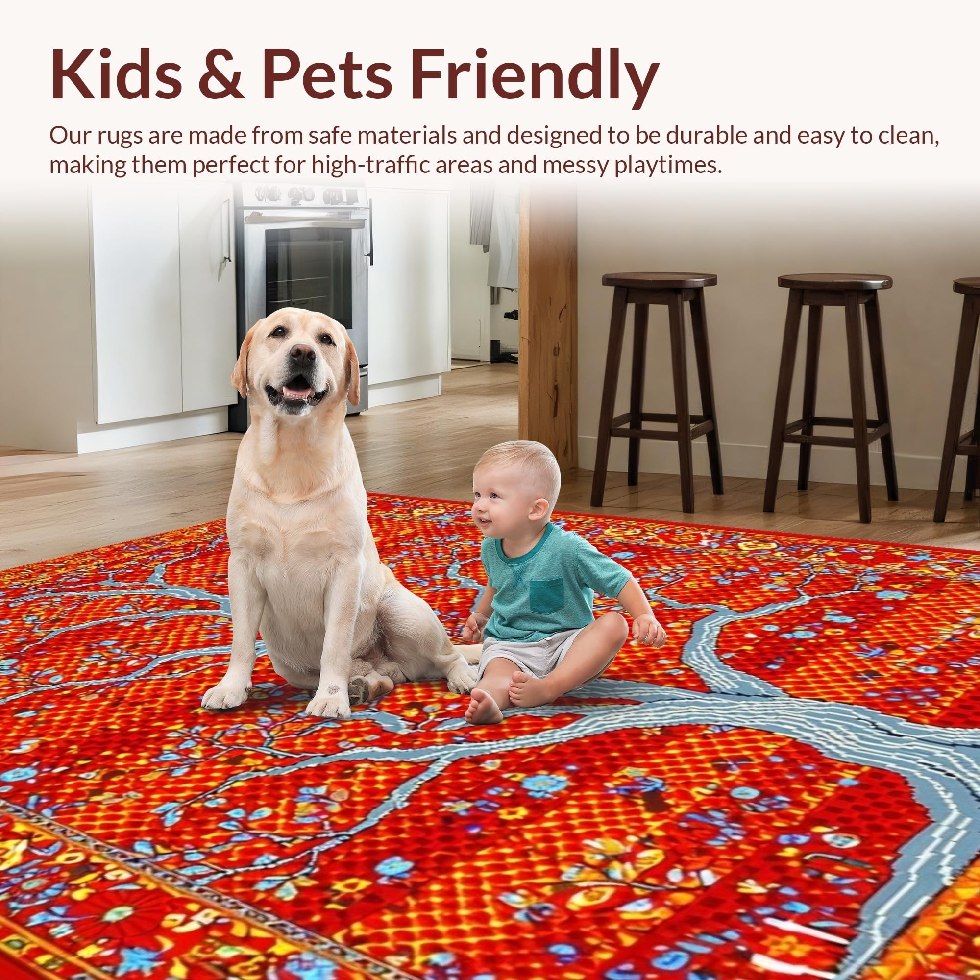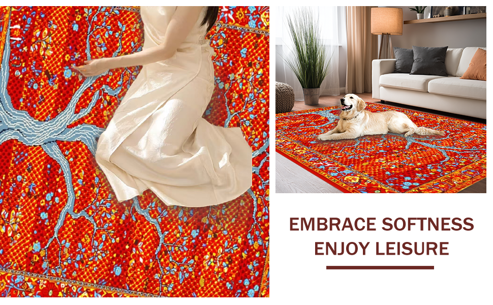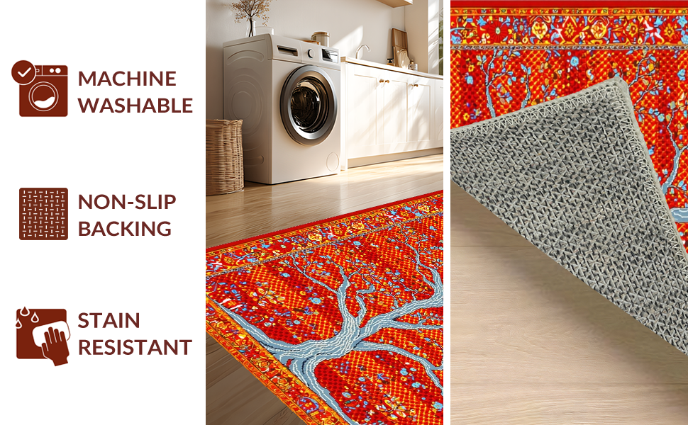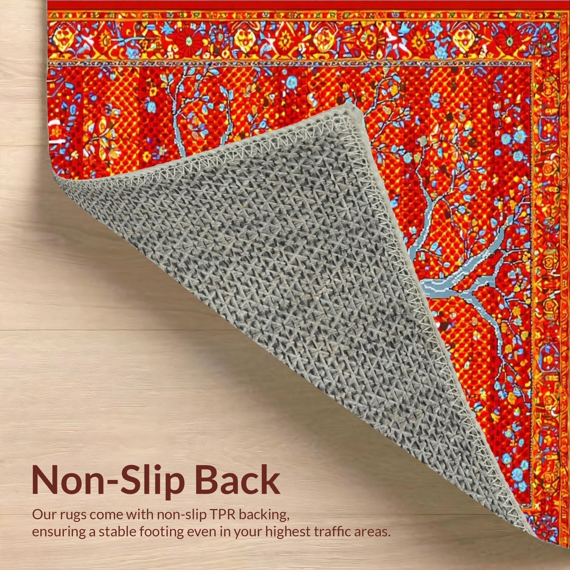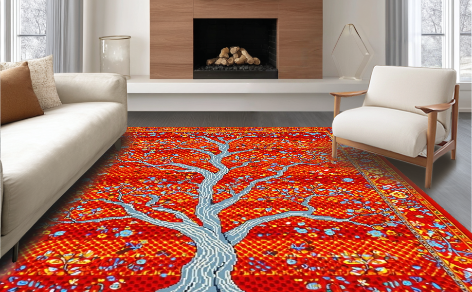 Ultra Soft Area Rug, Non Slip, Stain Resistant, Washable Area Rugs for Living Room, Bedroom, Chic Graphic Tree Illustration(Red) Overview: