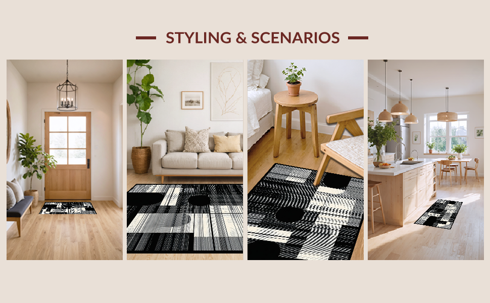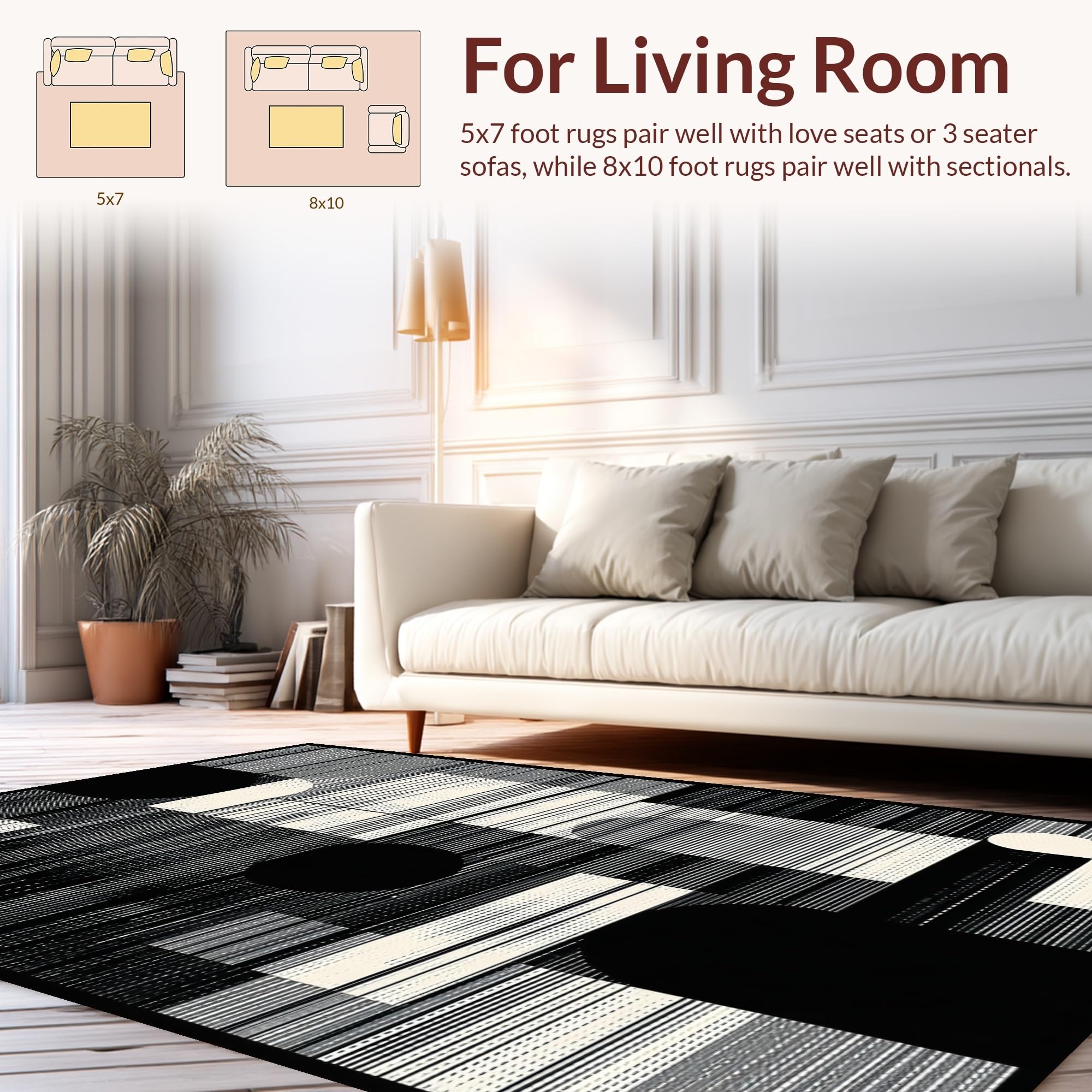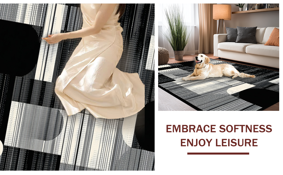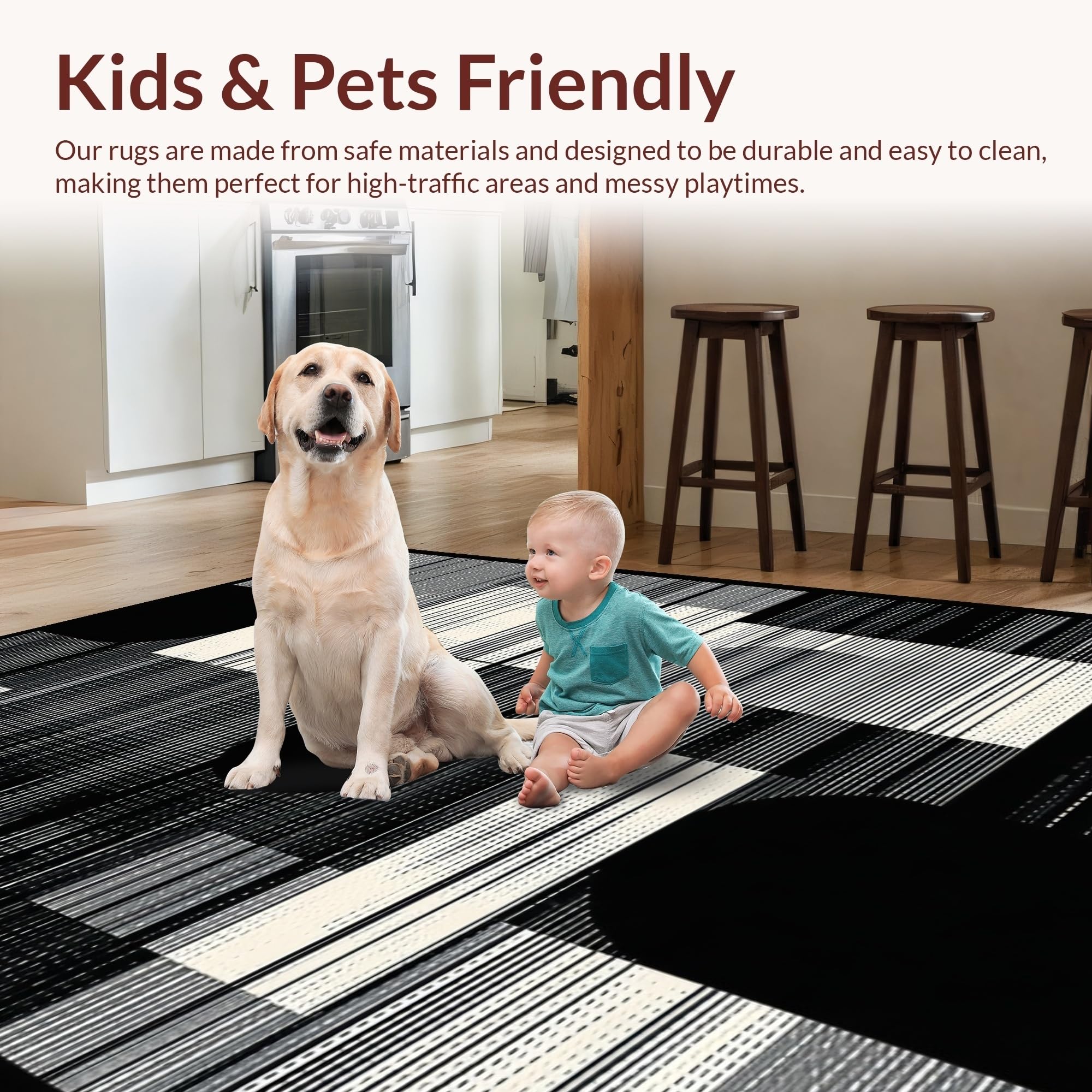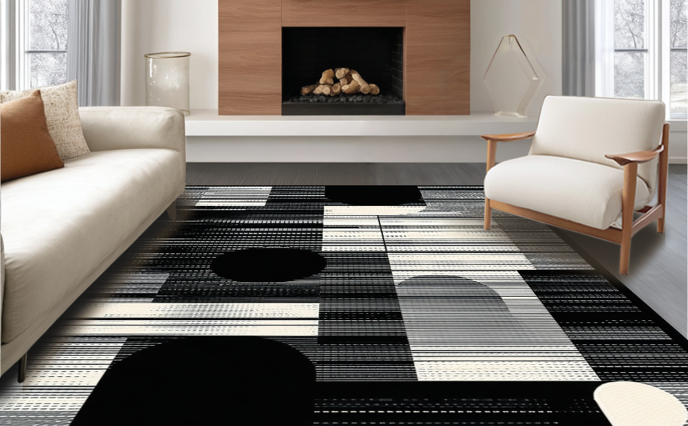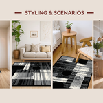 Ultra Soft Area Rug, Non Slip, Stain Resistant, Washable Area Rugs for Living Room, Bedroom, Chic Graphical Black Pattern(Gray) Overview: