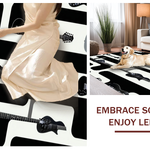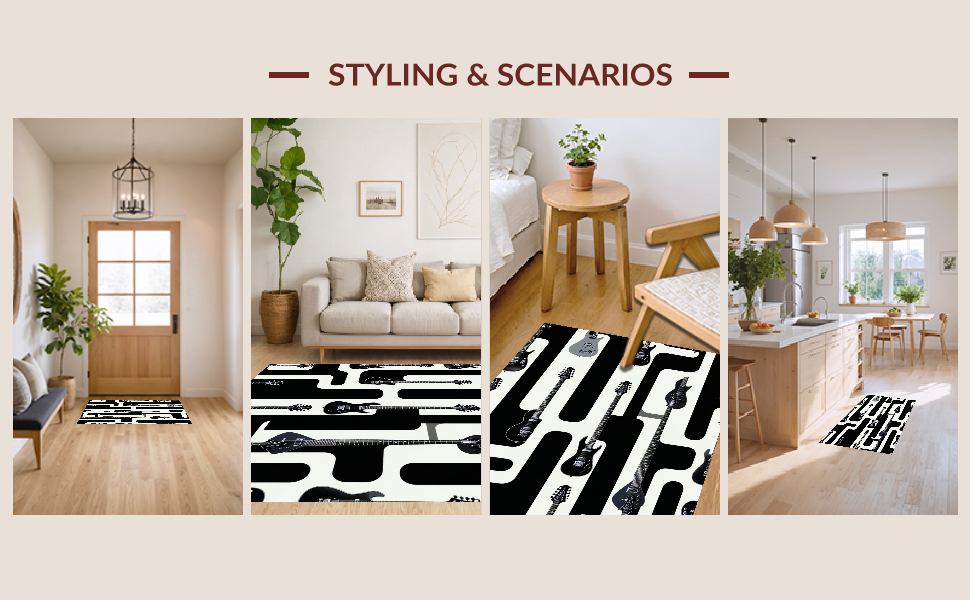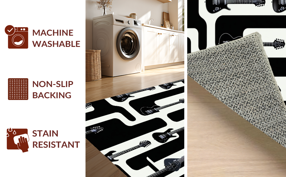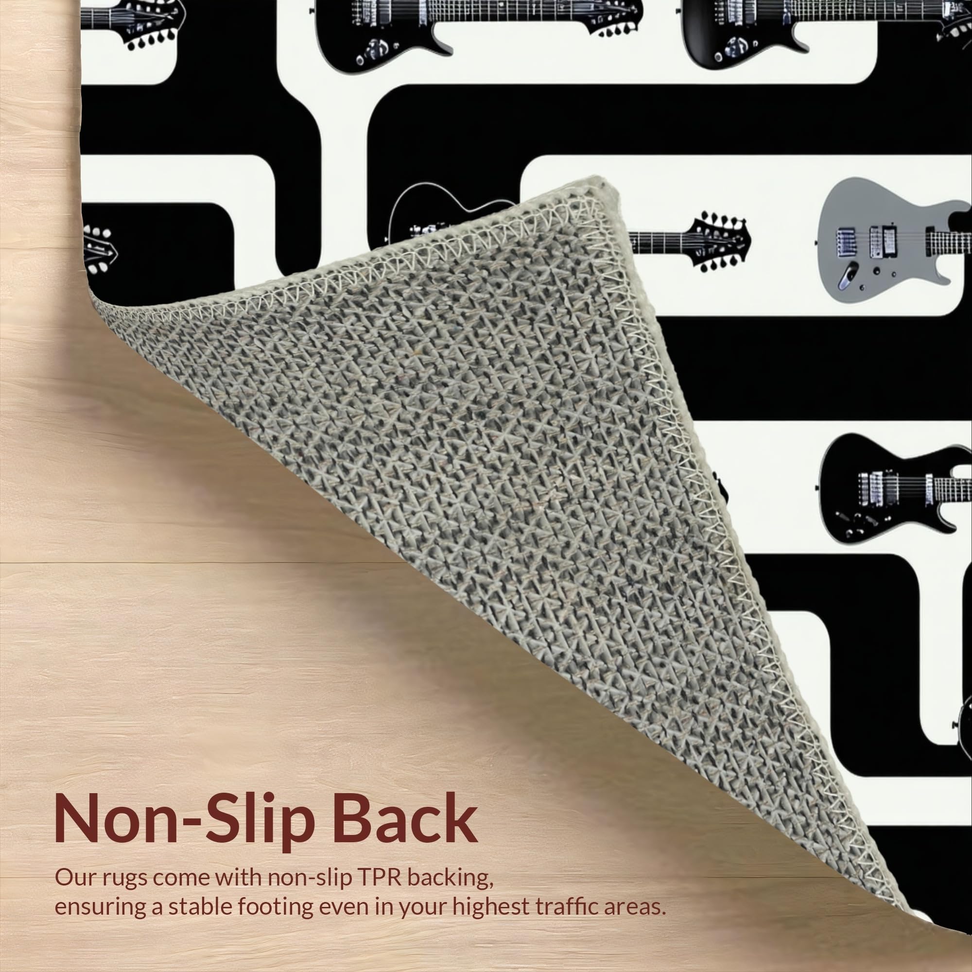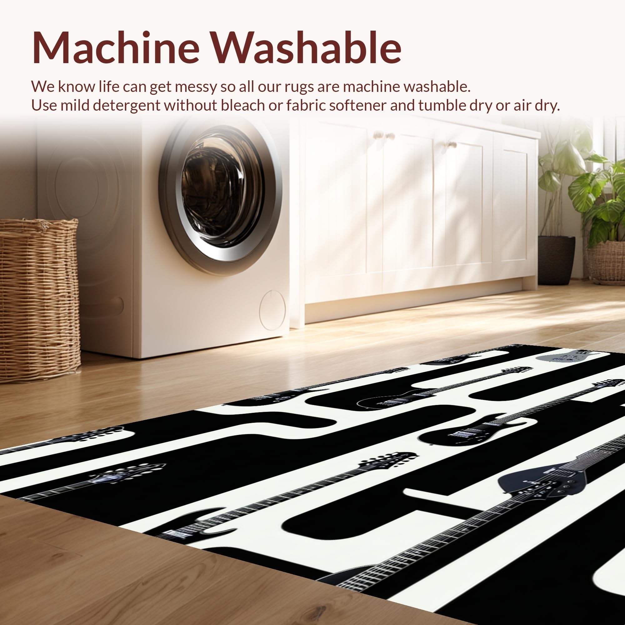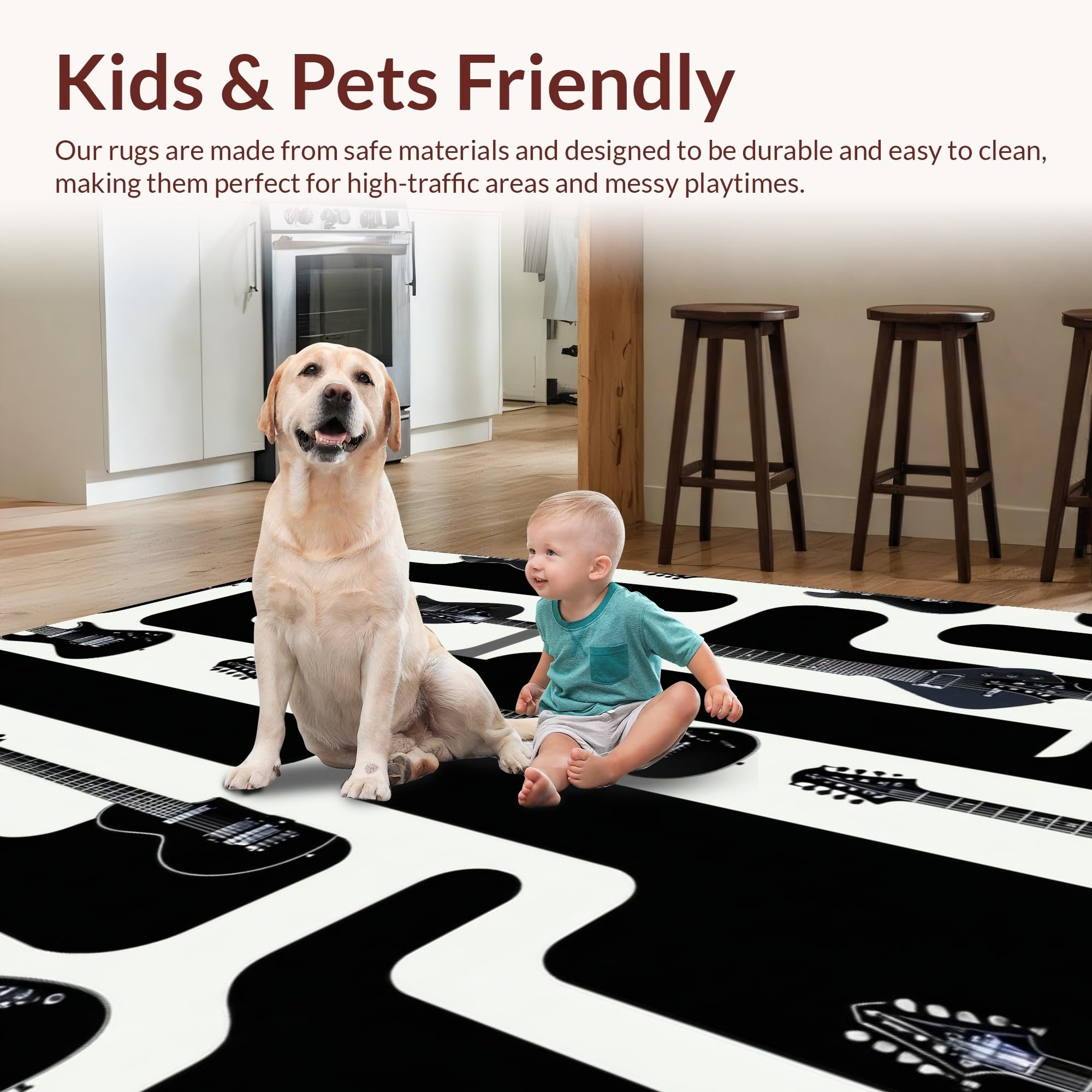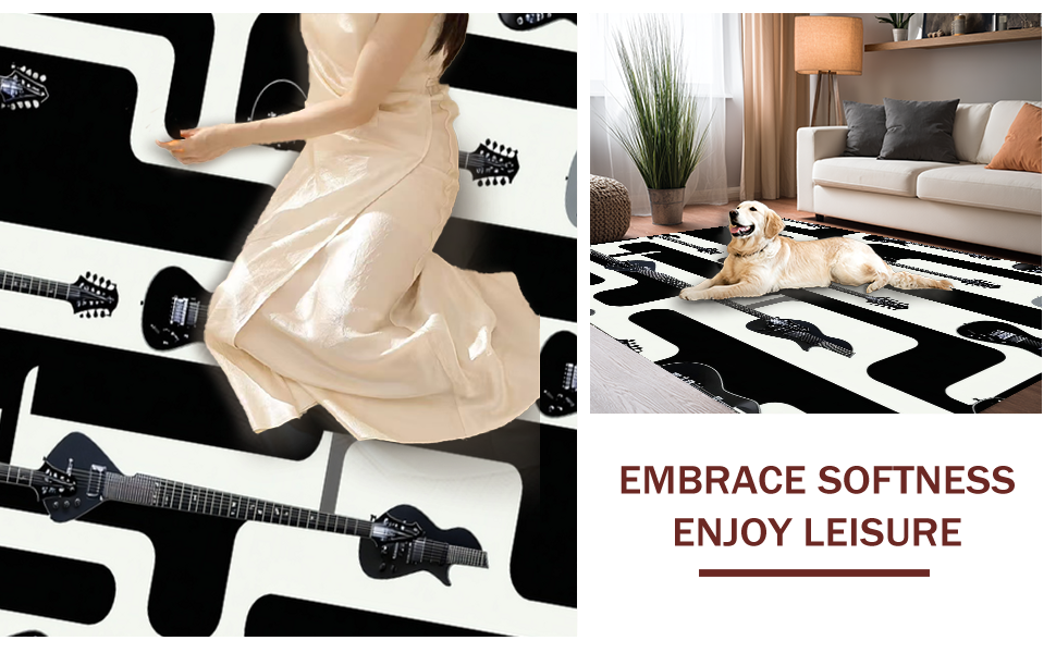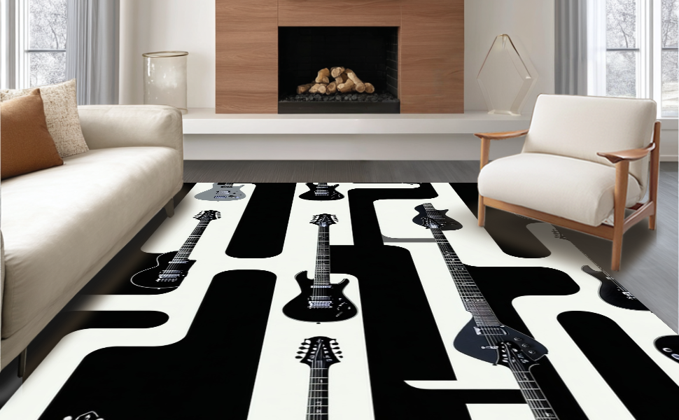 Ultra Soft Area Rug, Non Slip, Stain Resistant, Washable Area Rugs for Living Room, Bedroom, Chic Graphical Stringed Instrument Design(Black) Overview: