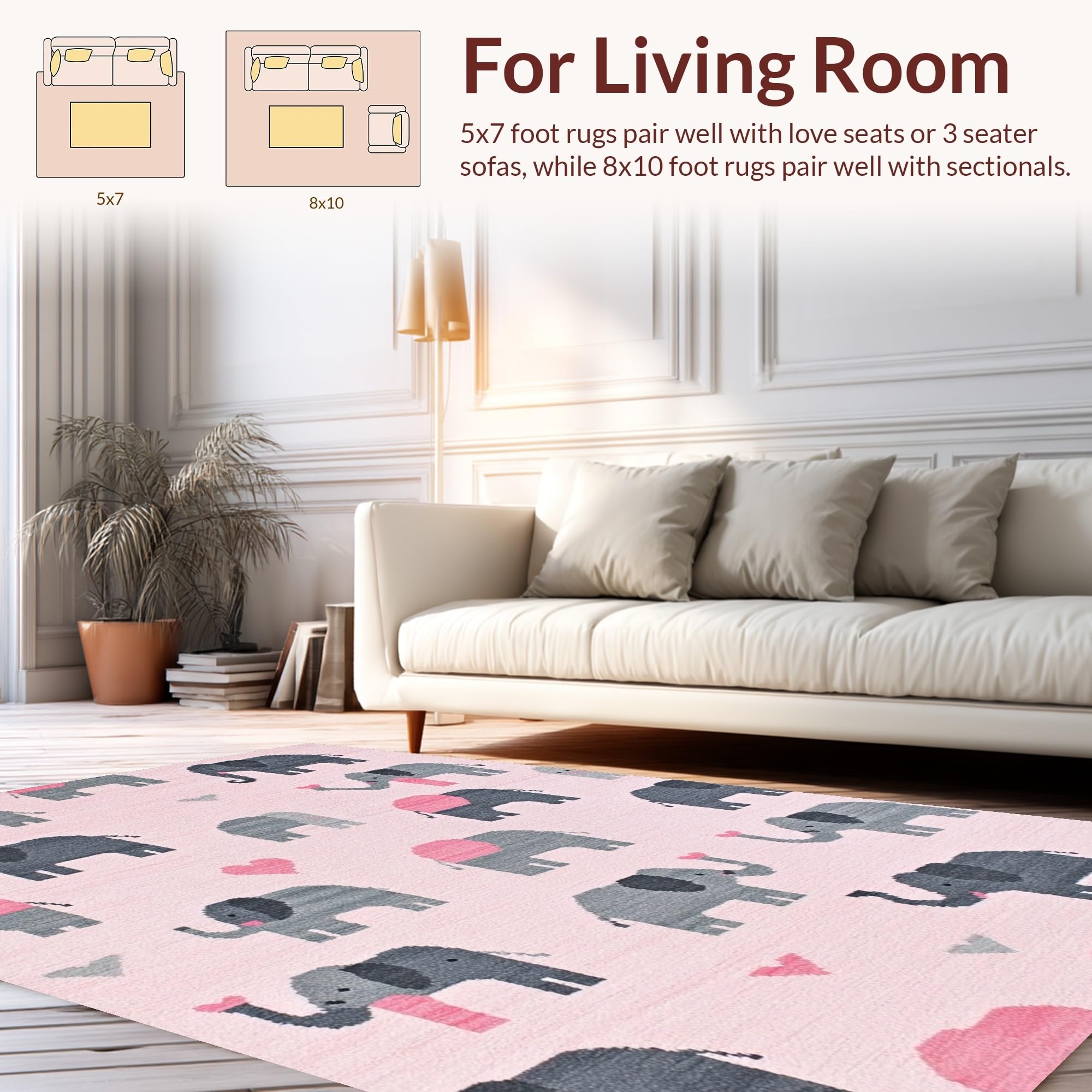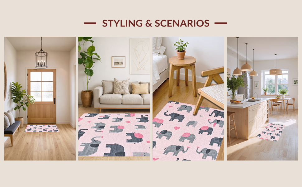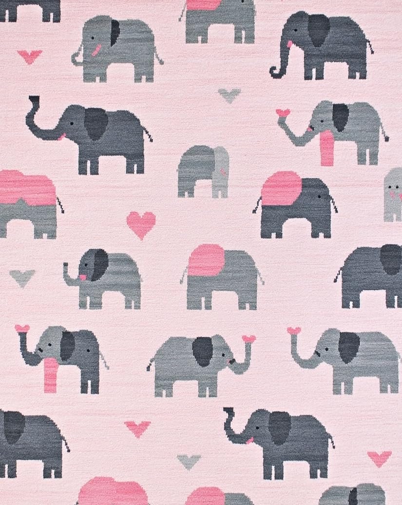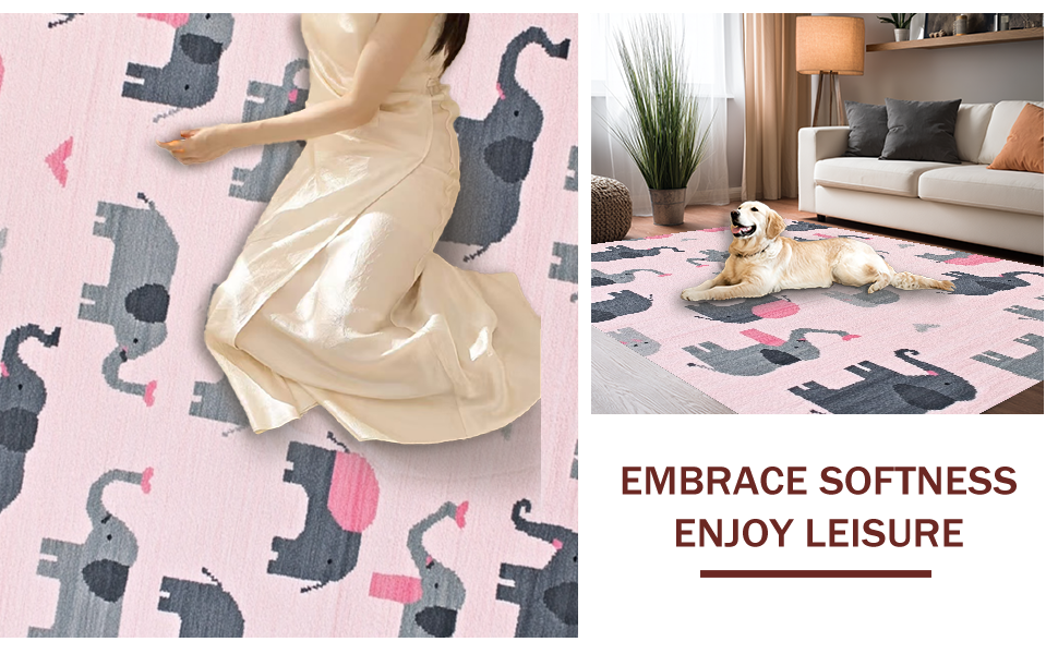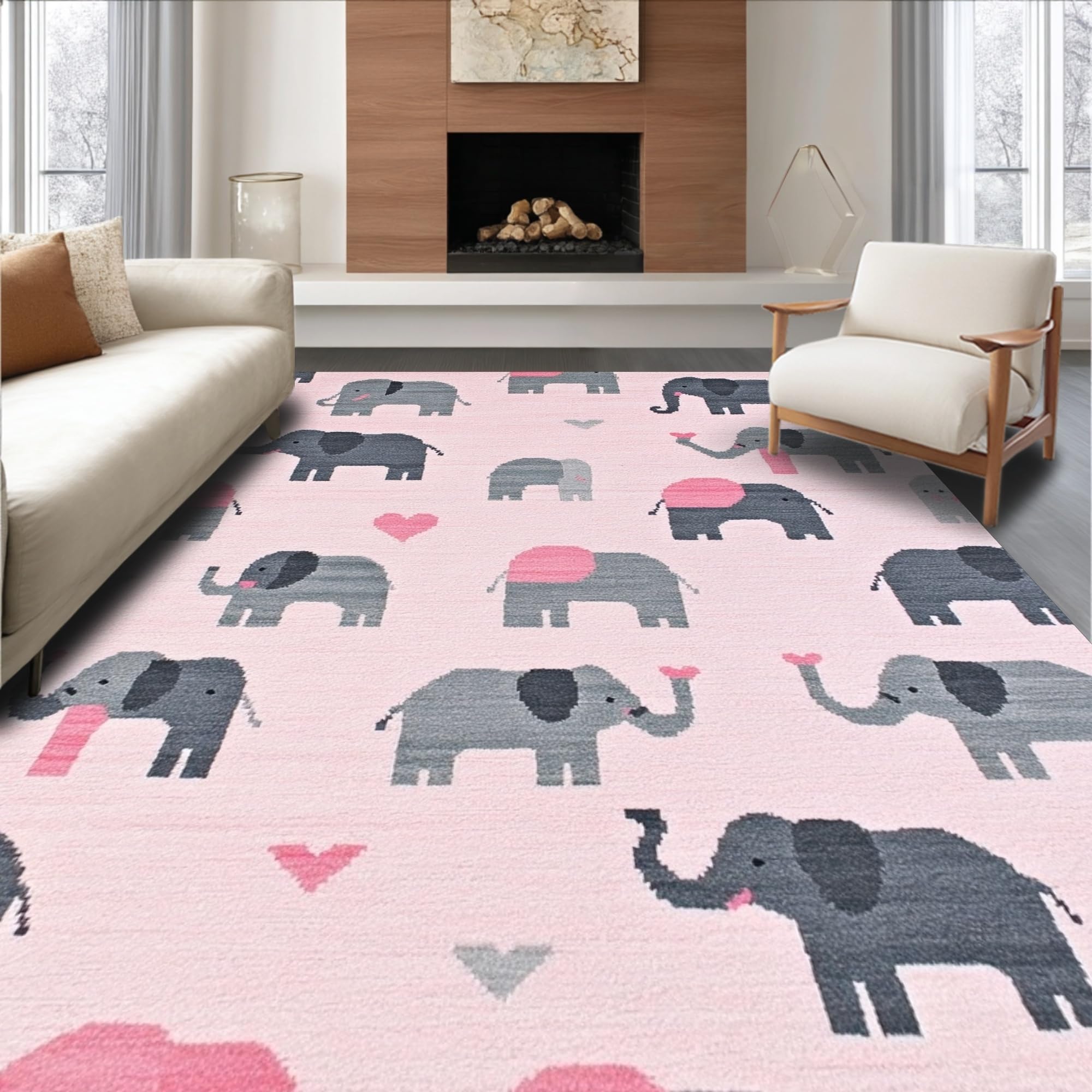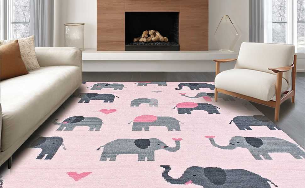 Ultra Soft Area Rug, Non Slip, Stain Resistant, Washable Area Rugs for Living Room, Bedroom, Chic Gray and White Cartoon Style(Pink) Overview: