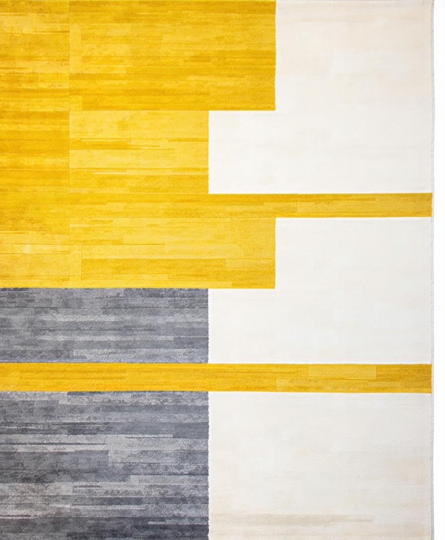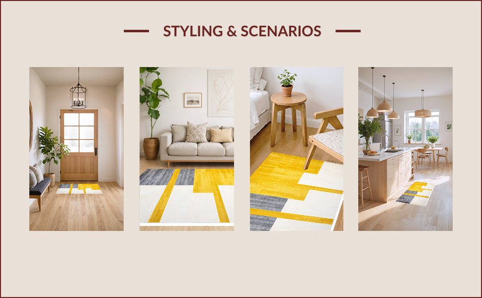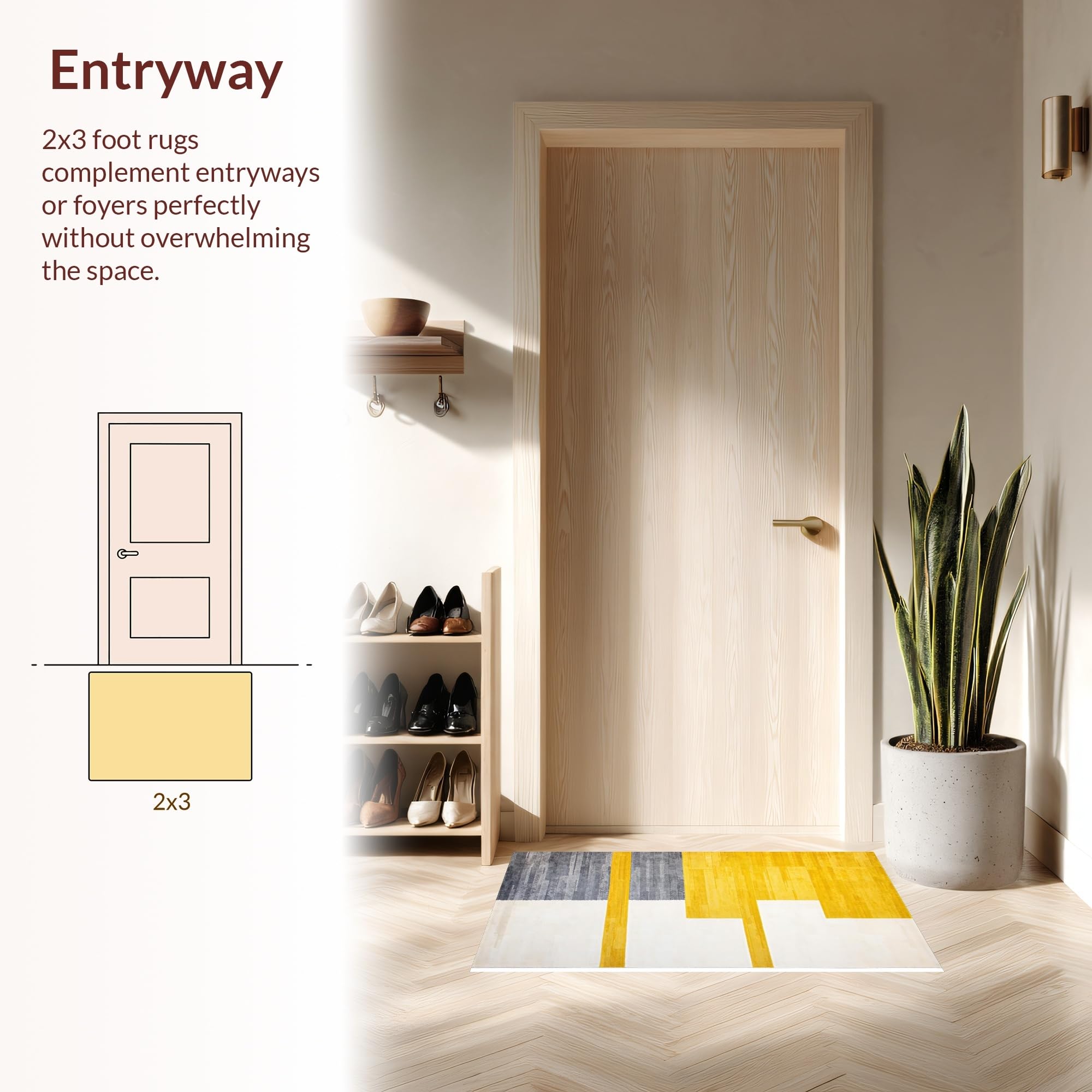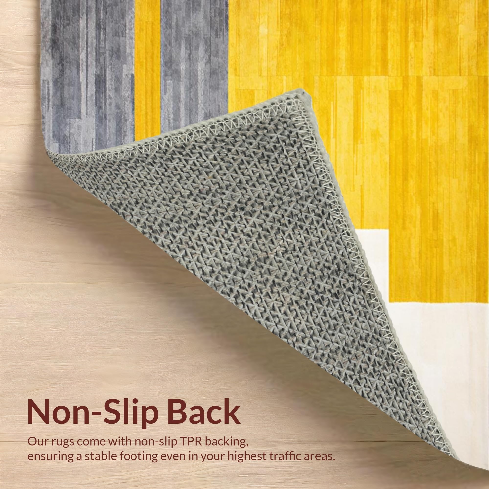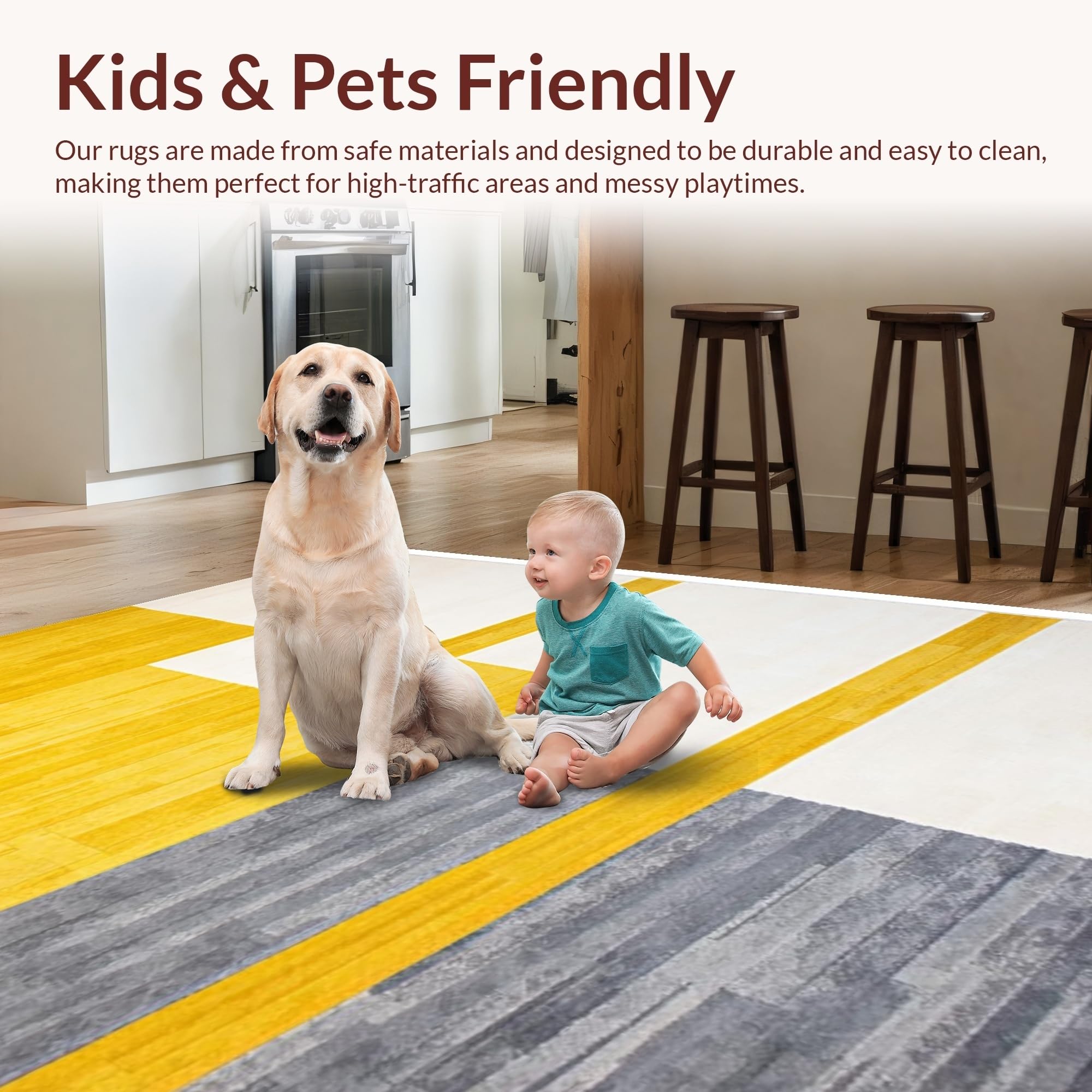 Ultra Soft Area Rug, Non Slip, Stain Resistant, Washable Area Rugs for Living Room, Bedroom, Chic Gray Yellow Geometric Fusion(Yellow) Overview: