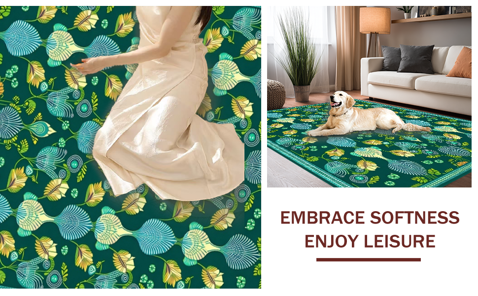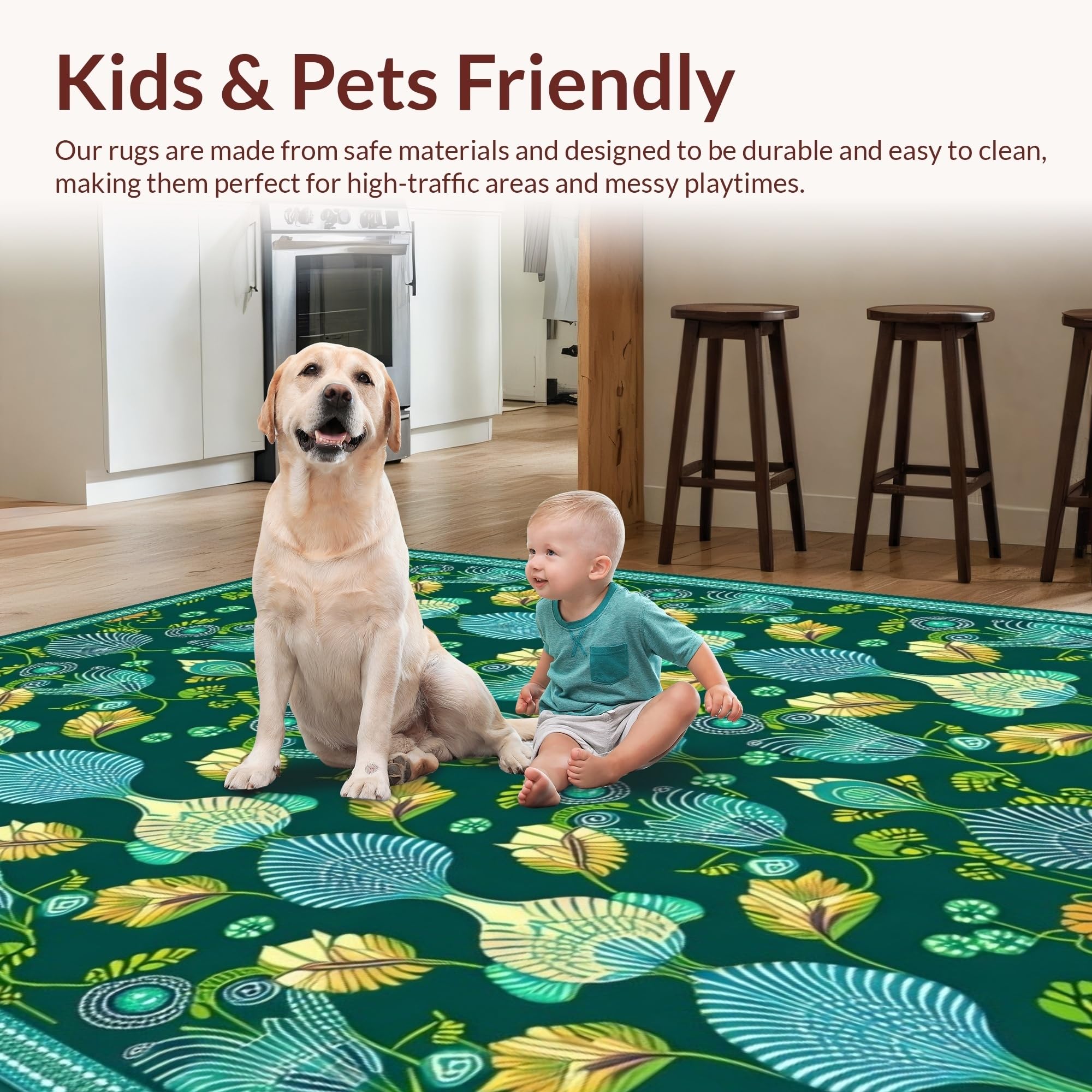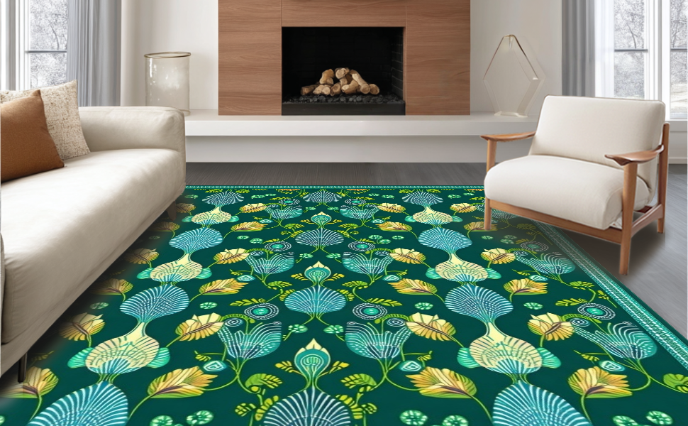 Ultra Soft Area Rug, Non Slip, Stain Resistant, Washable Area Rugs for Living Room, Bedroom, Chic Green Abstract Nature Motif(Green) Overview:
