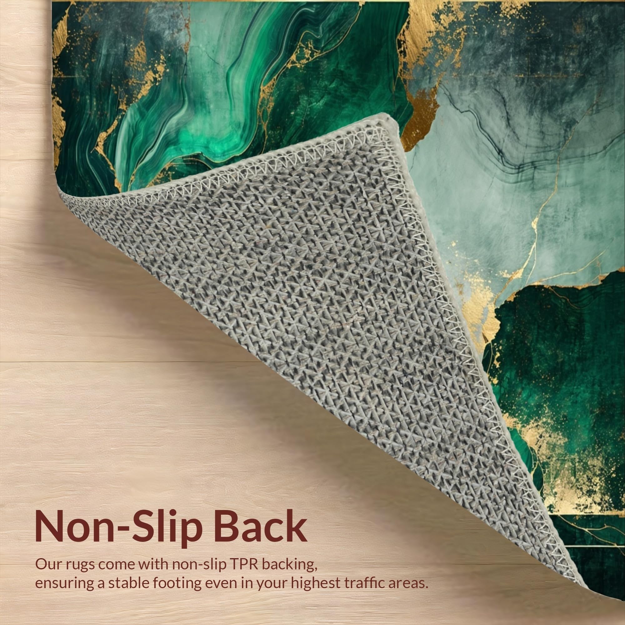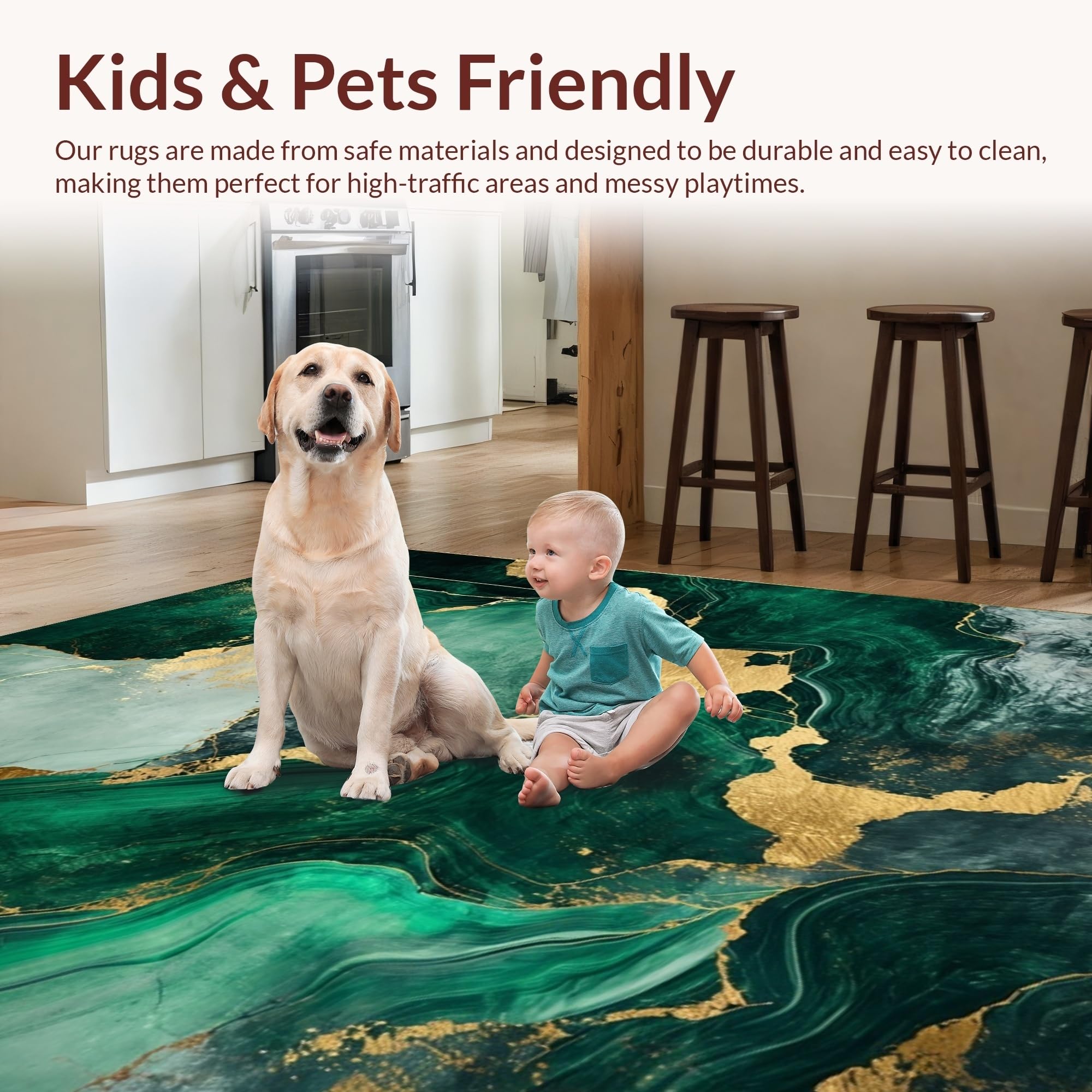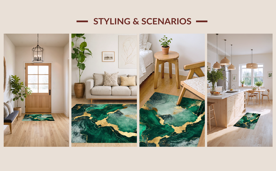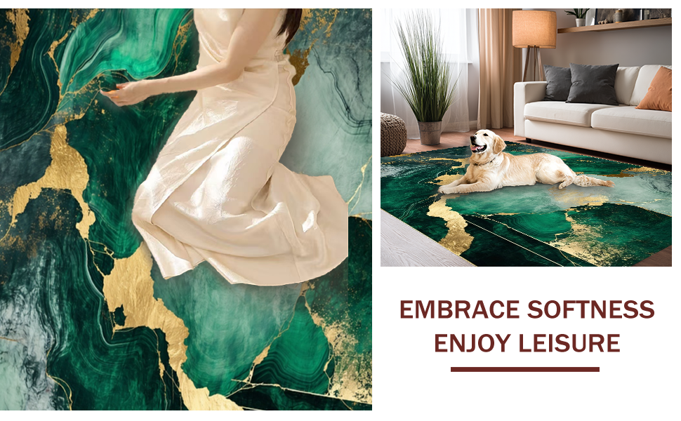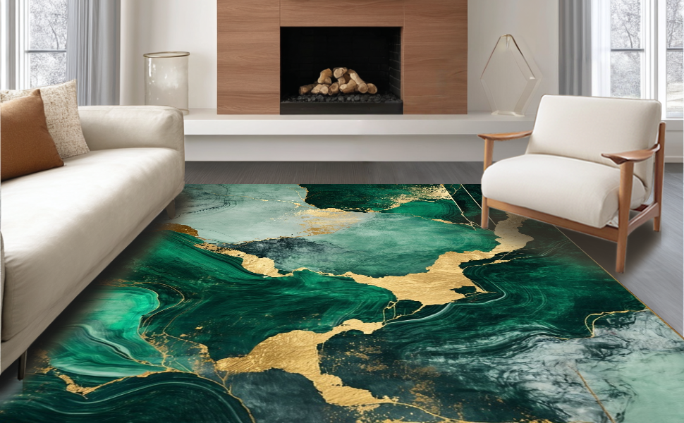 Ultra Soft Area Rug, Non Slip, Stain Resistant, Washable Area Rugs for Living Room, Bedroom, Chic Green and Gold Blend(Green) Overview: