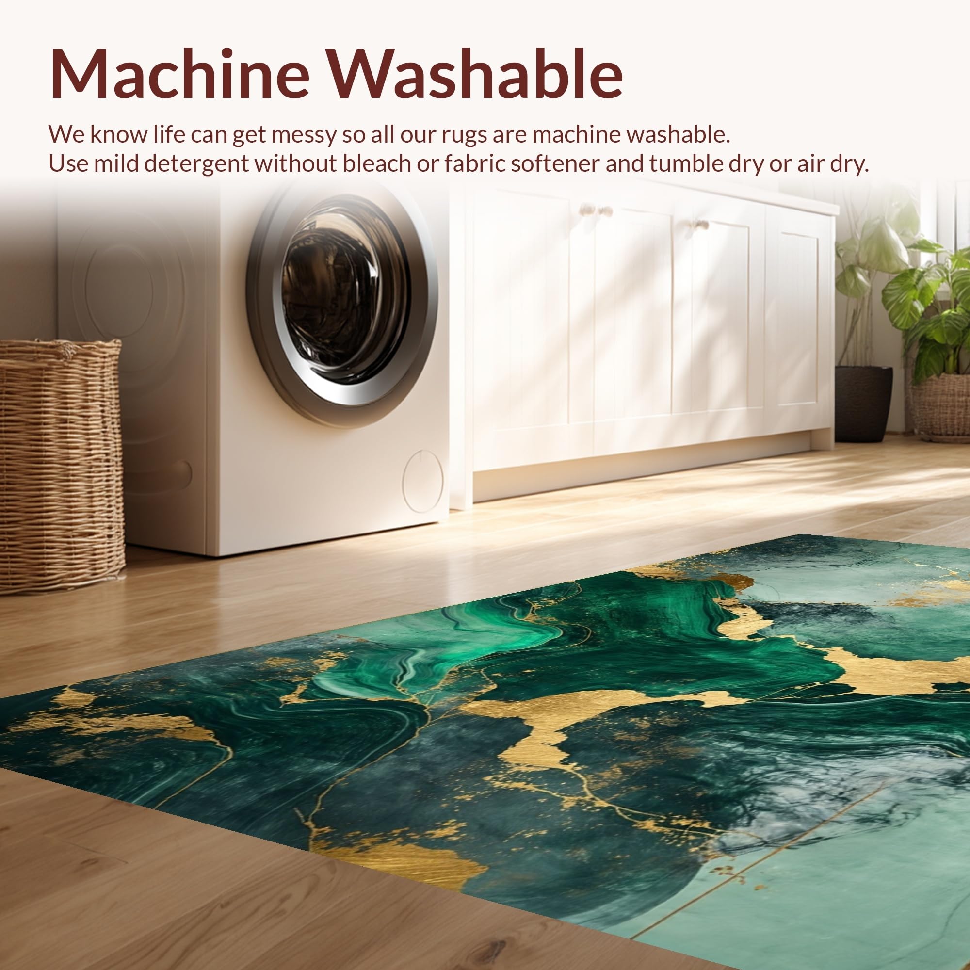 - Machine Washable: Our rugs can be easily thrown in the wash machine.