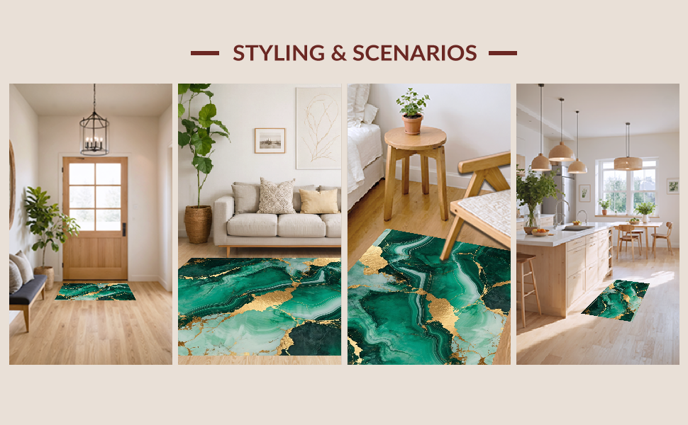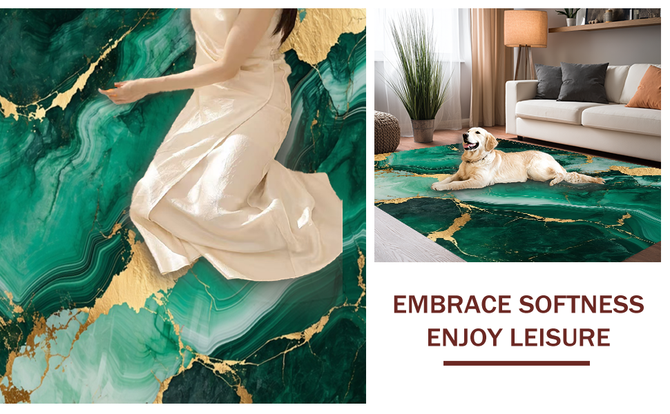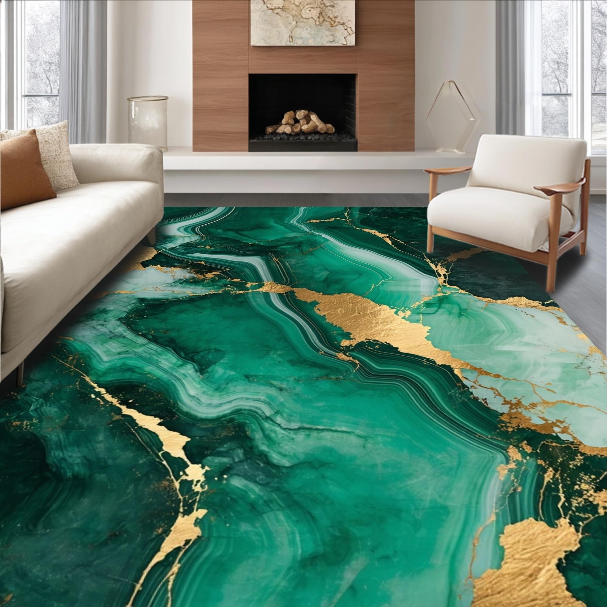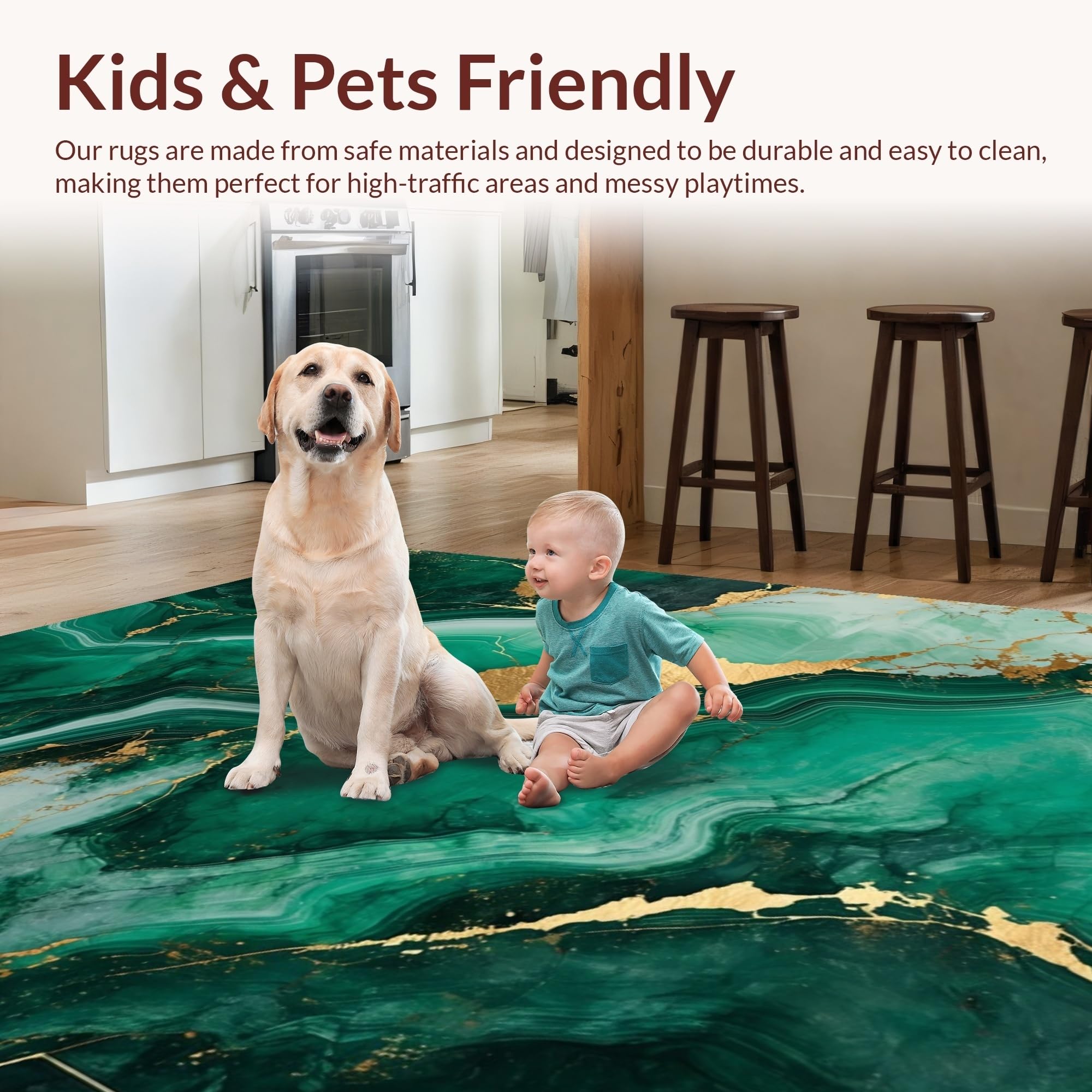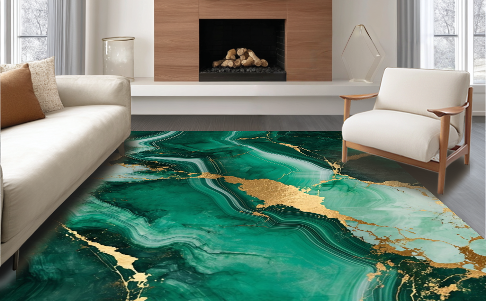Ultra Soft Area Rug, Non Slip, Stain Resistant, Washable Area Rugs for Living Room, Bedroom, Chic Green Gold Artful Fusion(Green) Overview: