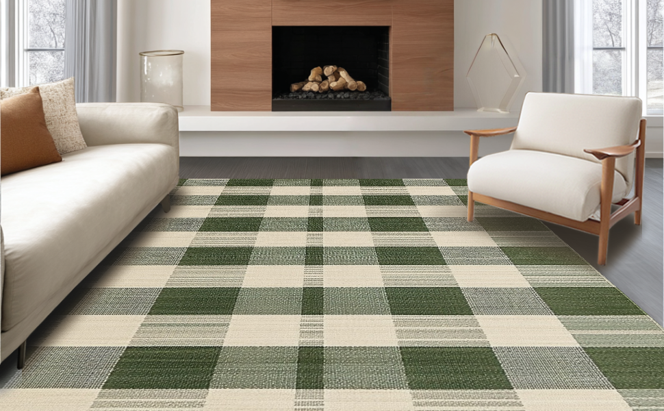 Ultra Soft Area Rug, Non Slip, Stain Resistant, Washable Area Rugs for Living Room, Bedroom, Chic Green Tiled Motif(Beige) Overview: