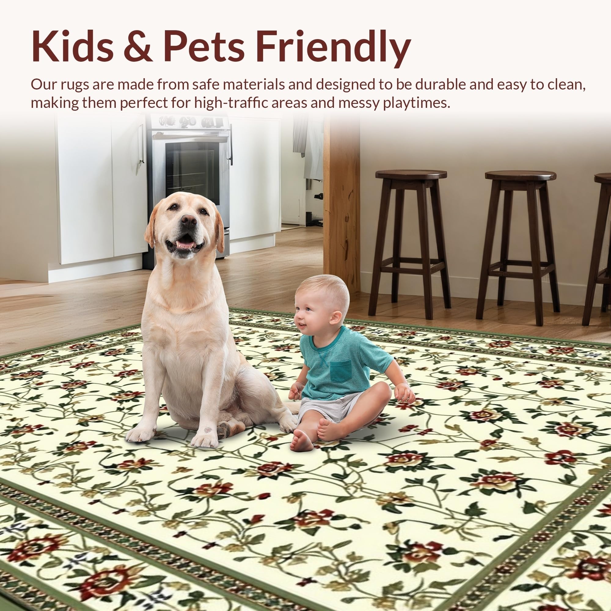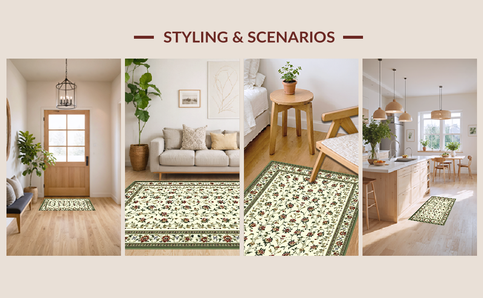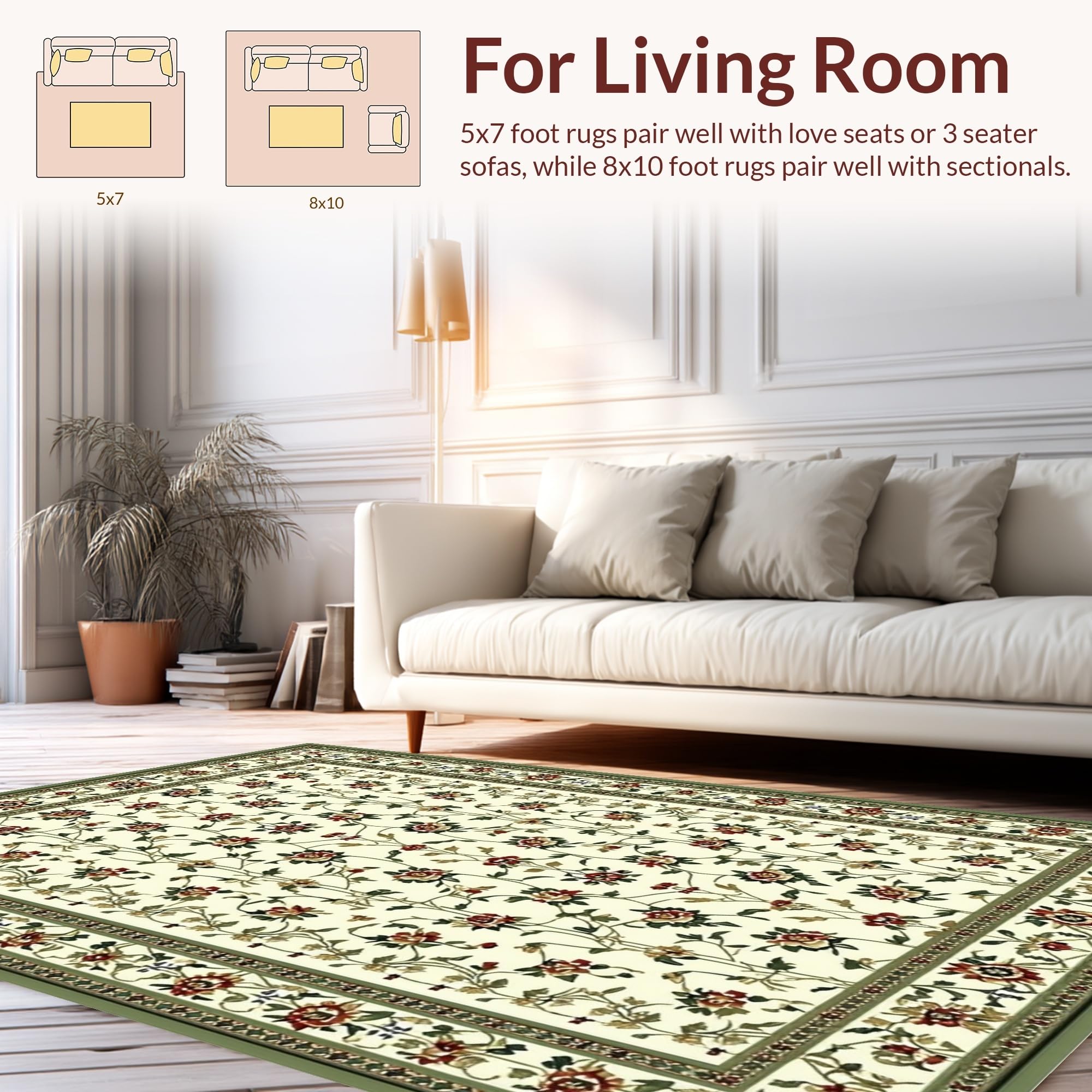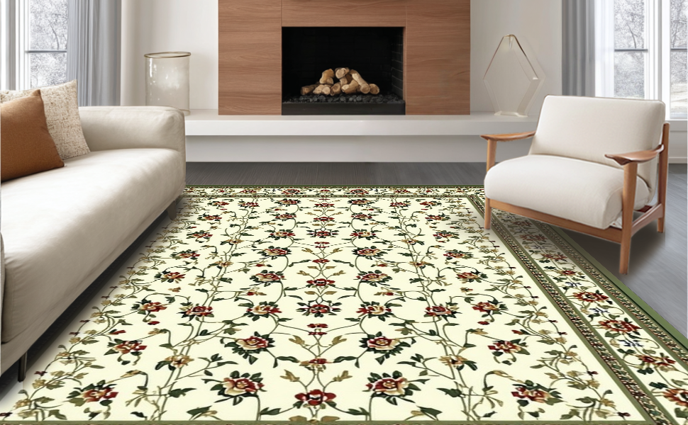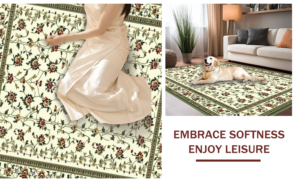 Ultra Soft Area Rug, Non Slip, Stain Resistant, Washable Area Rugs for Living Room, Bedroom, Chic Greenery Expression(Beige) Overview: