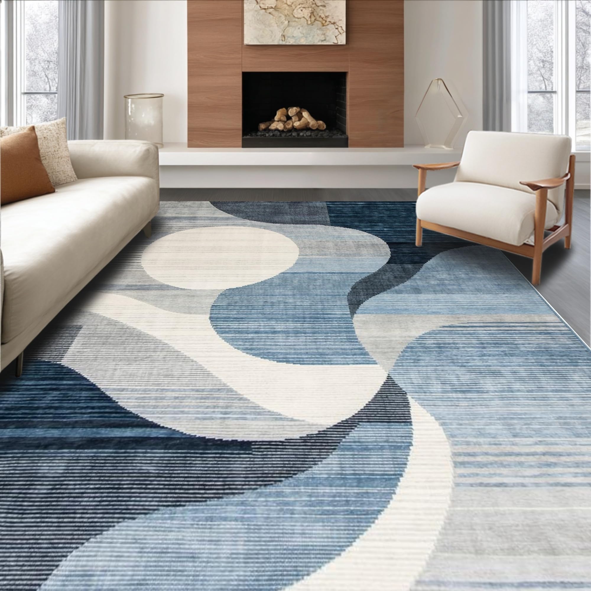 Ultra Soft Area Rug, Non Slip, Stain Resistant, Washable Area Rugs for Living Room, Bedroom, Chic Grey Geometric Elements(Blue) Overview: