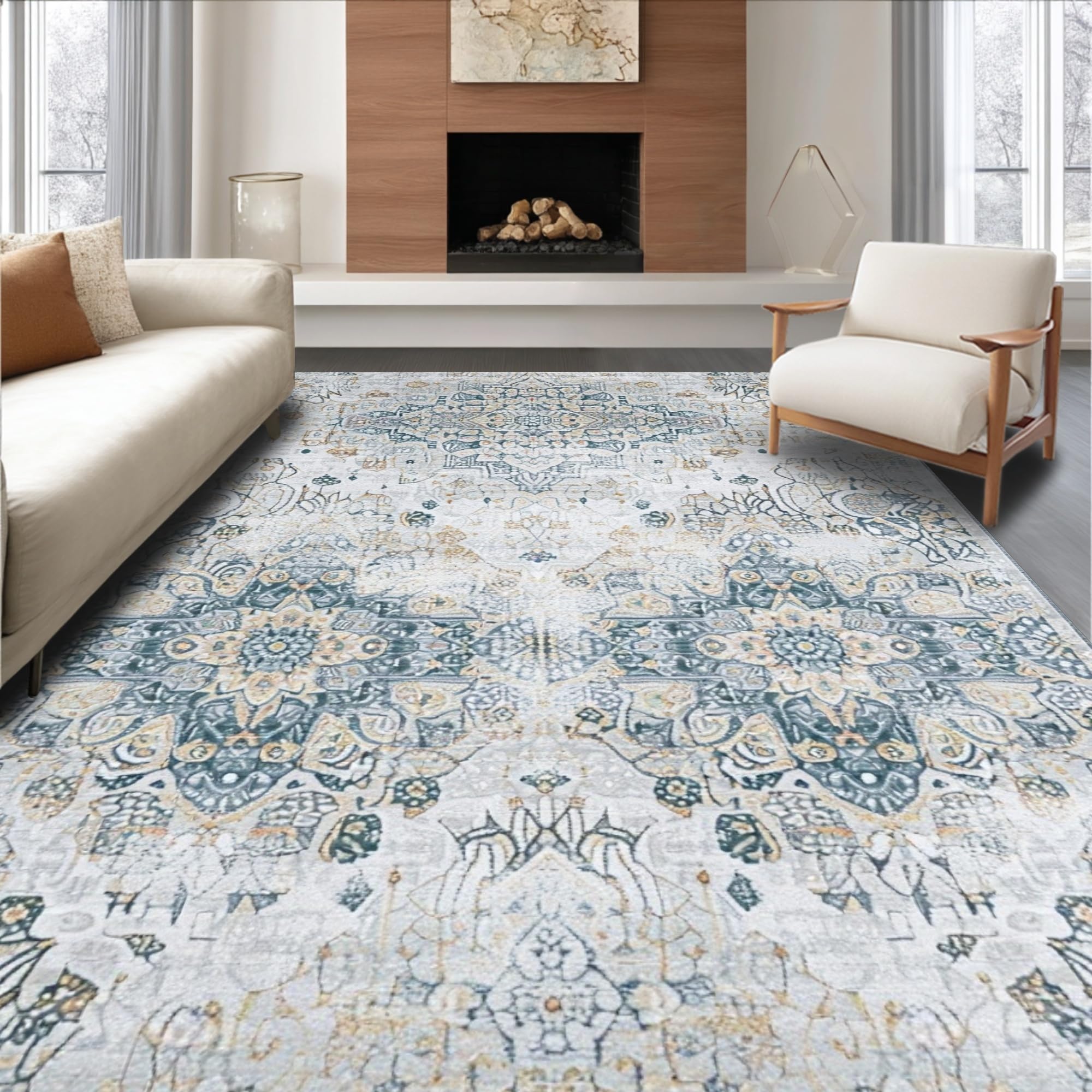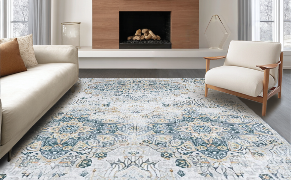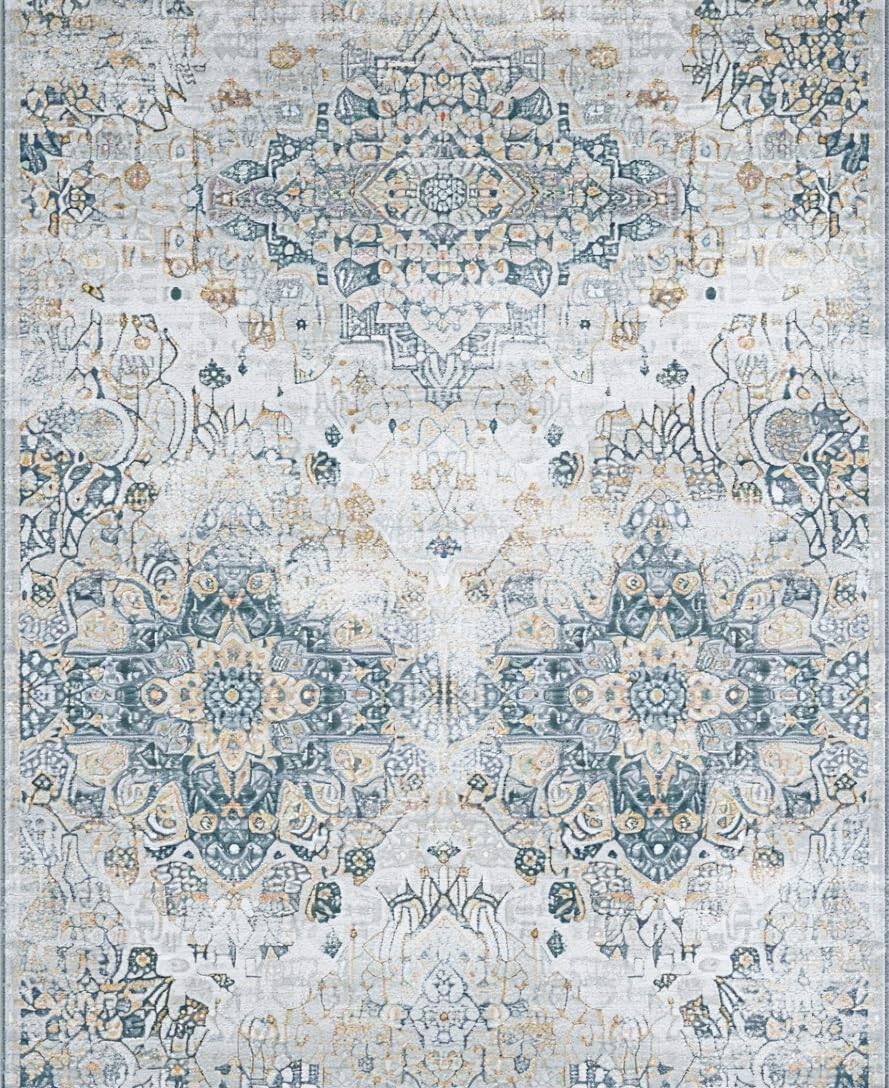 Ultra Soft Area Rug, Non Slip, Stain Resistant, Washable Area Rugs for Living Room, Bedroom, Chic Grey Medallion Design(Gray) Overview:
