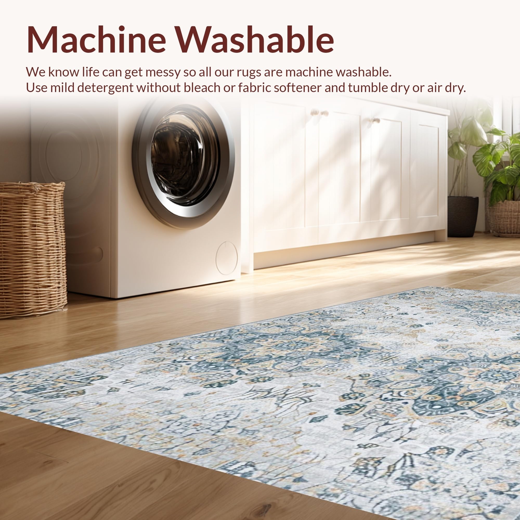 - Machine Washable: Our rugs can be easily thrown in the wash machine.