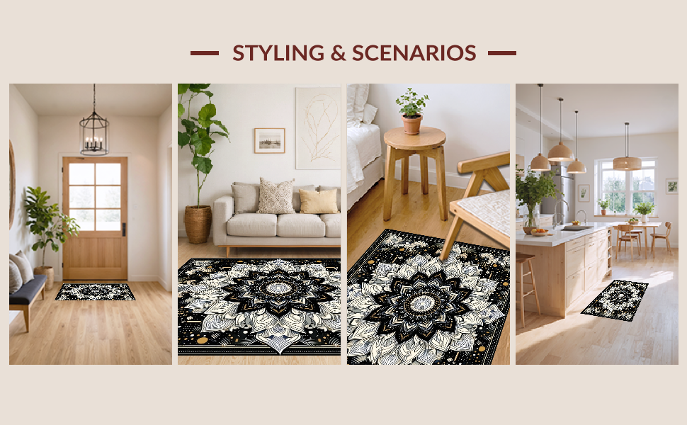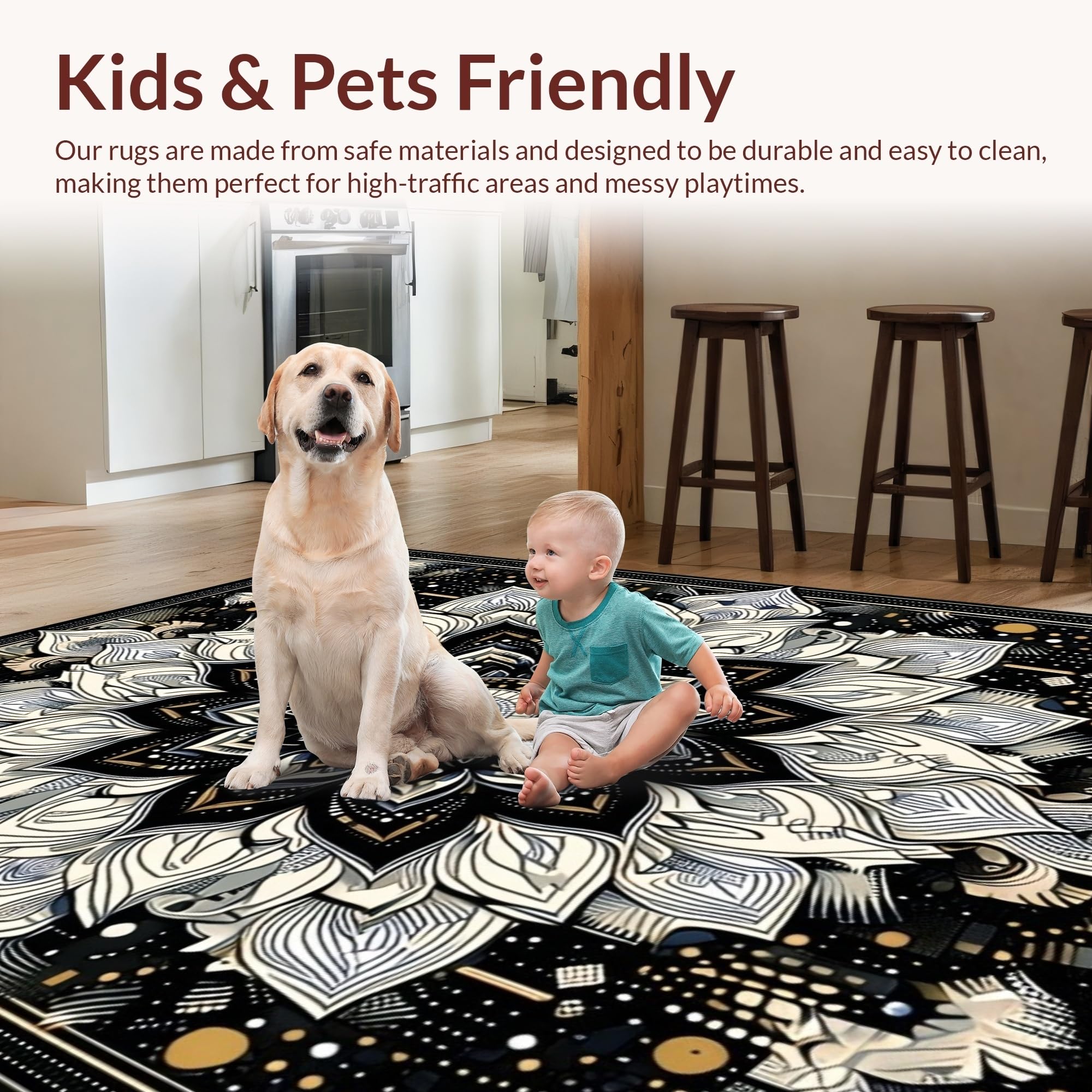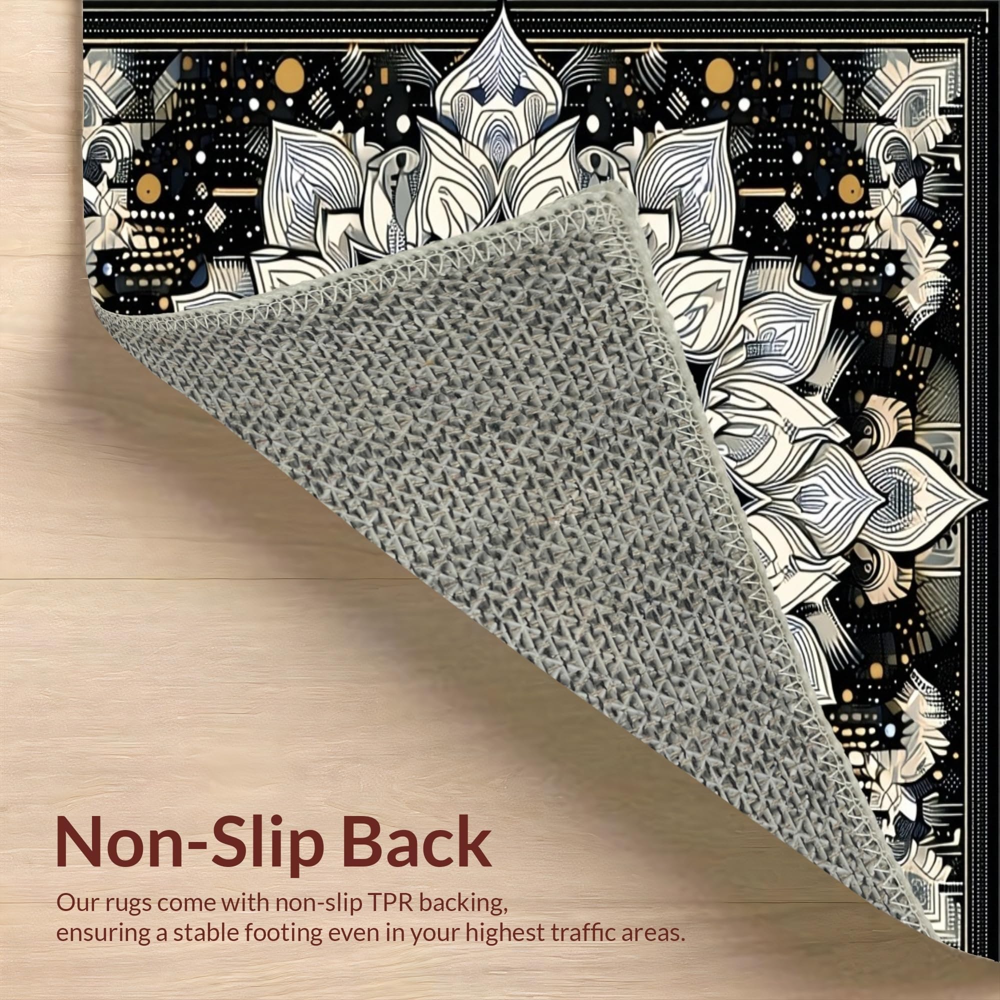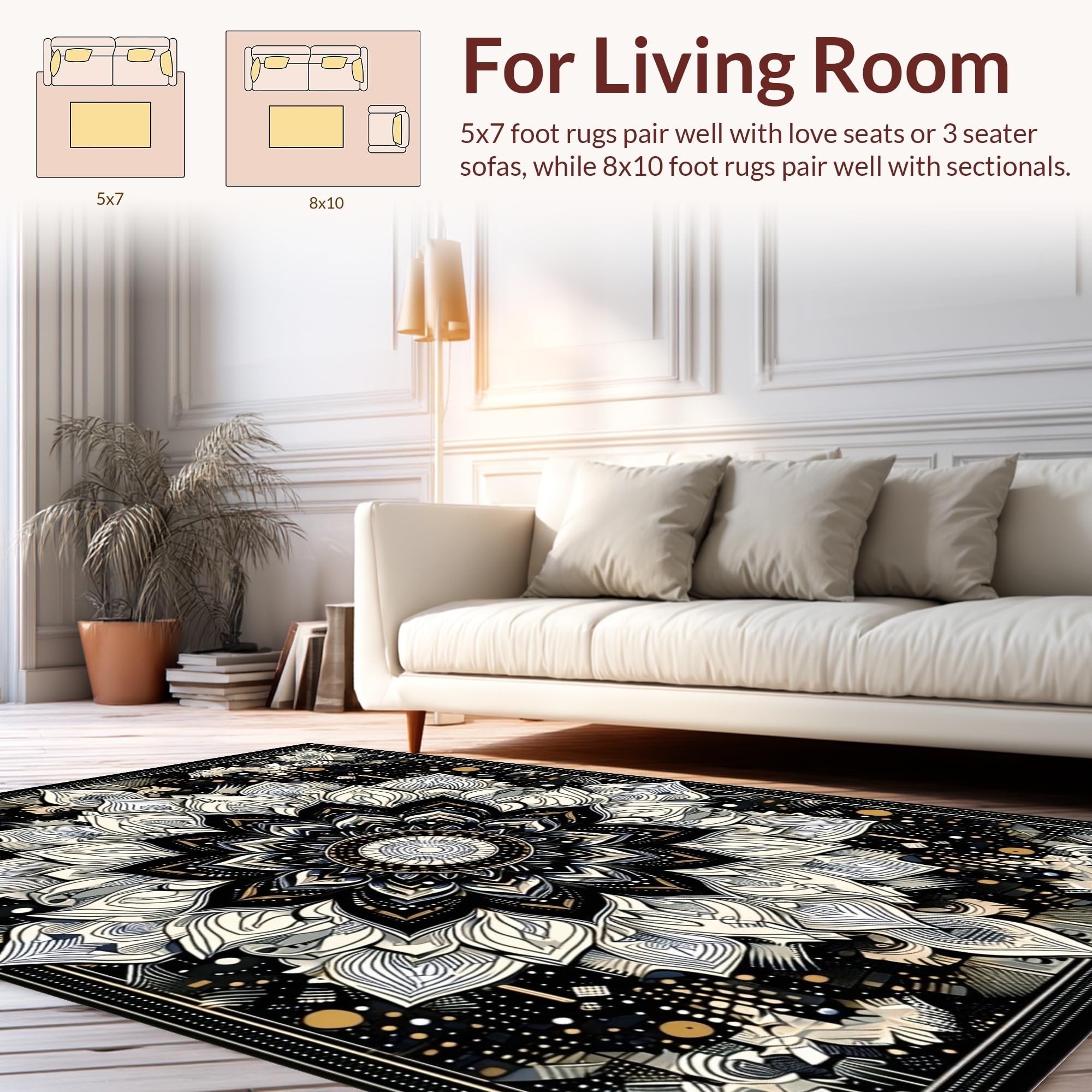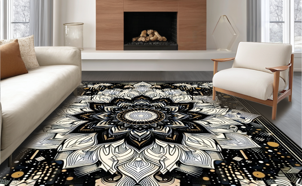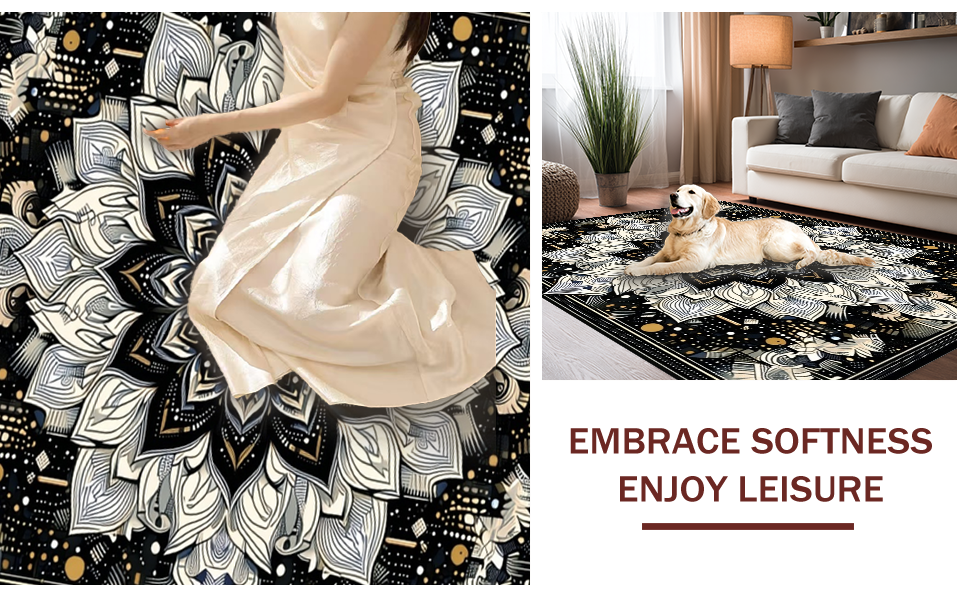 Ultra Soft Area Rug, Non Slip, Stain Resistant, Washable Area Rugs for Living Room, Bedroom, Chic Handcrafted Fringe Design(Black) Overview: