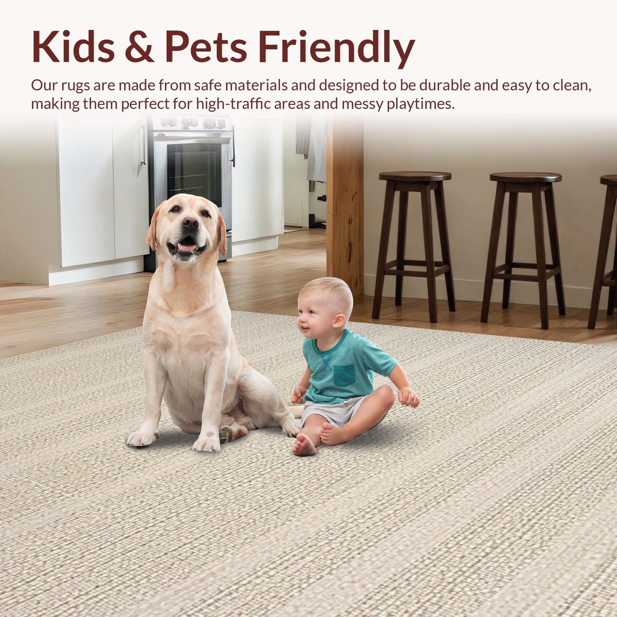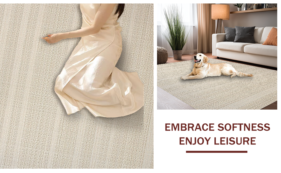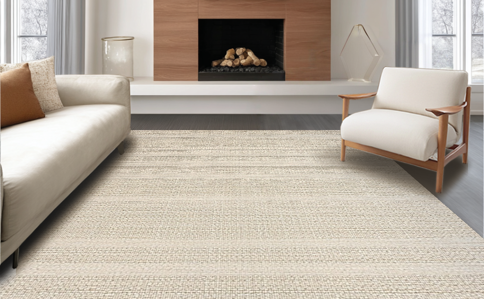 Ultra Soft Area Rug, Non Slip, Stain Resistant, Washable Area Rugs for Living Room, Bedroom, Chic Handcrafted Organic Essence(Beige) Overview: