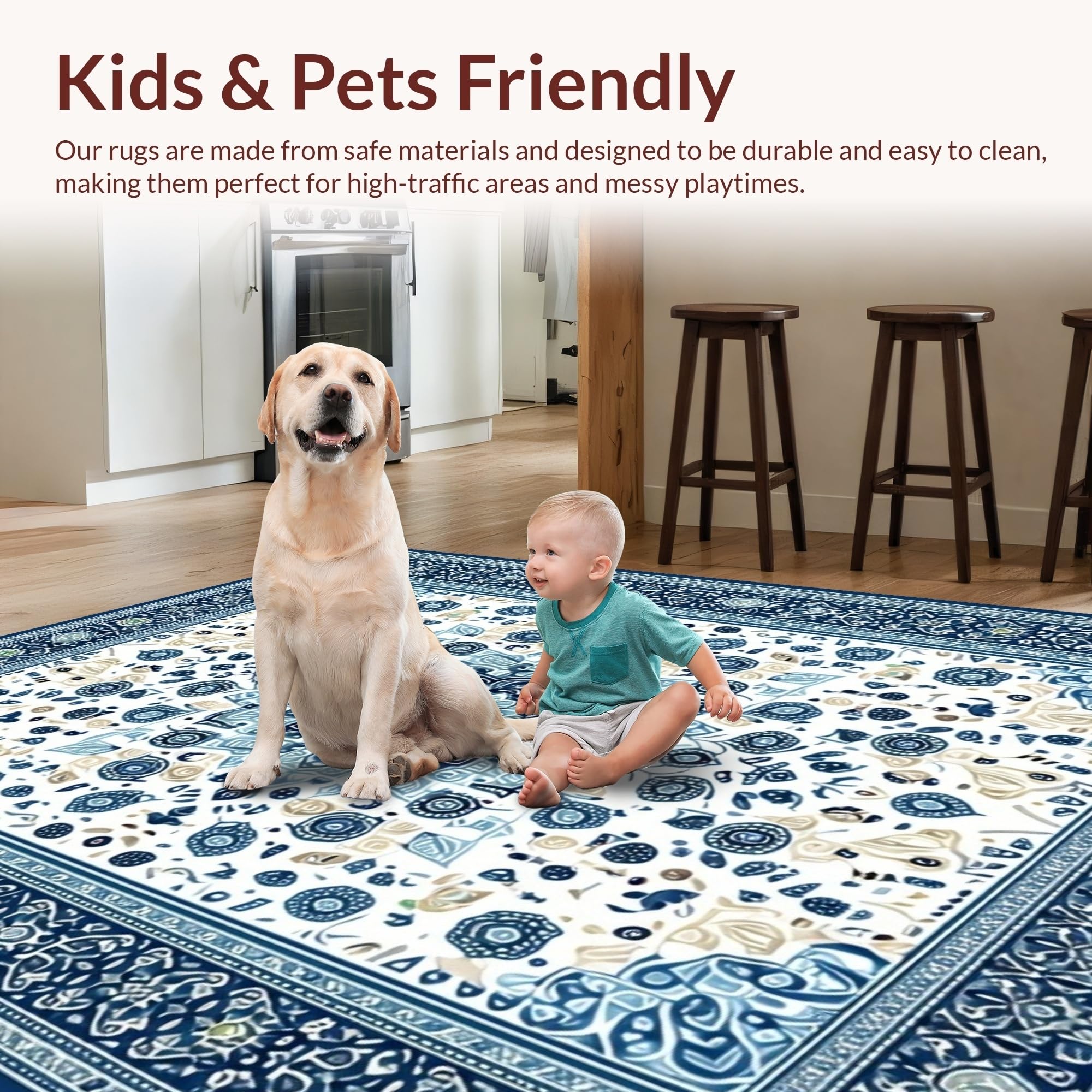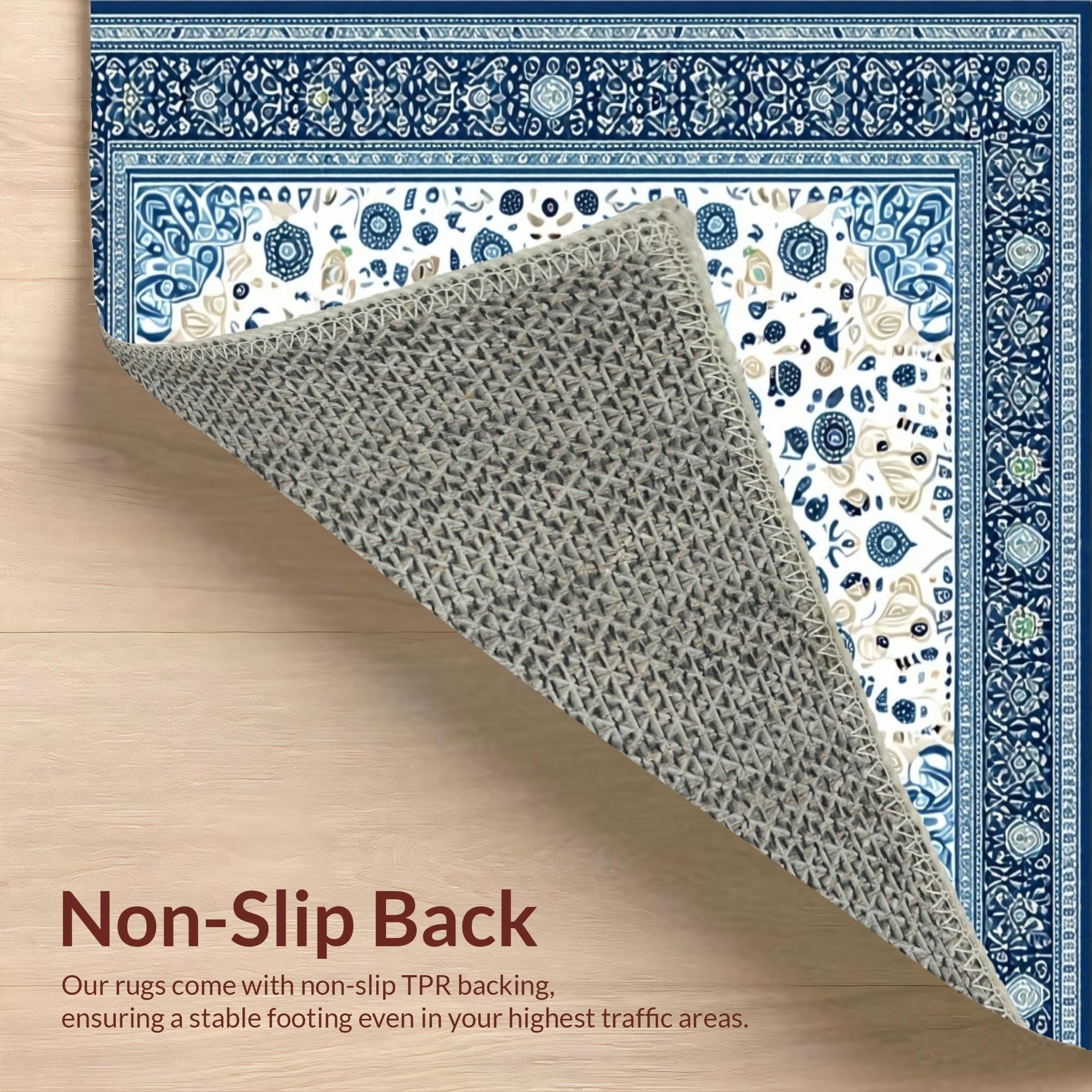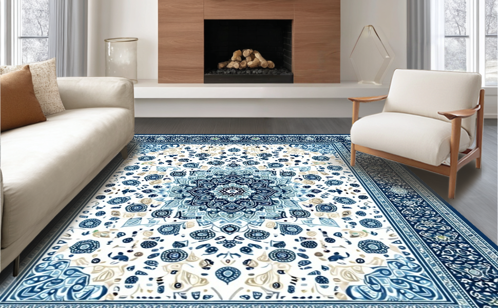 Ultra Soft Area Rug, Non Slip, Stain Resistant, Washable Area Rugs for Living Room, Bedroom, Chic Handcrafted Round Textile Art(Blue) Overview: