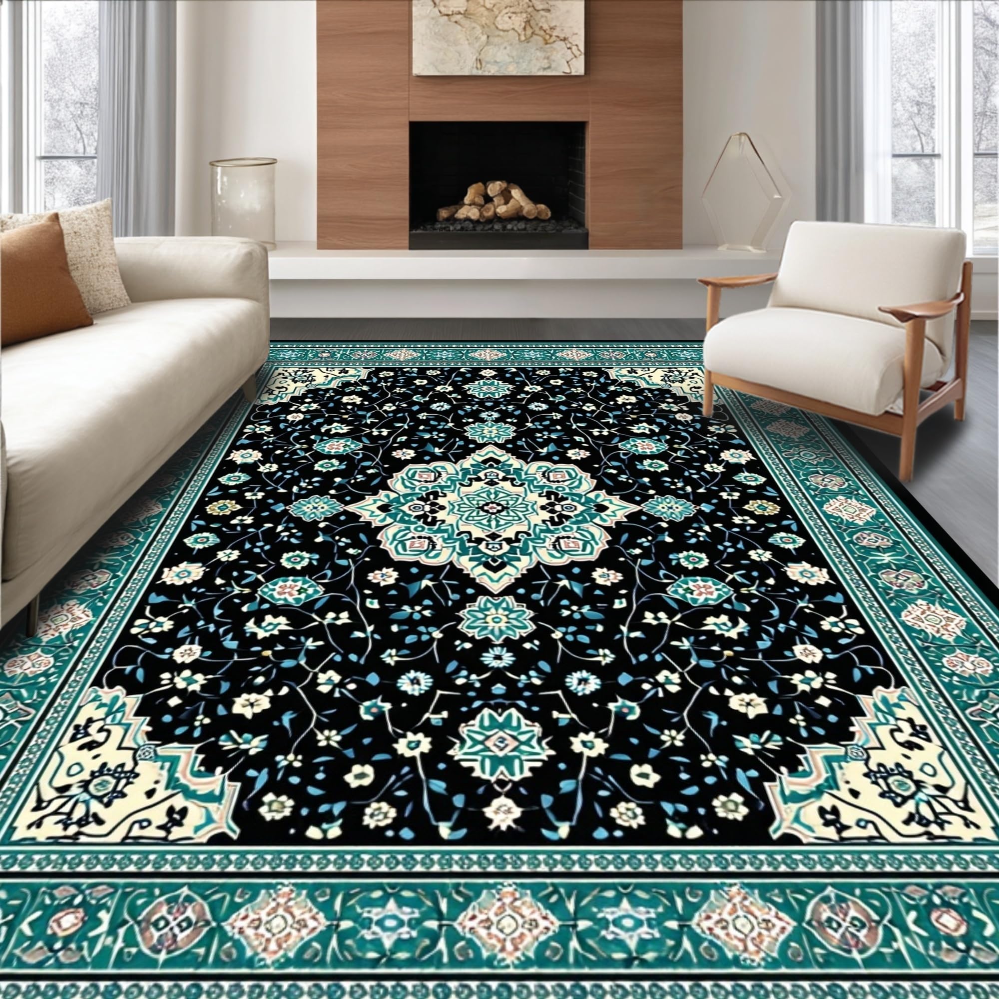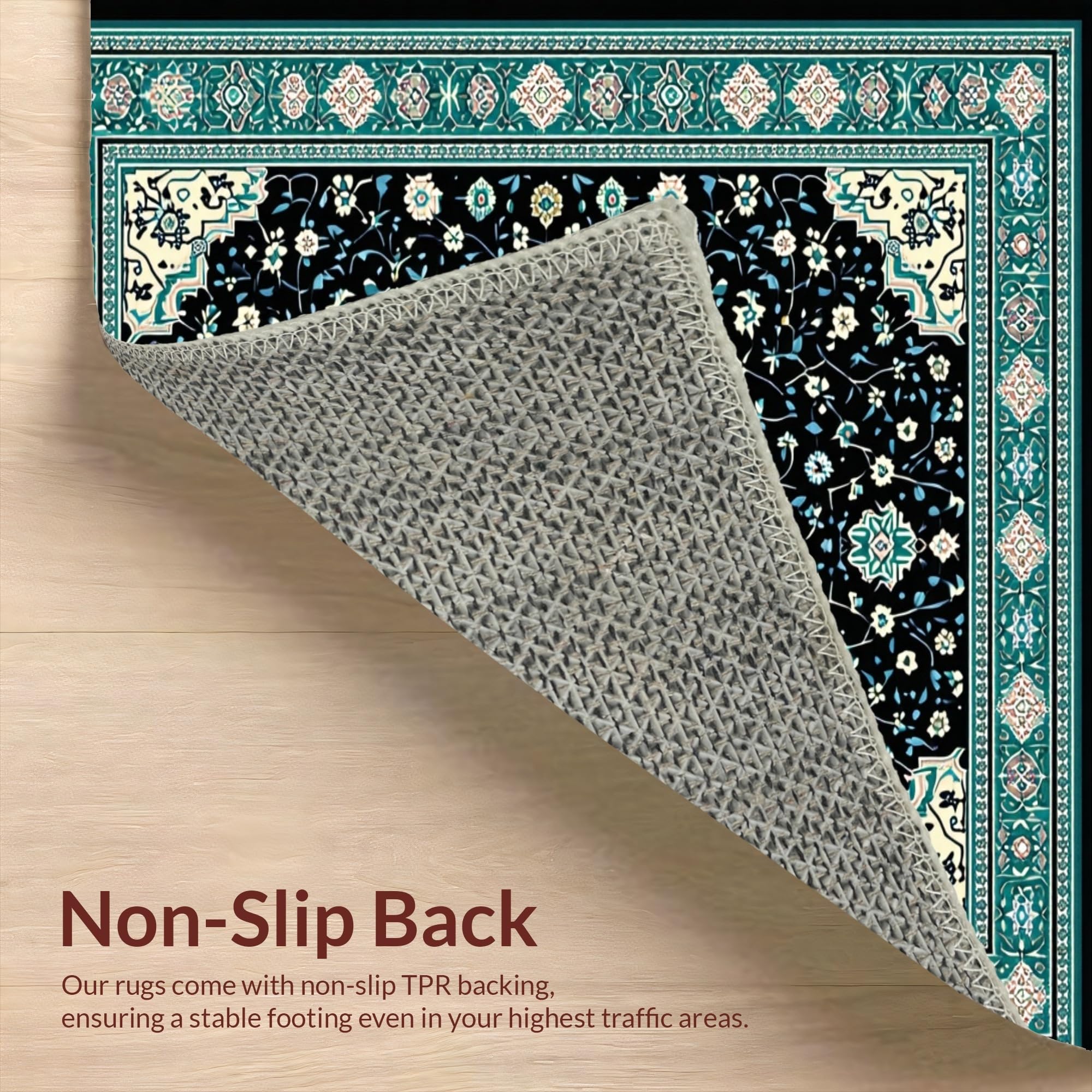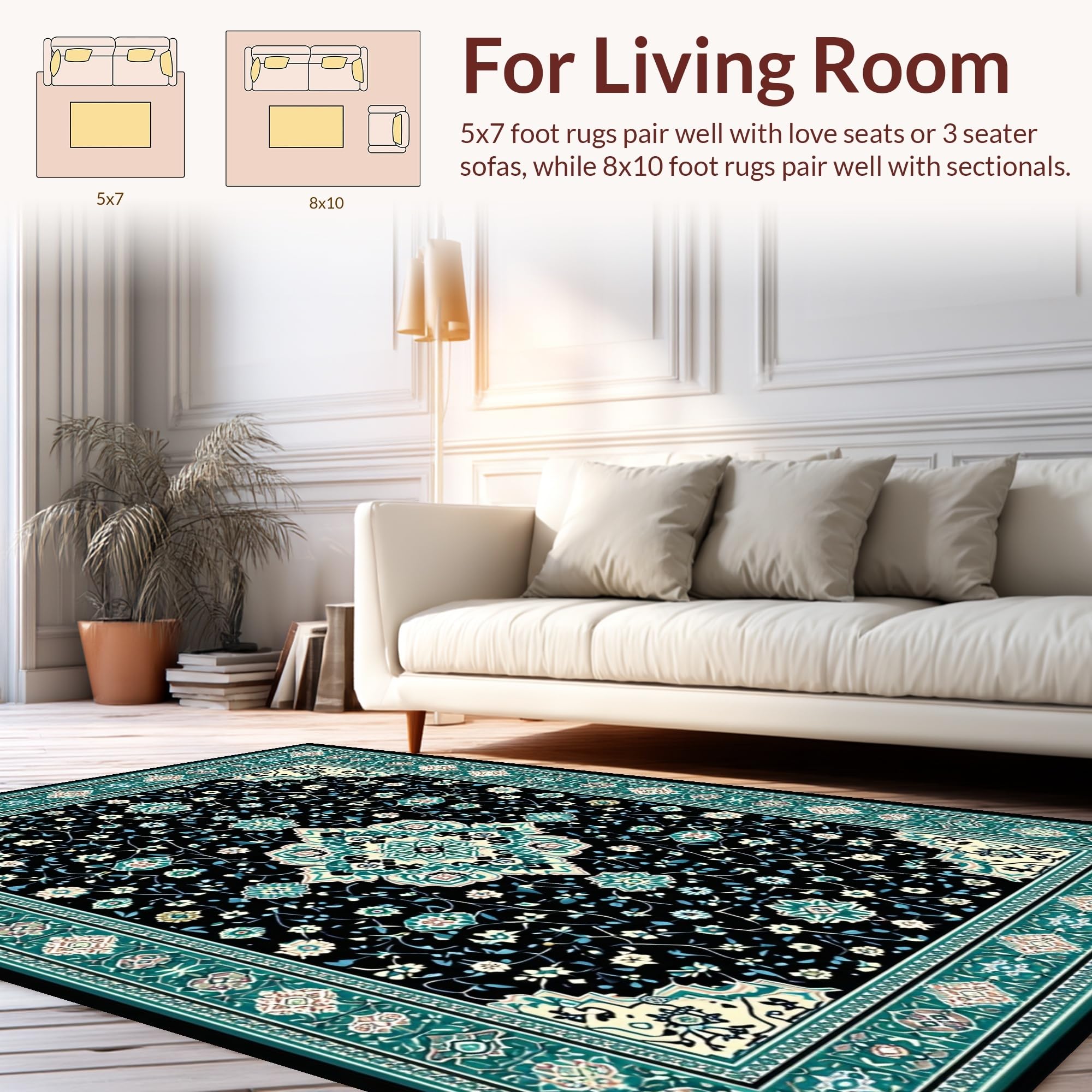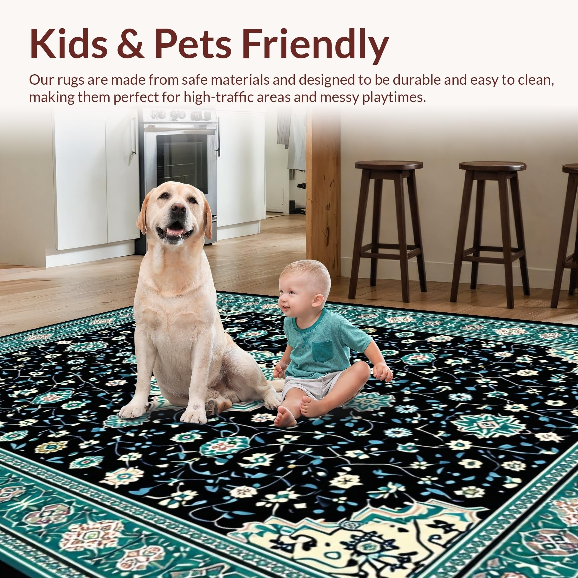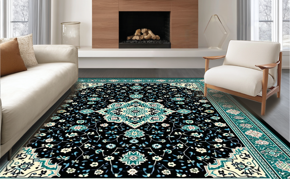 Ultra Soft Area Rug, Non Slip, Stain Resistant, Washable Area Rugs for Living Room, Bedroom, Chic High Contrast Decorative Piece(Black) Overview: