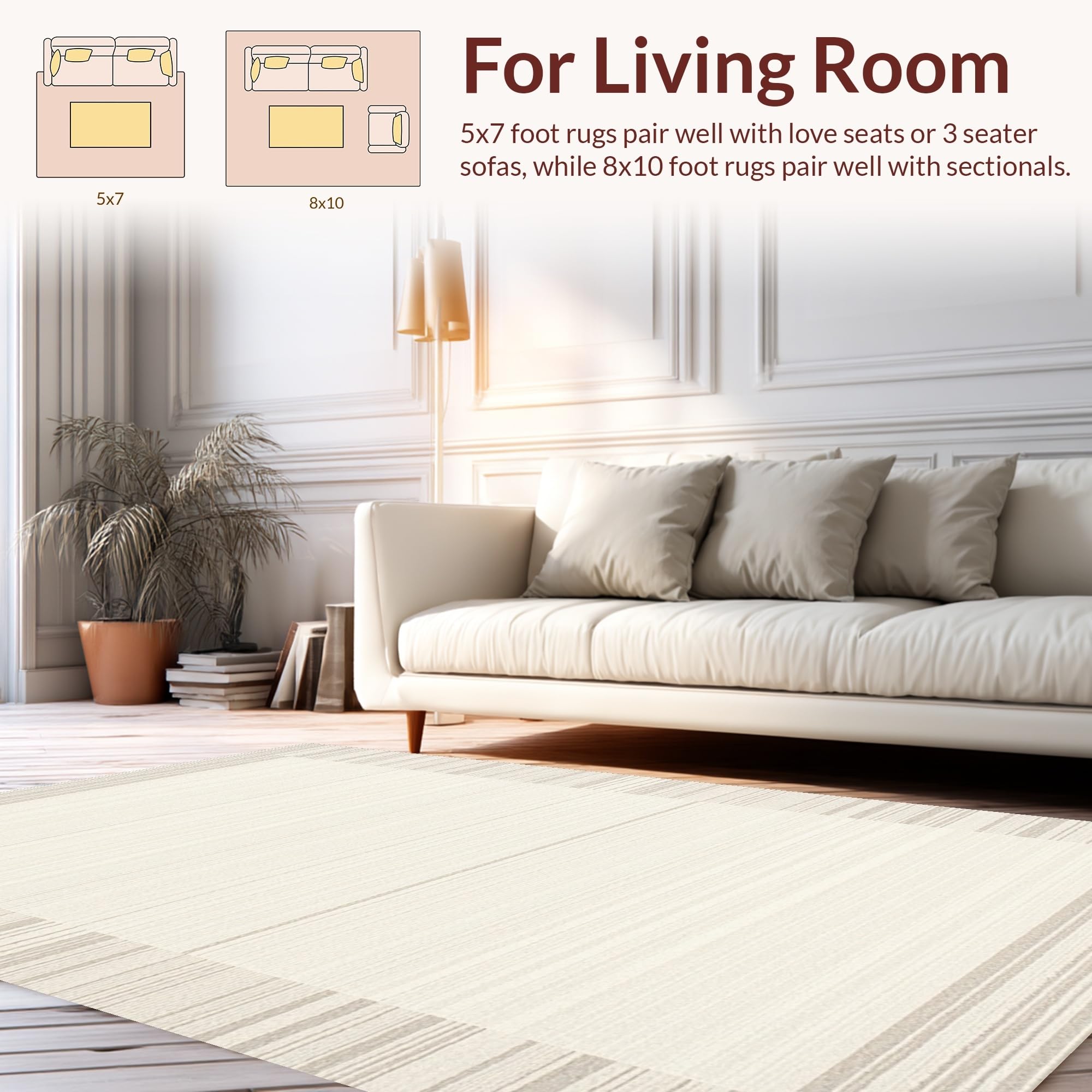 Ultra Soft Area Rug, Non Slip, Stain Resistant, Washable Area Rugs for Living Room, Bedroom, Chic High-Low Geometric Elegance(Beige) Overview: