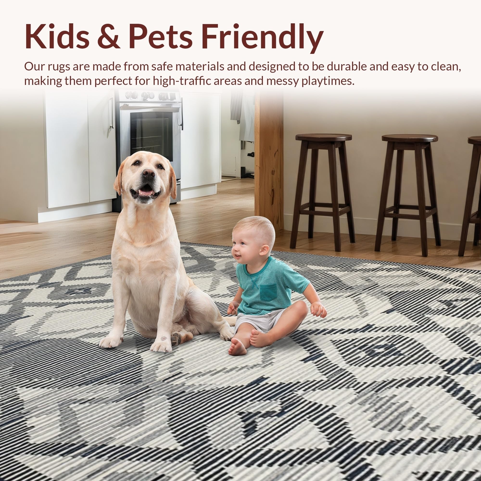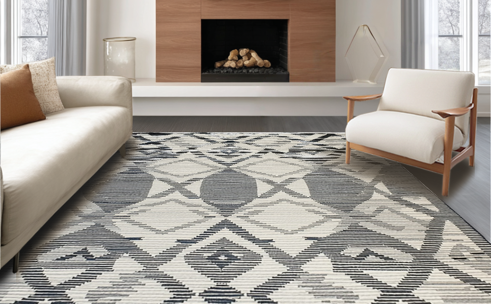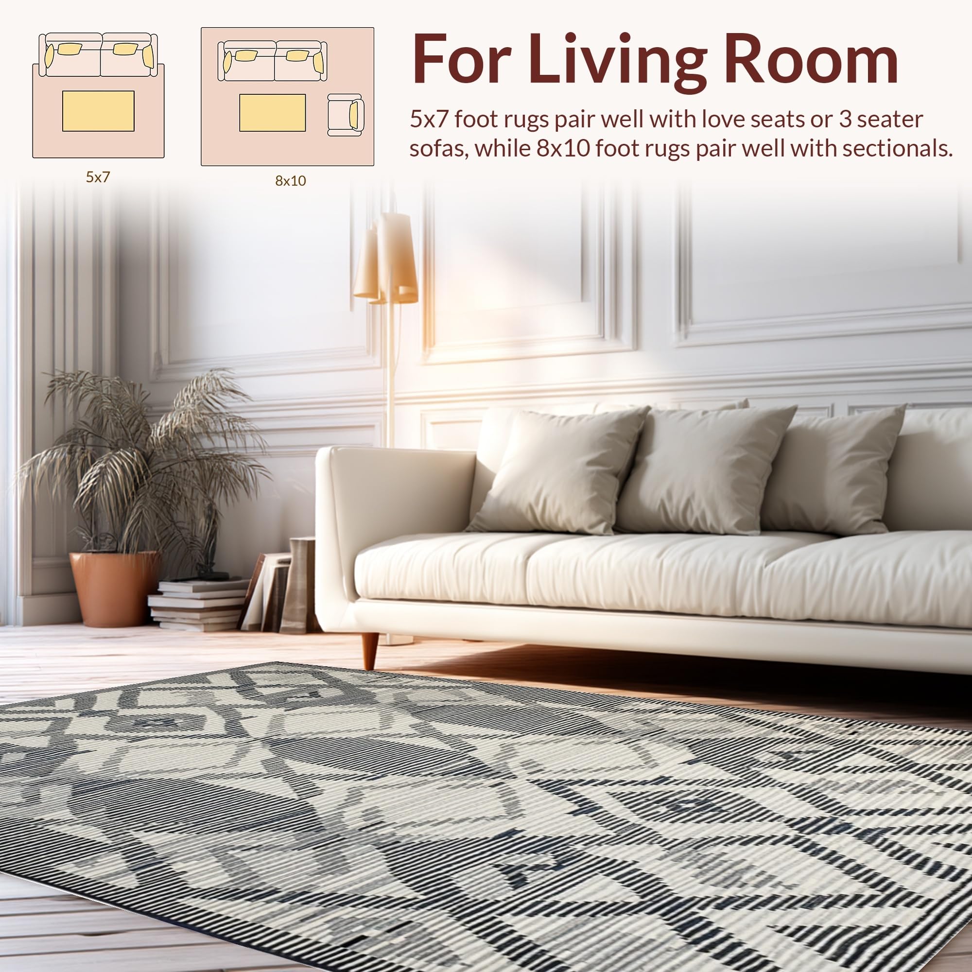 Ultra Soft Area Rug, Non Slip, Stain Resistant, Washable Area Rugs for Living Room, Bedroom, Chic High-Low Trellis Design(Gray) Overview: