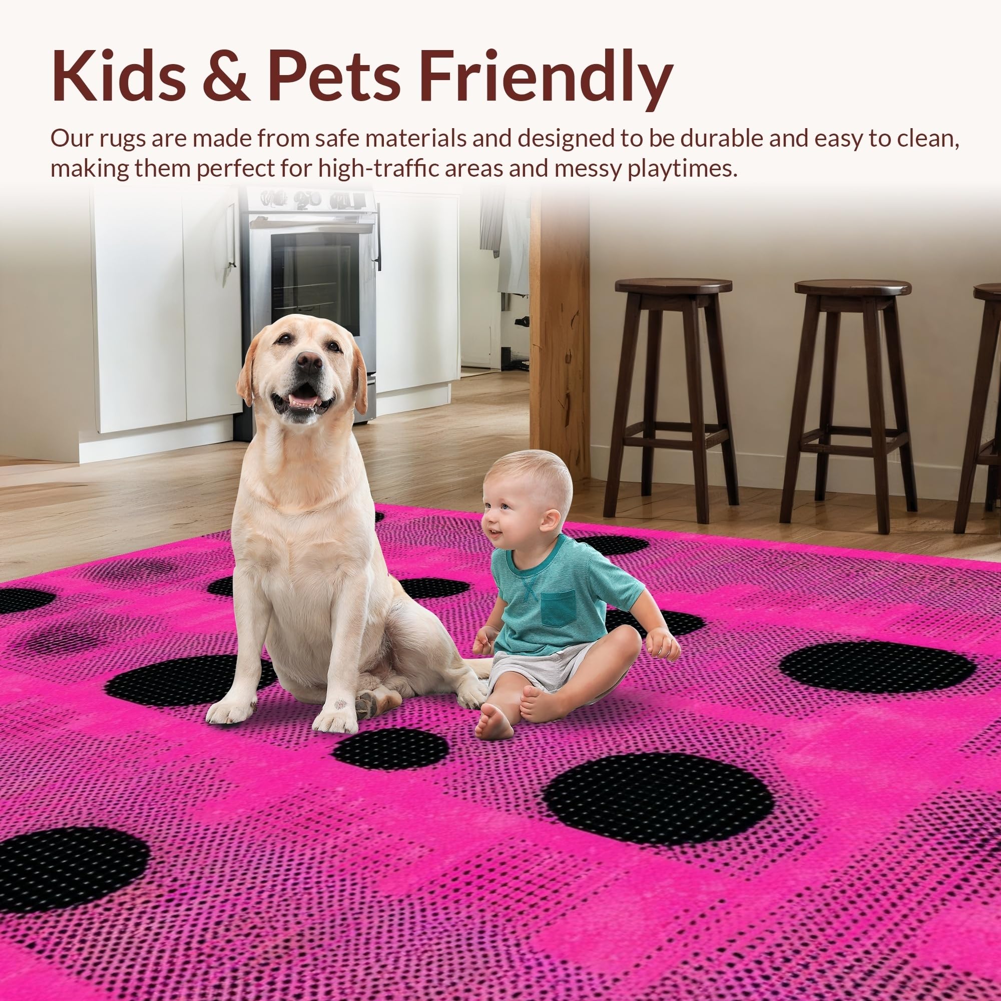 Ultra Soft Area Rug, Non Slip, Stain Resistant, Washable Area Rugs for Living Room, Bedroom, Chic Hot Pink Leopard Aesthetic(Pink) Overview: