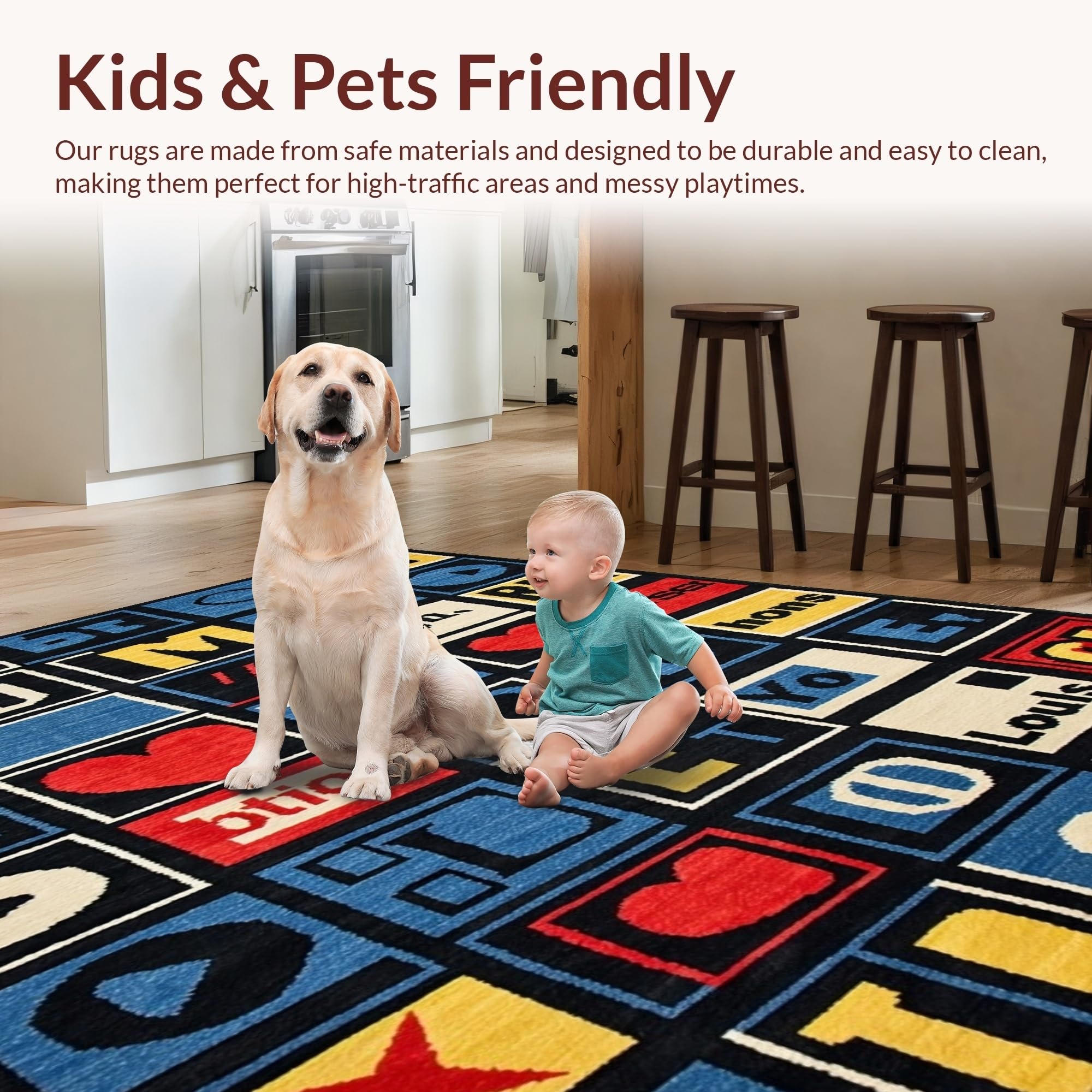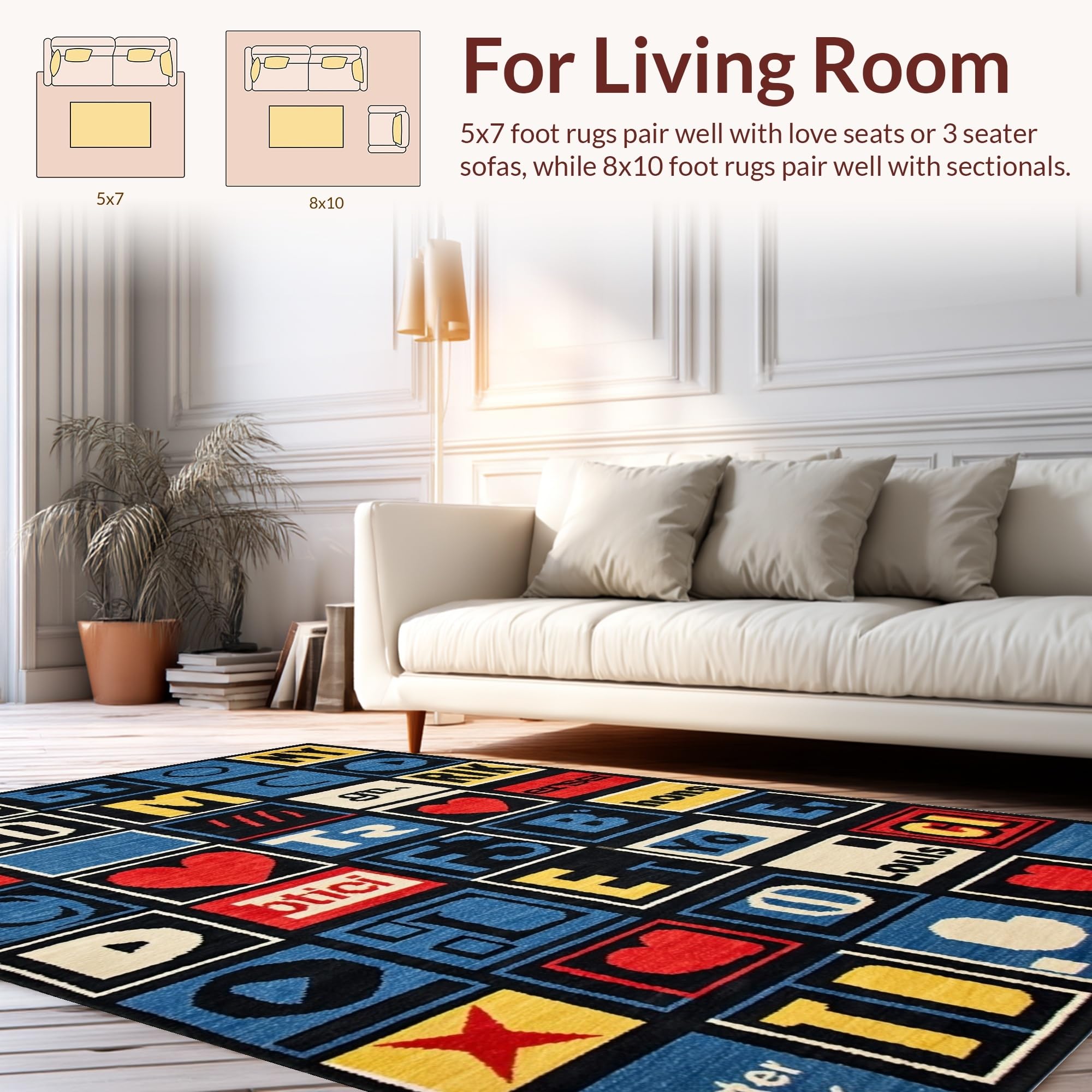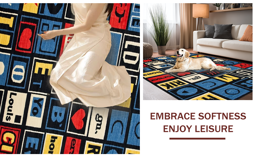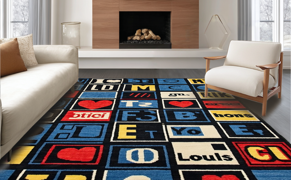 Ultra Soft Area Rug, Non Slip, Stain Resistant, Washable Area Rugs for Living Room, Bedroom, Chic Humorous Monochrome Design(Blue) Overview: