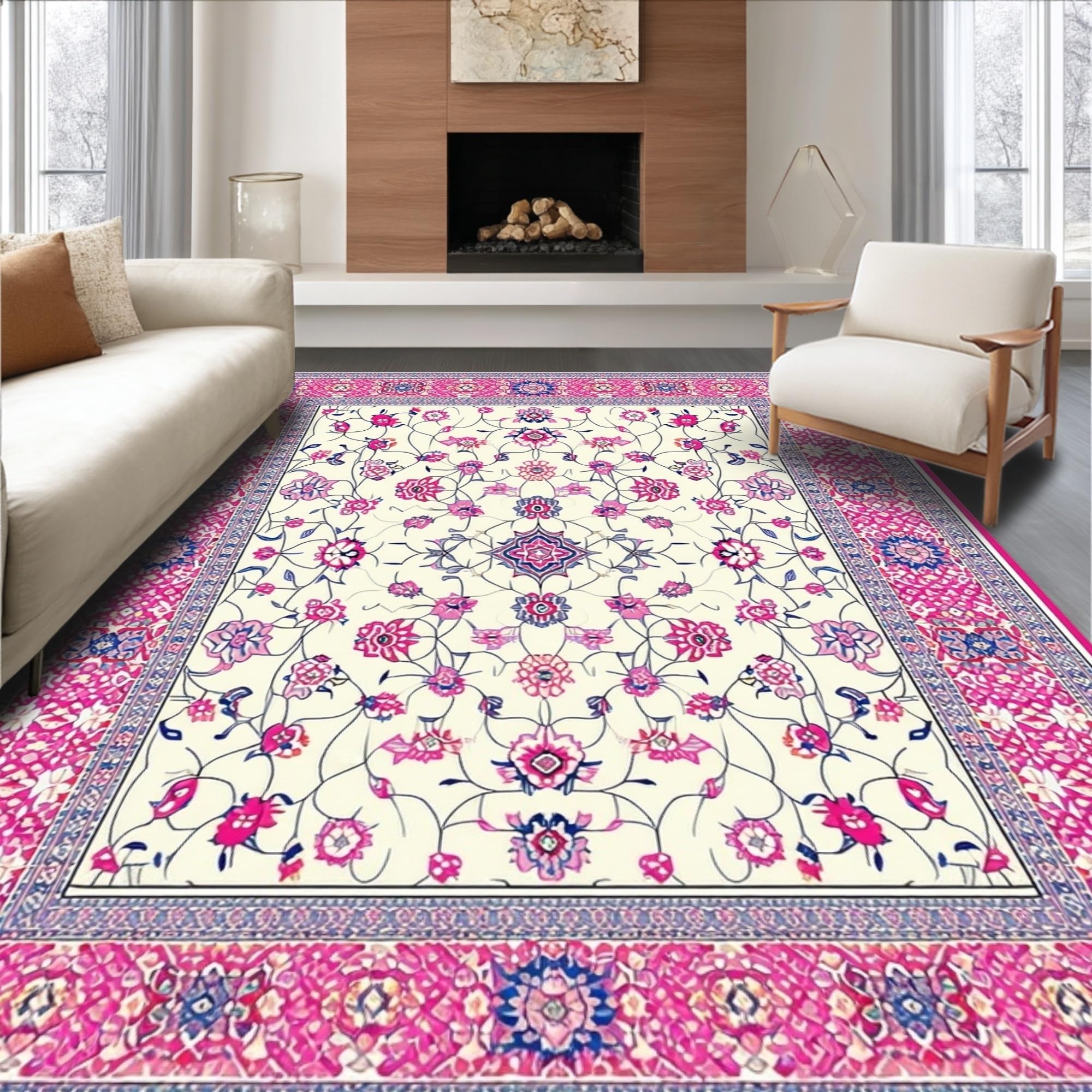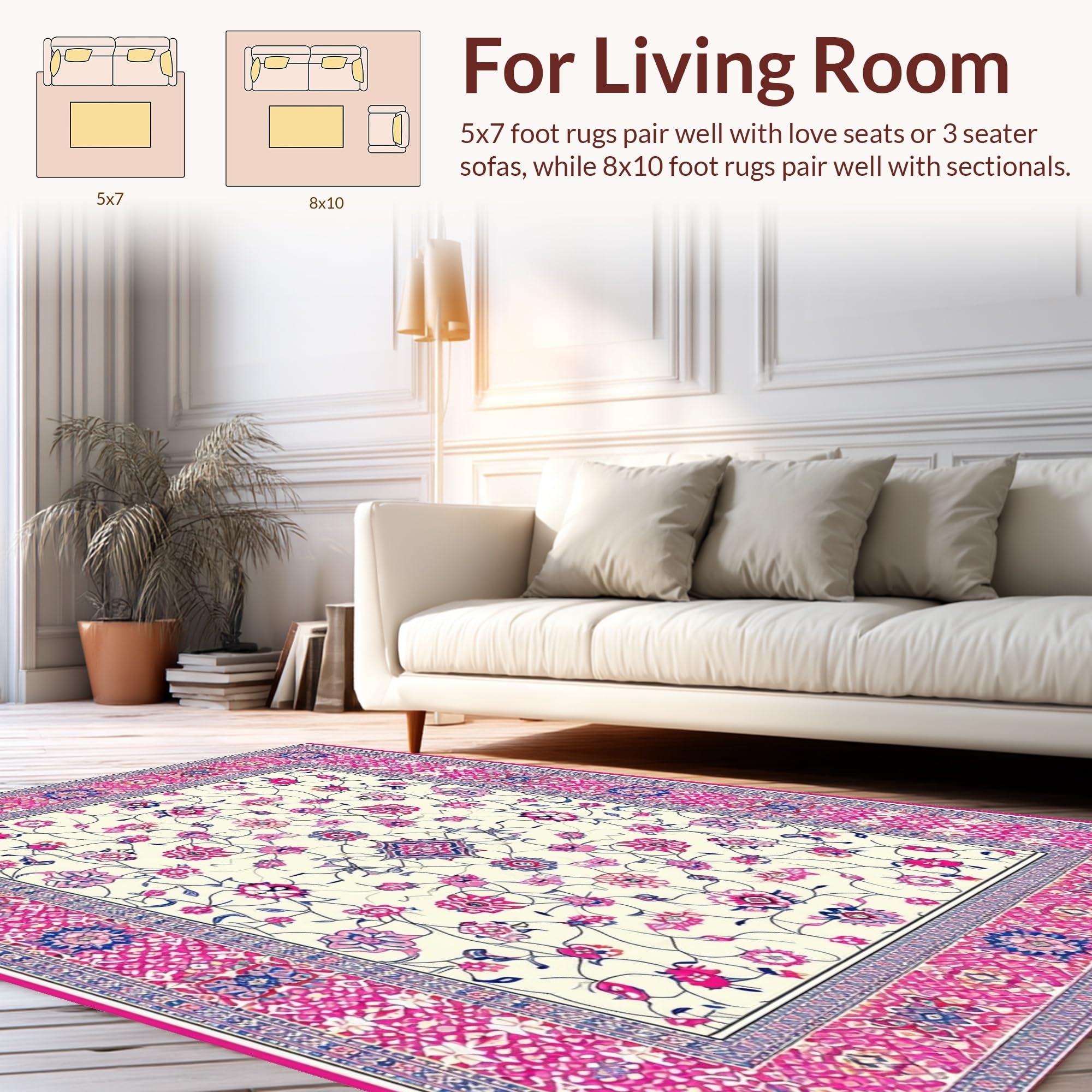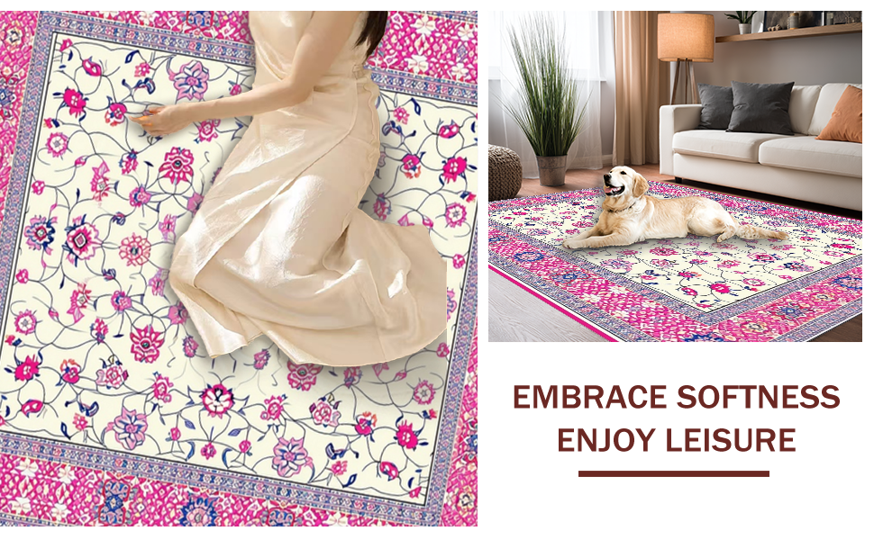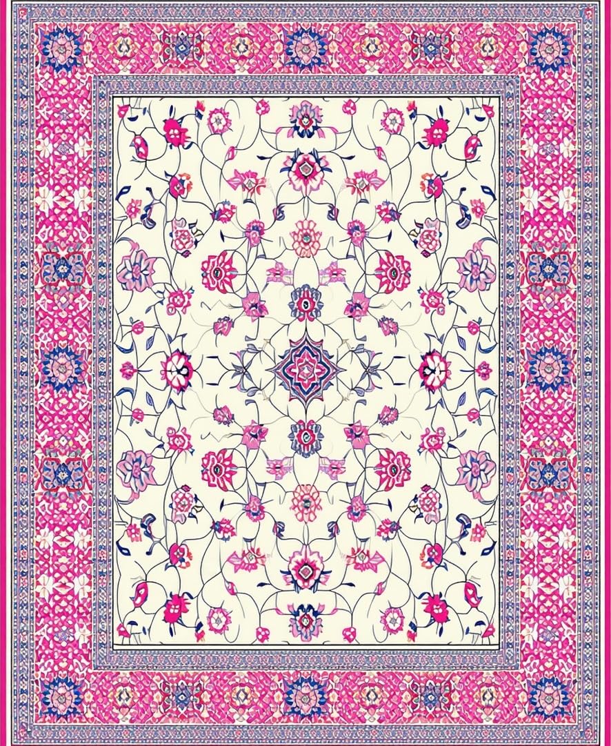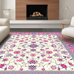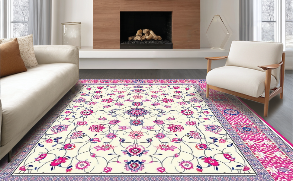 Ultra Soft Area Rug, Non Slip, Stain Resistant, Washable Area Rugs for Living Room, Bedroom, Chic Lattice Floral Arrangement(Ivory) Overview: