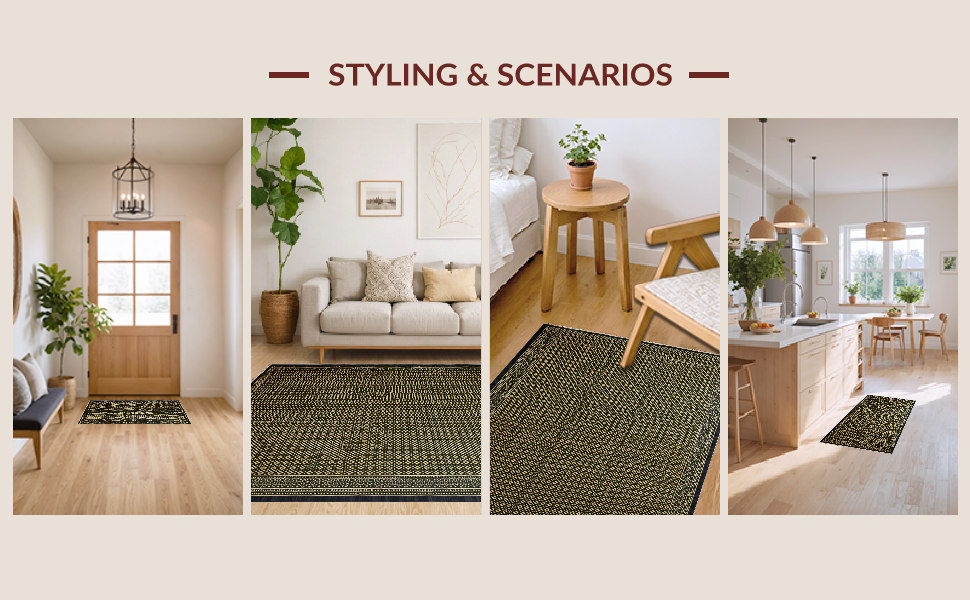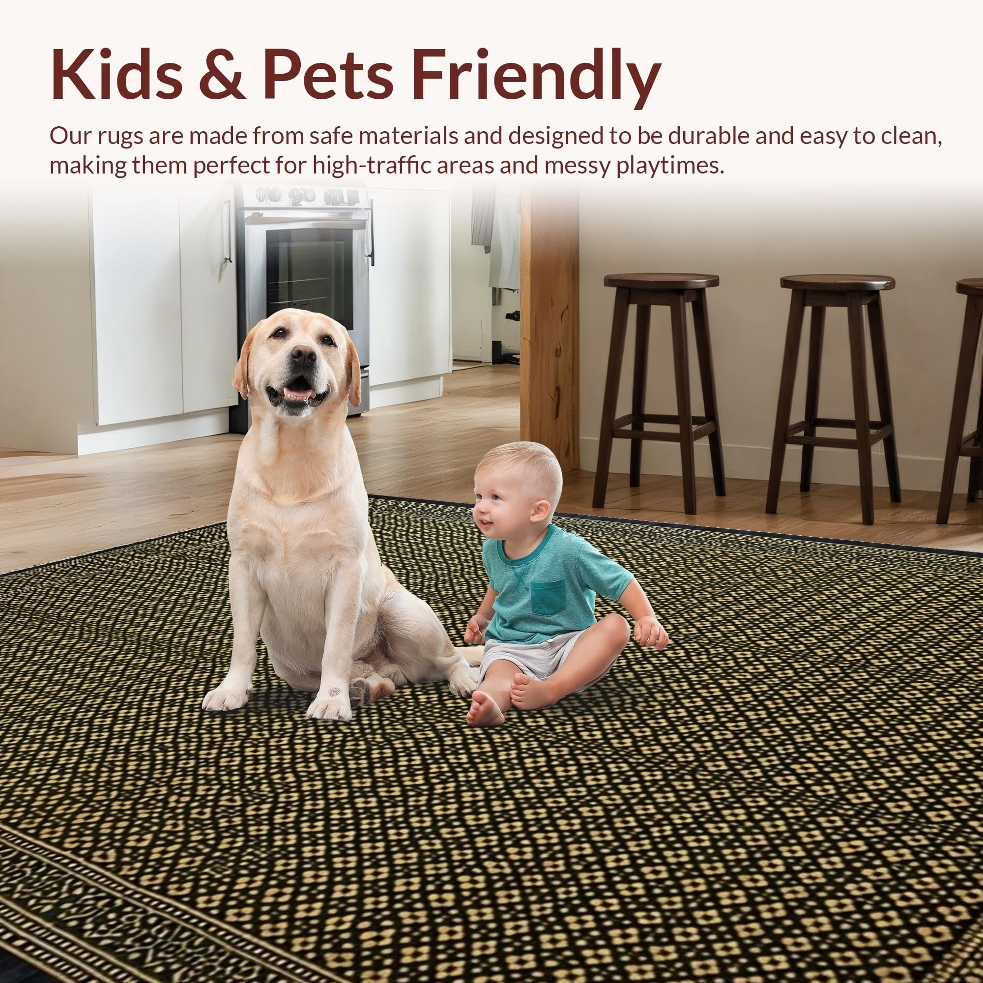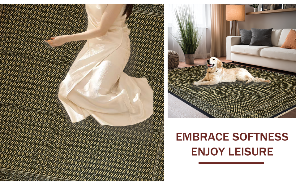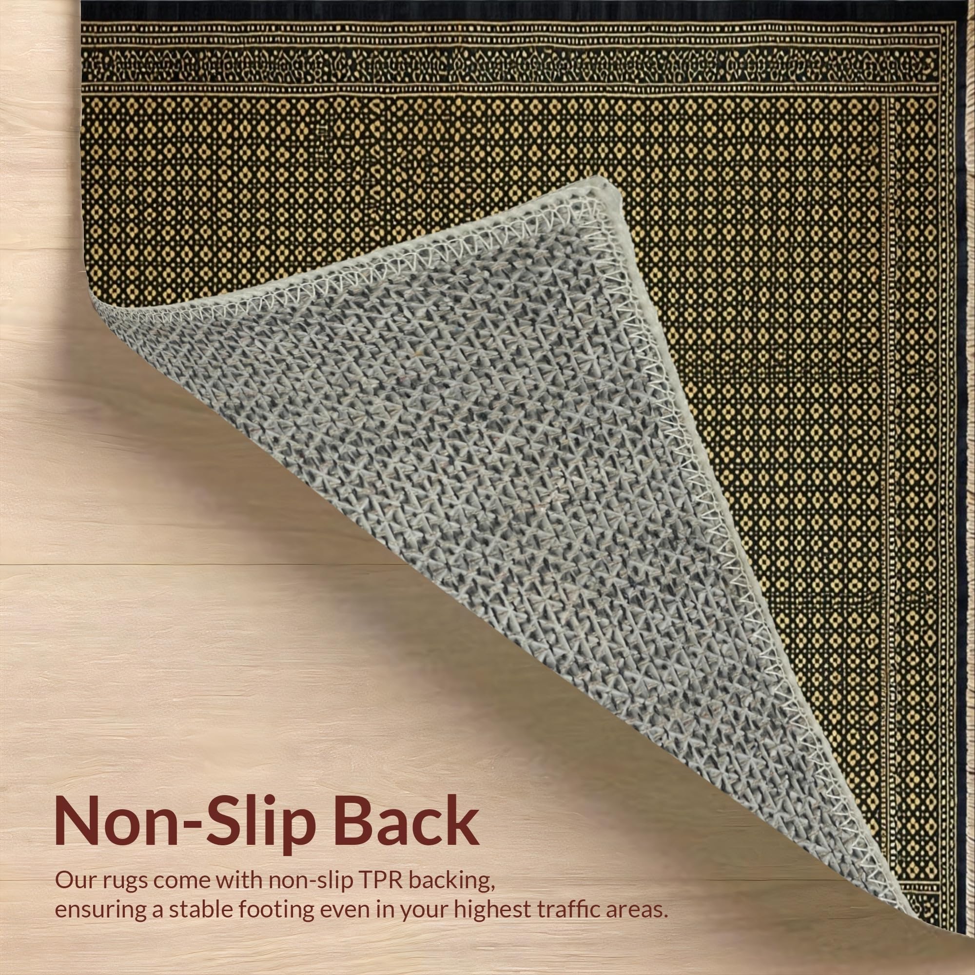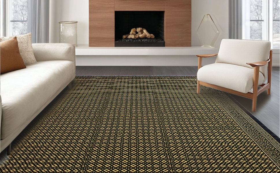 Ultra Soft Area Rug, Non Slip, Stain Resistant, Washable Area Rugs for Living Room, Bedroom, Chic Lattice Gold Geometric Display(Black) Overview: