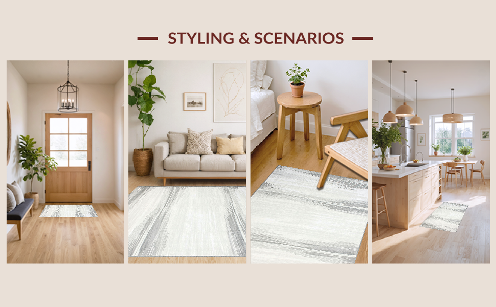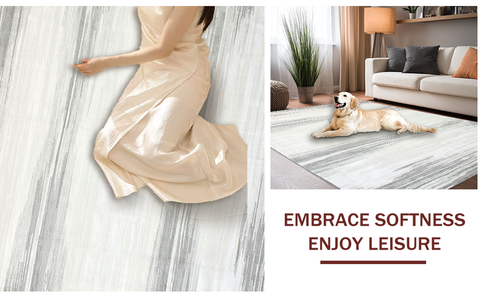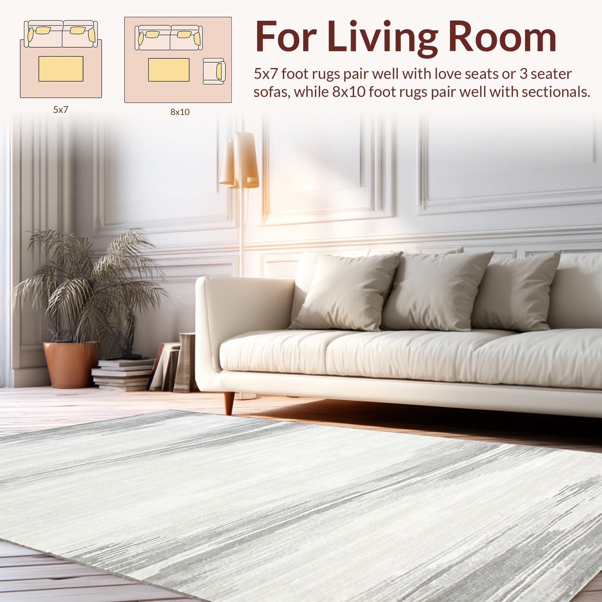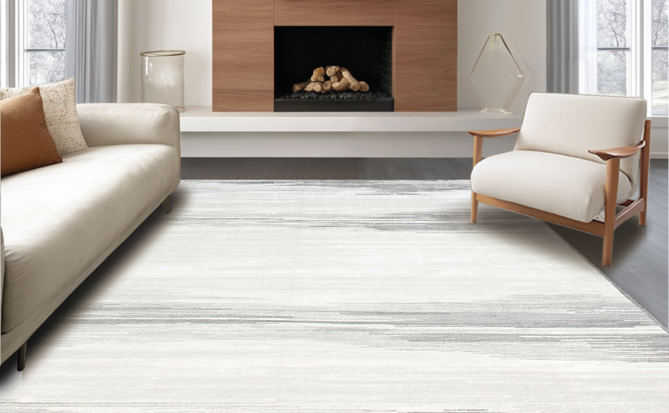 Ultra Soft Area Rug, Non Slip, Stain Resistant, Washable Area Rugs for Living Room, Bedroom, Chic Light Grey Abstract Swirls(Gray) Overview: