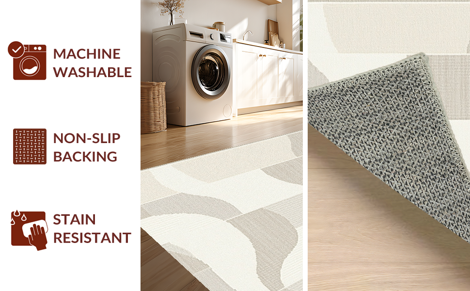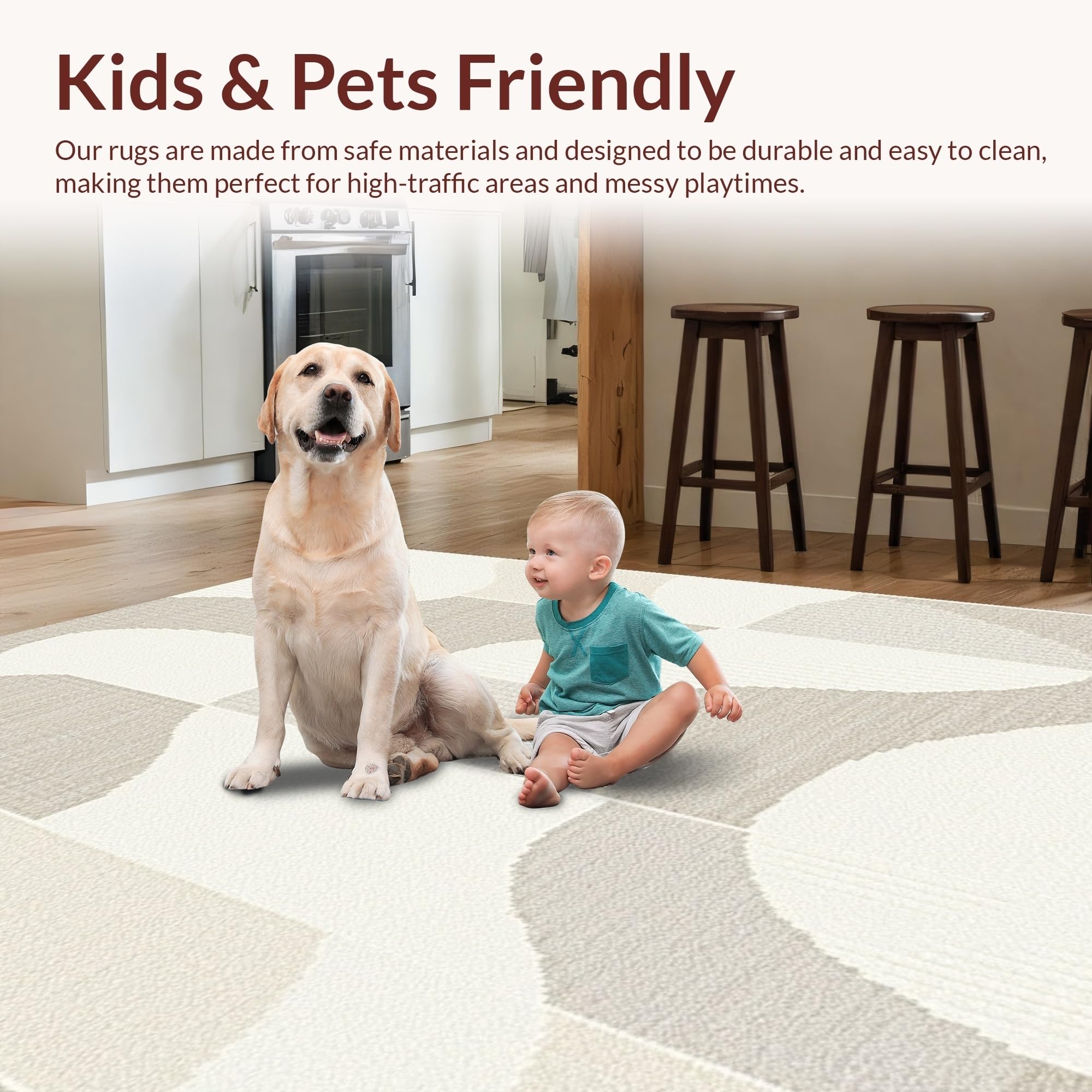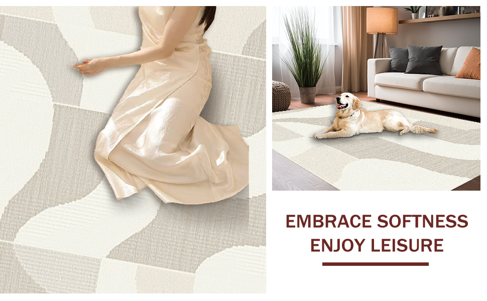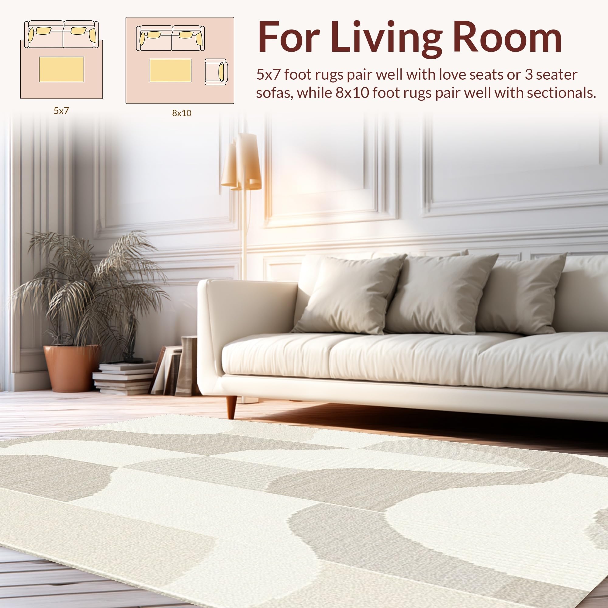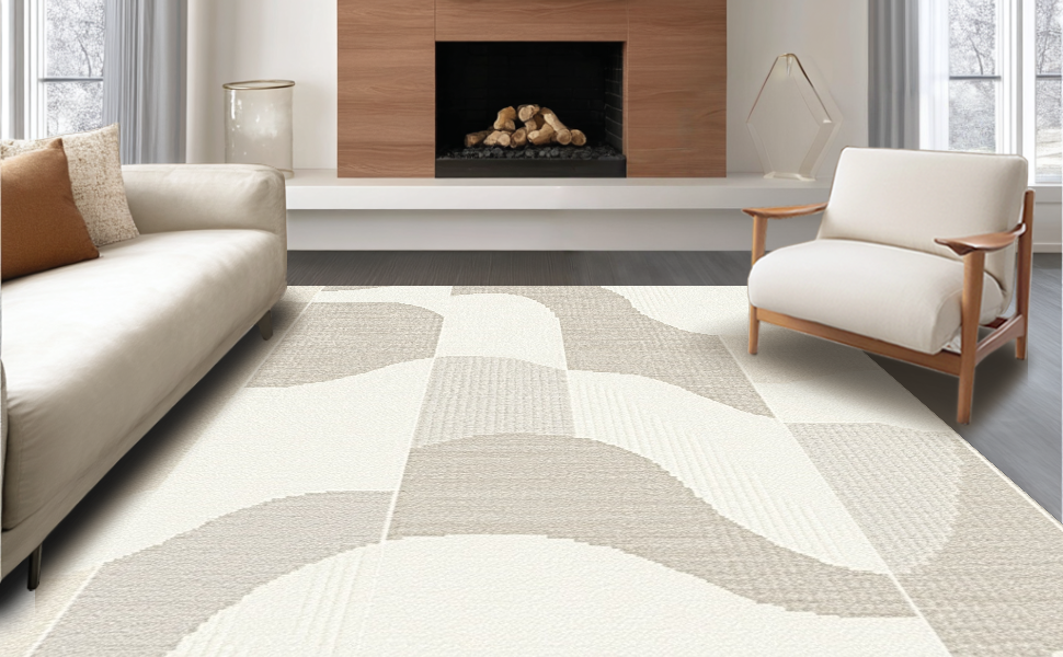 Ultra Soft Area Rug, Non Slip, Stain Resistant, Washable Area Rugs for Living Room, Bedroom, Chic Linear Cream Wave Design(Beige) Overview: