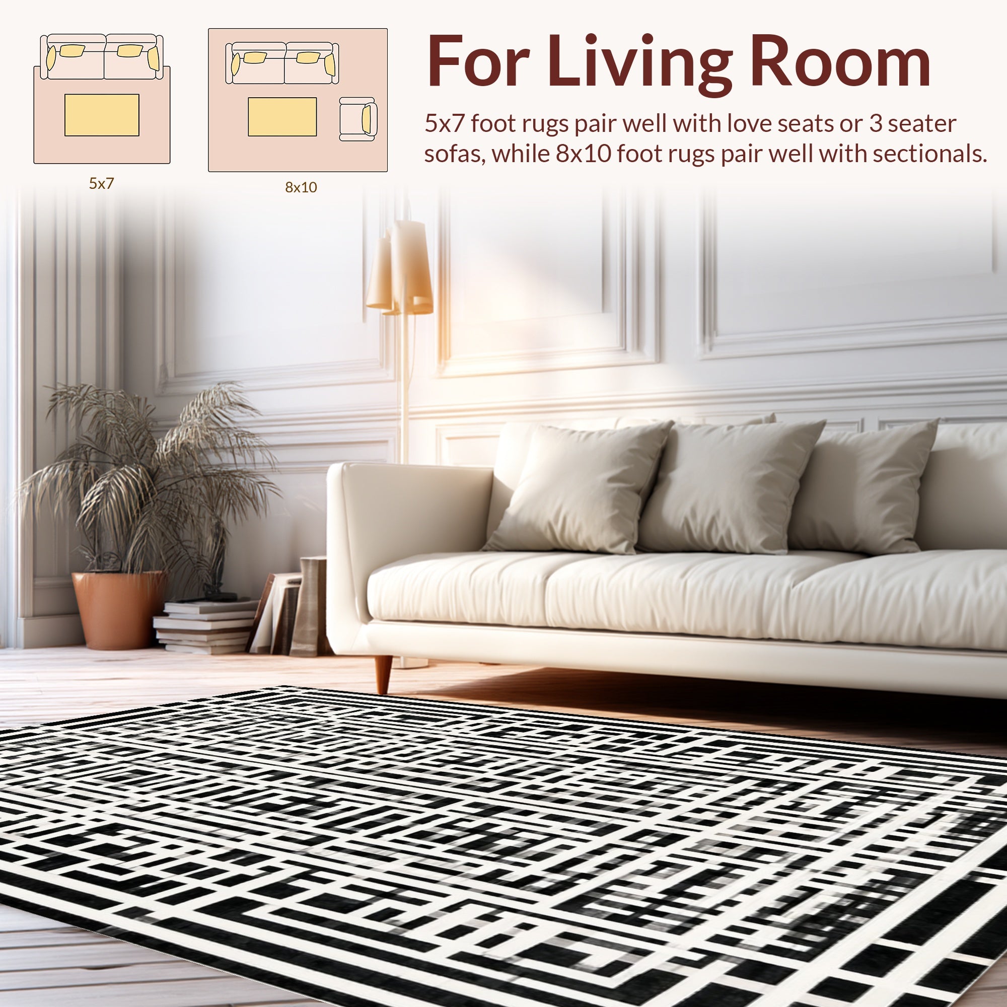 Ultra Soft Area Rug, Non Slip, Stain Resistant, Washable Area Rugs for Living Room, Bedroom, Chic Linear Harmony Rug With Interlocking Stripe Grid And Modern Contrast(White) Overview:
