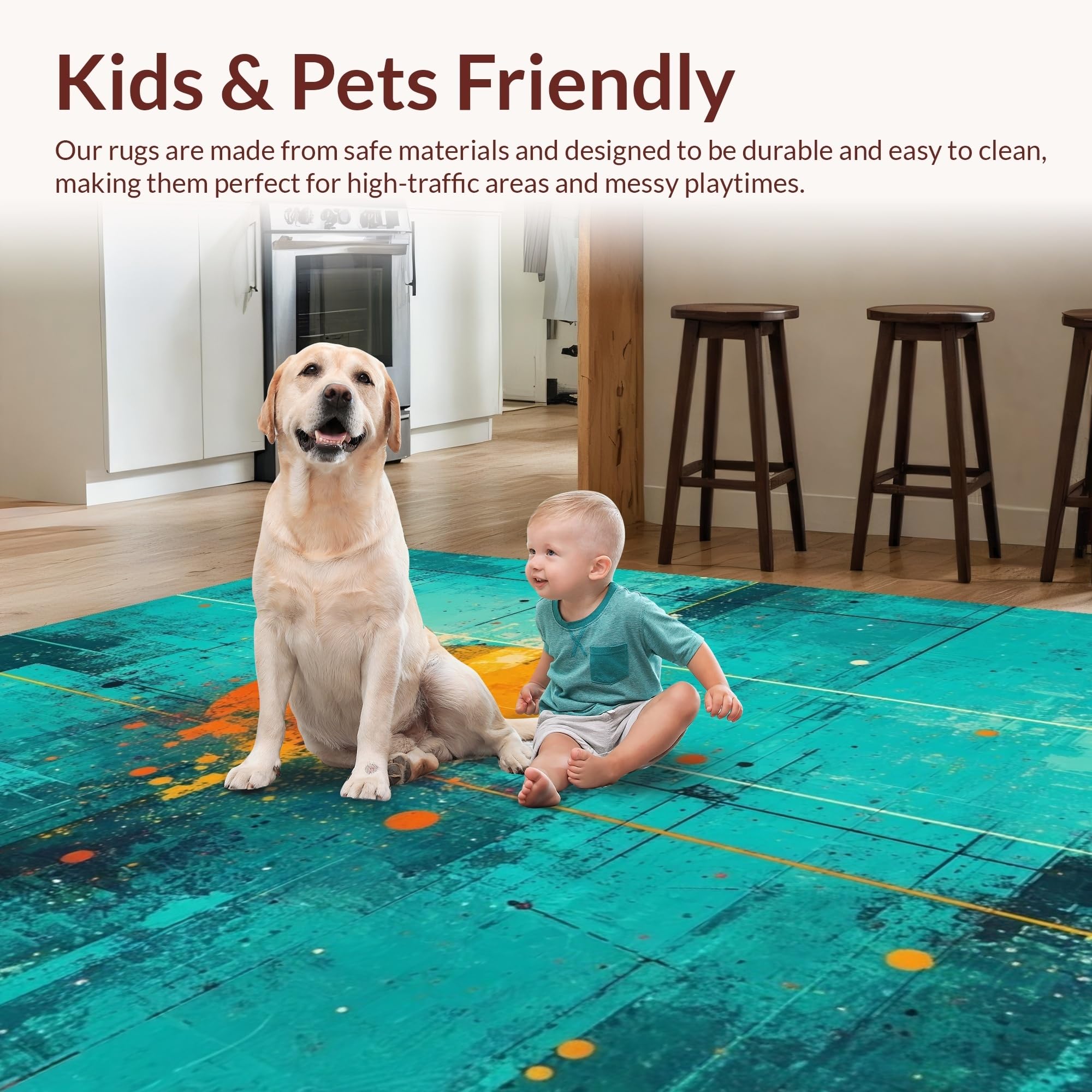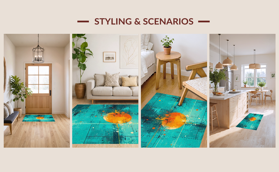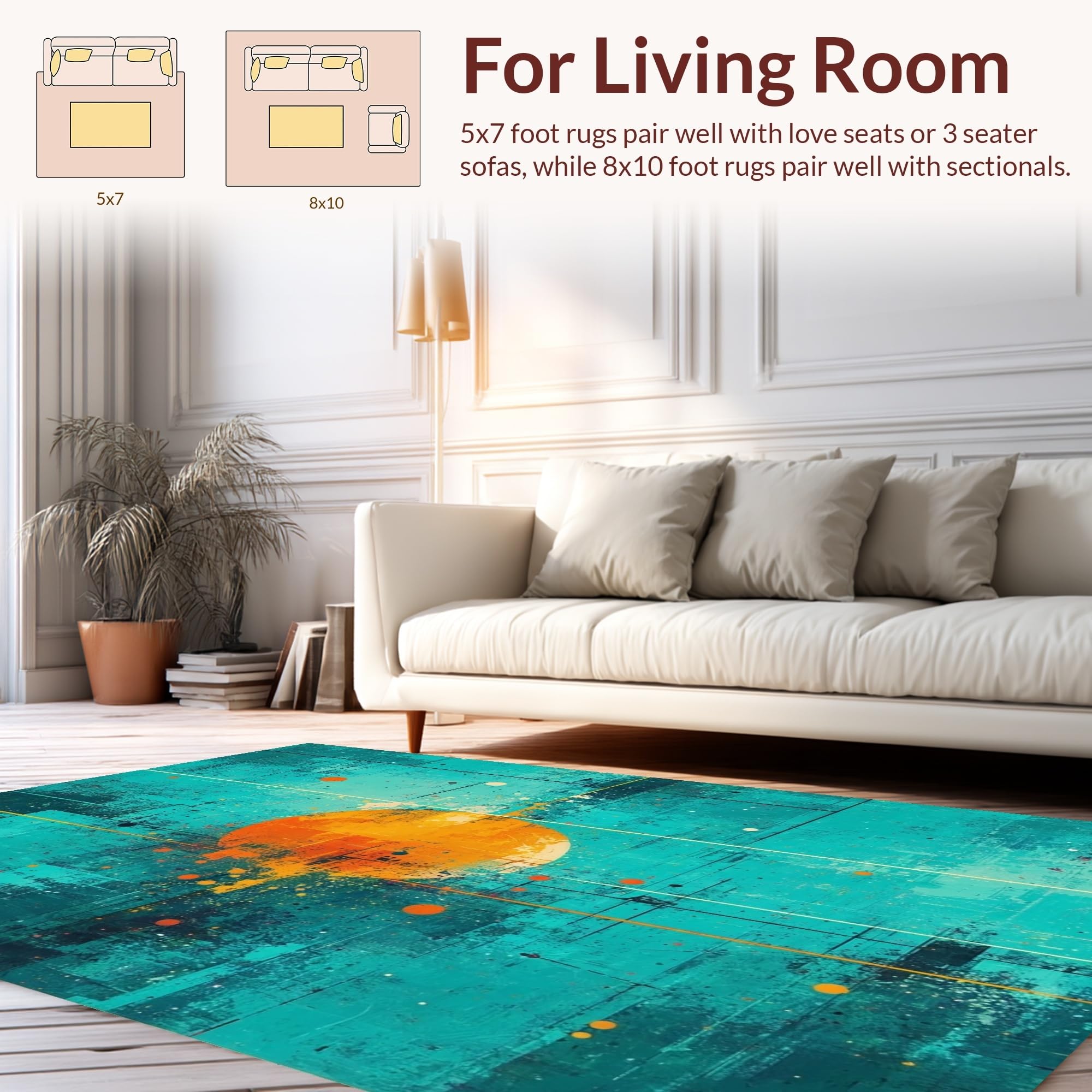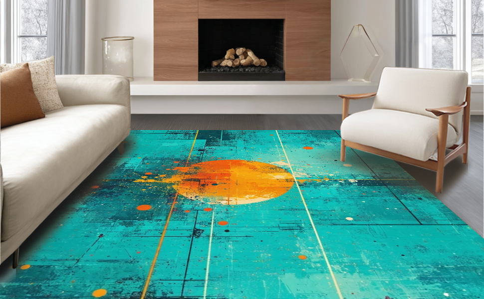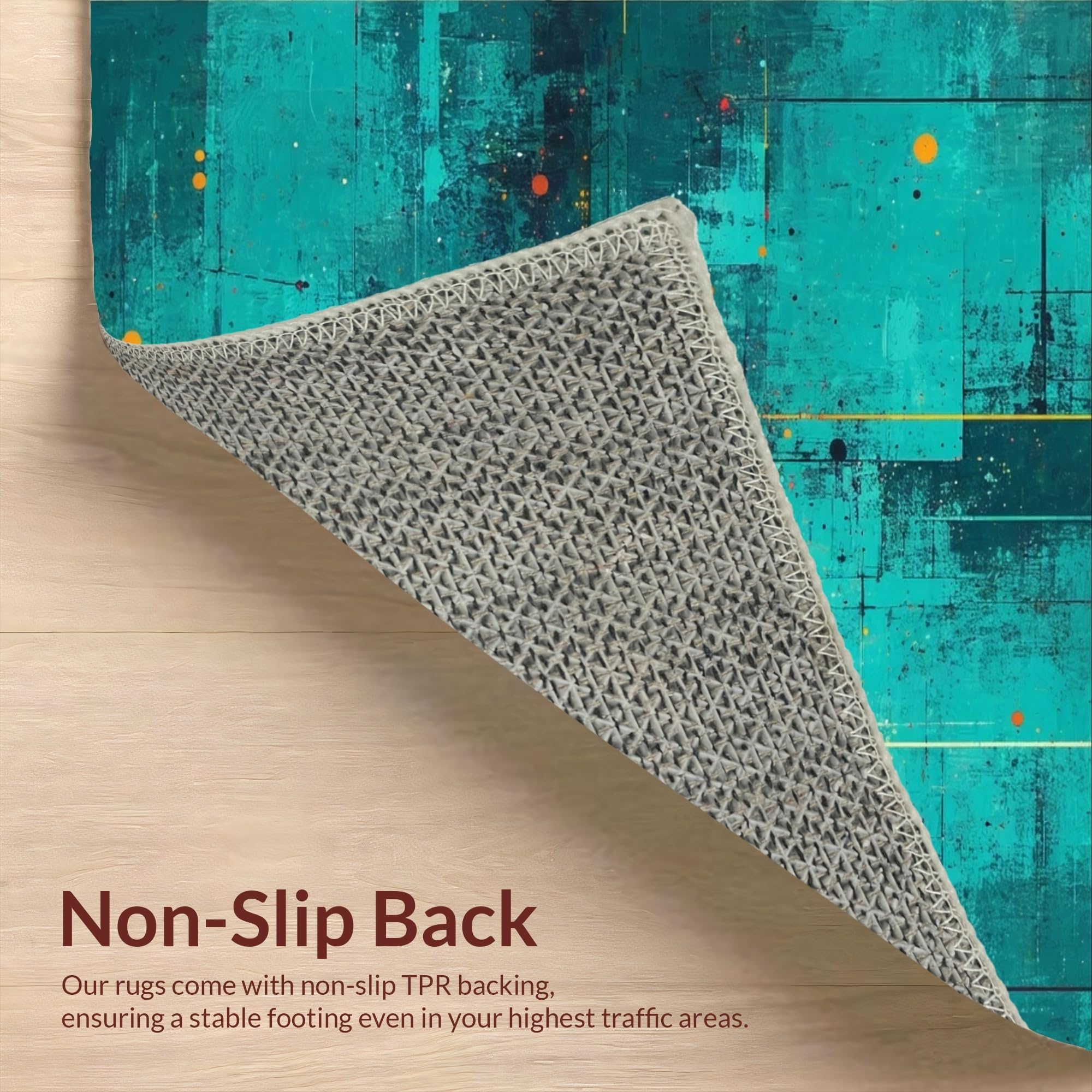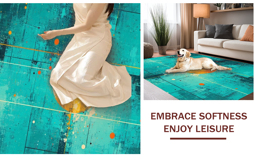 Ultra Soft Area Rug, Non Slip, Stain Resistant, Washable Area Rugs for Living Room, Bedroom, Chic Low-Contrast Color Block(Blue) Overview: