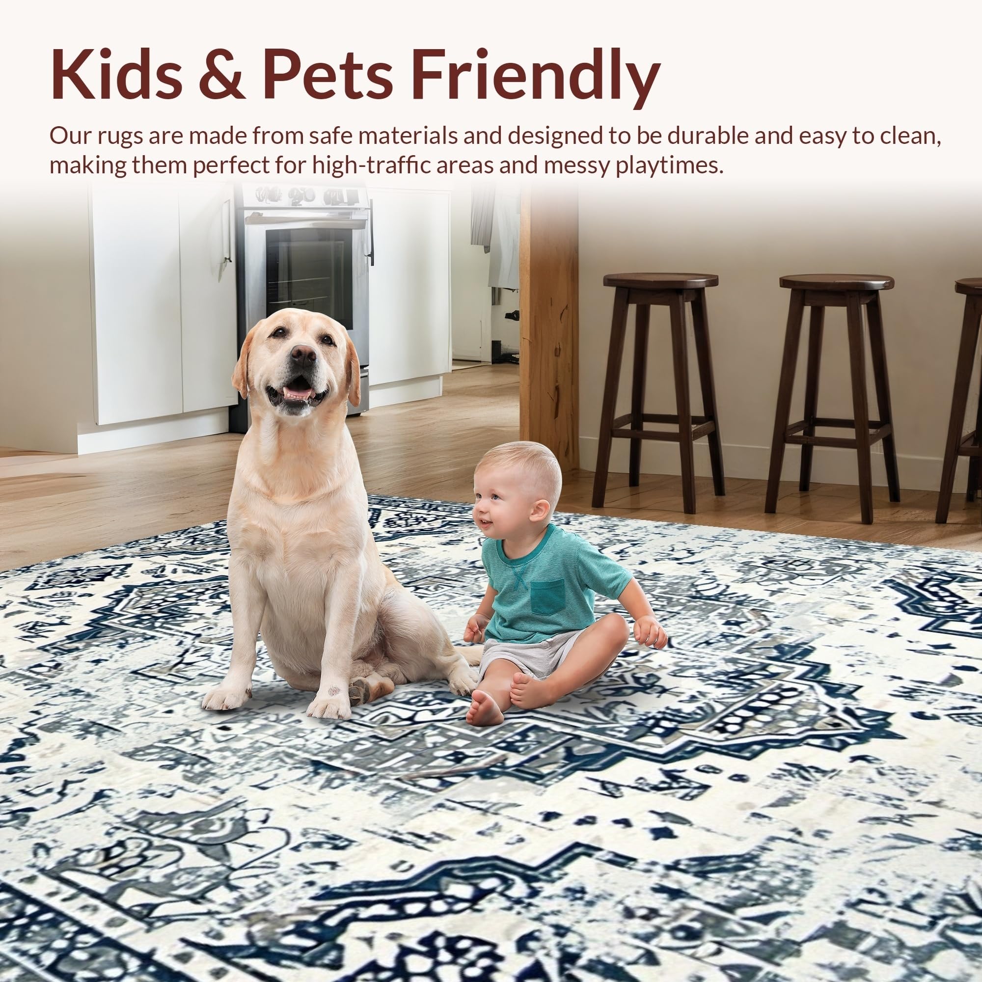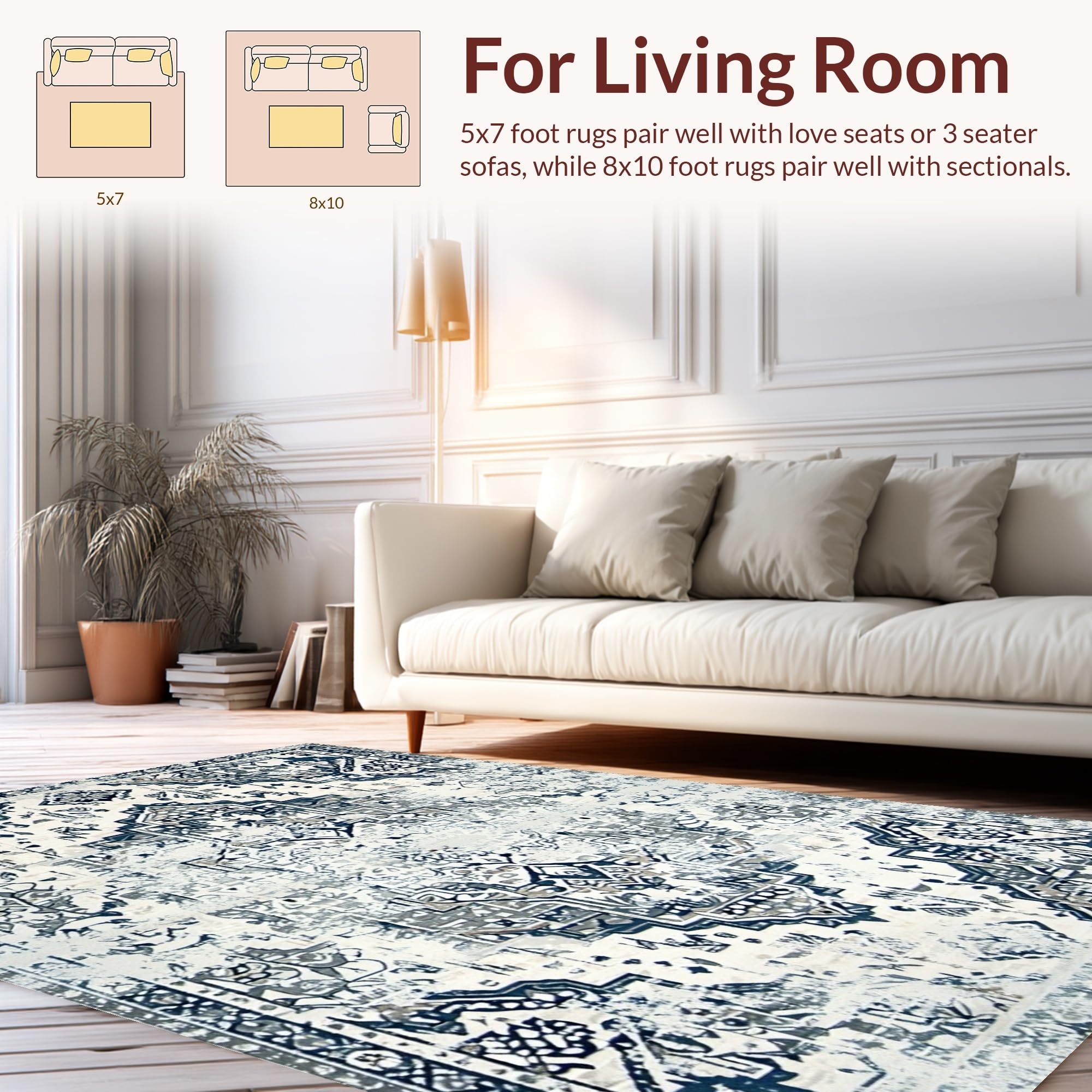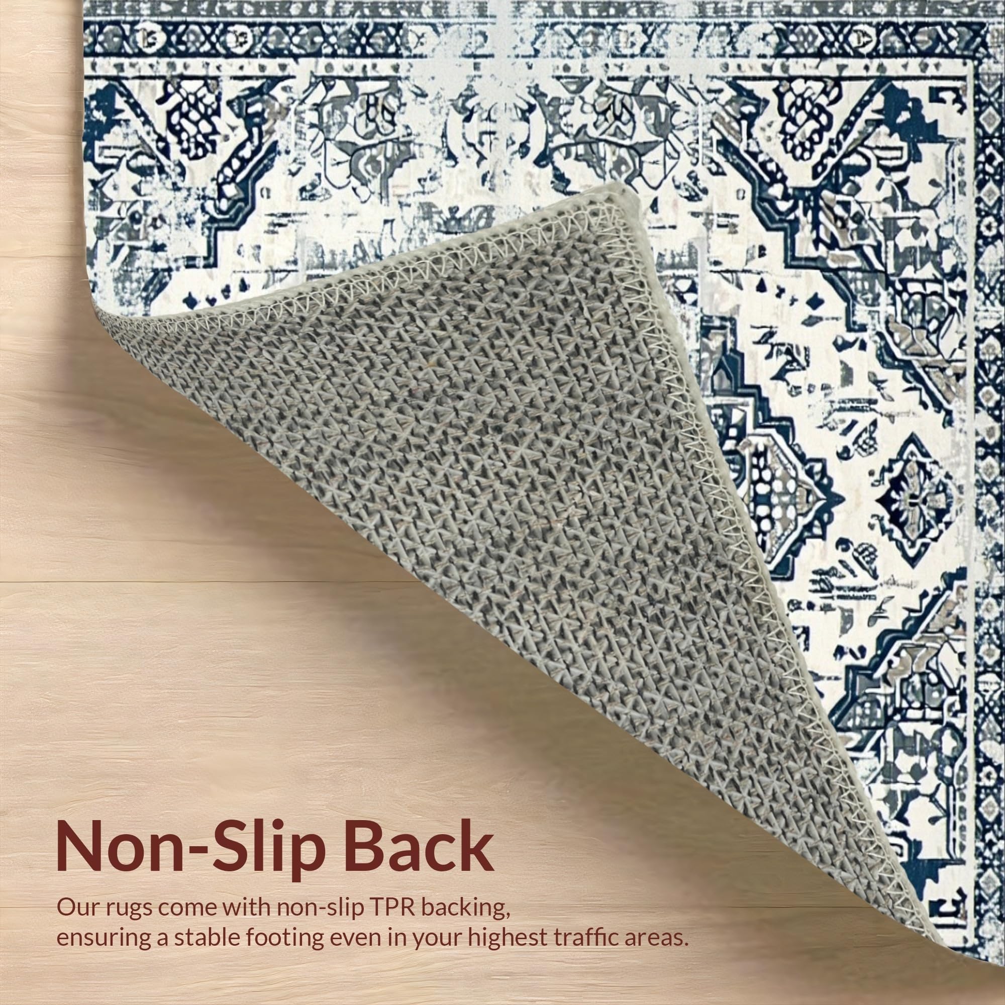 Ultra Soft Area Rug, Non Slip, Stain Resistant, Washable Area Rugs for Living Room, Bedroom, Chic Low-Contrast Distressed Design(Blue) Overview: