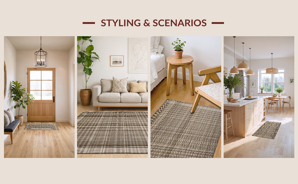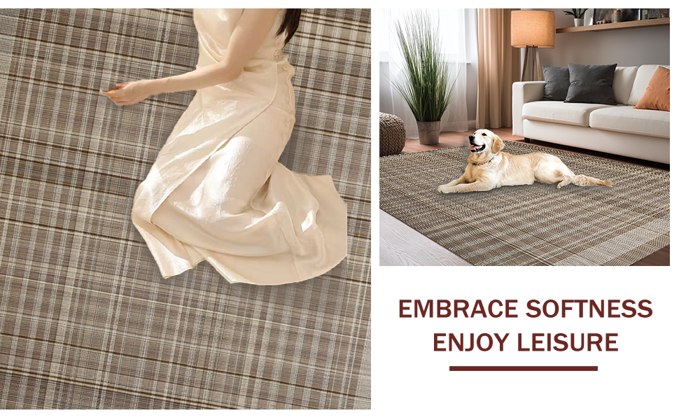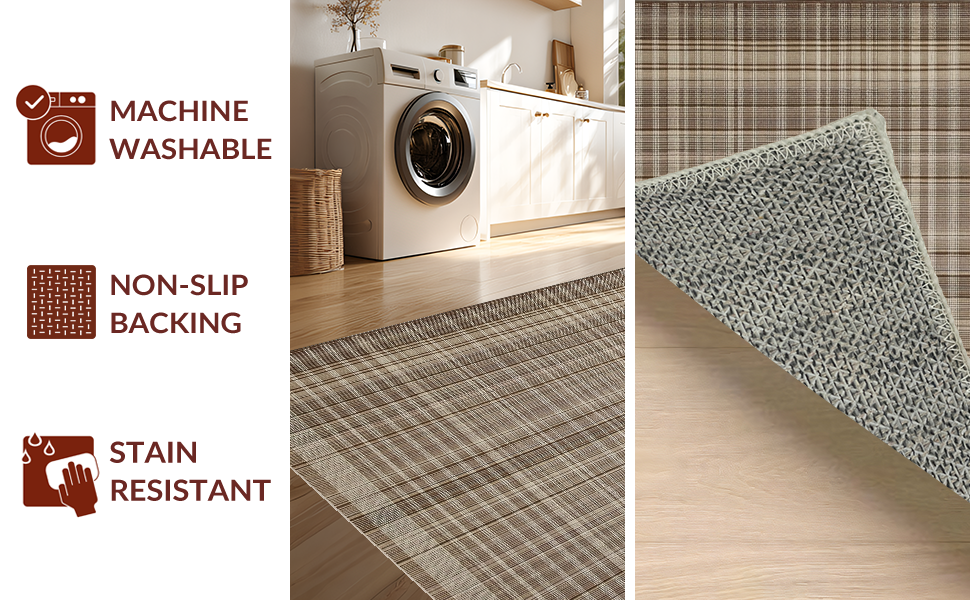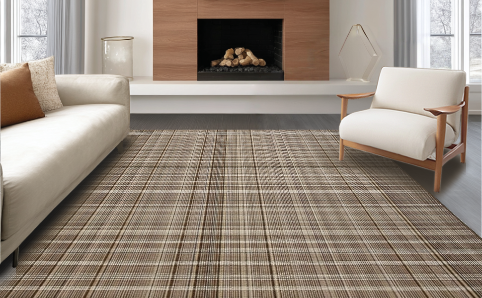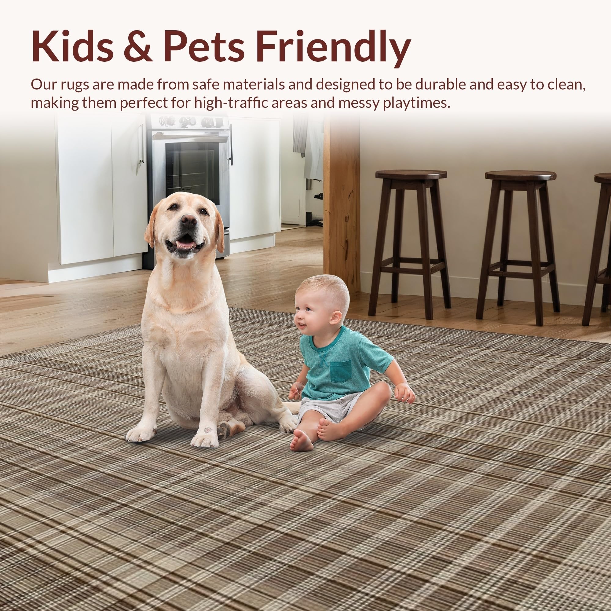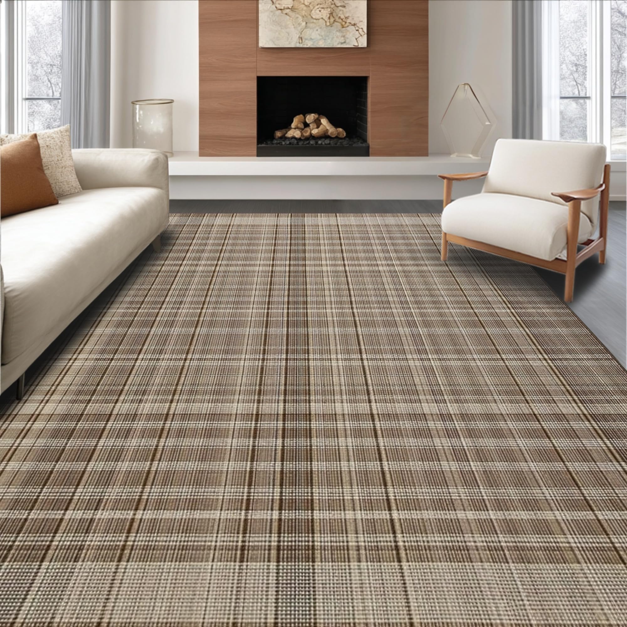 Ultra Soft Area Rug, Non Slip, Stain Resistant, Washable Area Rugs for Living Room, Bedroom, Chic Low Pile Checkerboard Aesthetic(Beige) Overview: