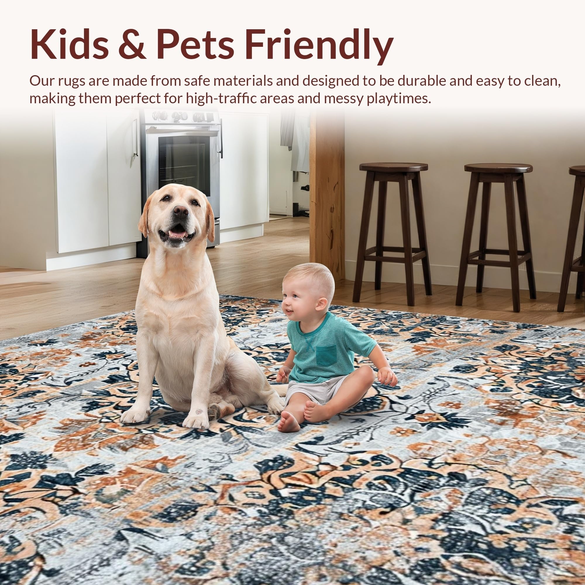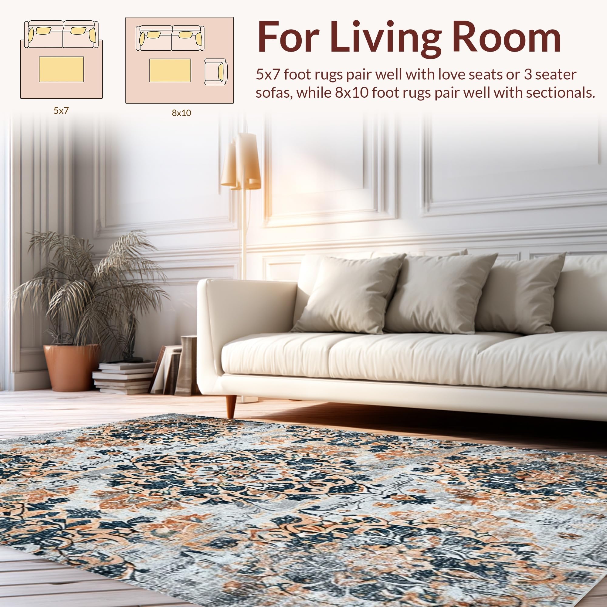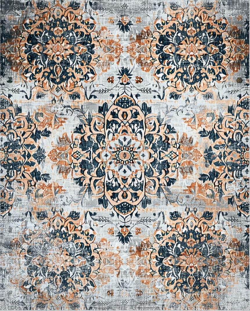 Ultra Soft Area Rug, Non Slip, Stain Resistant, Washable Area Rugs for Living Room, Bedroom, Chic Low-Pile Ogee Pattern(Gray) Overview: