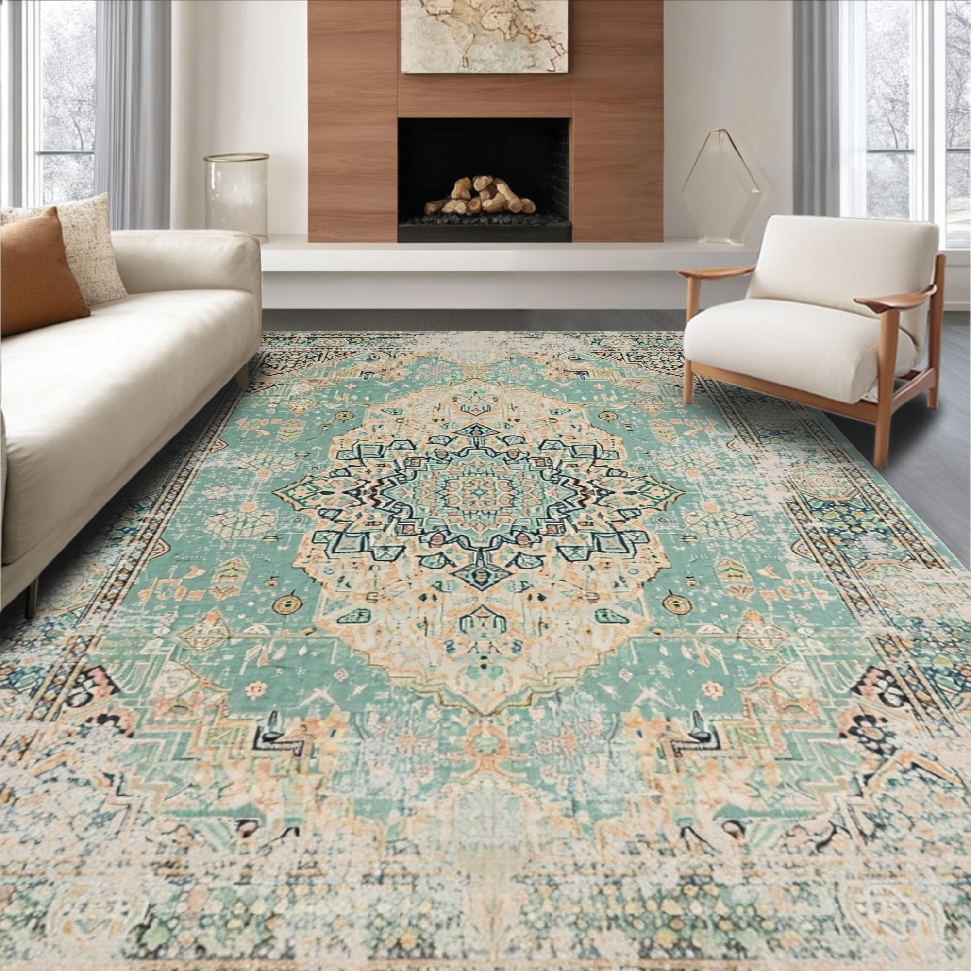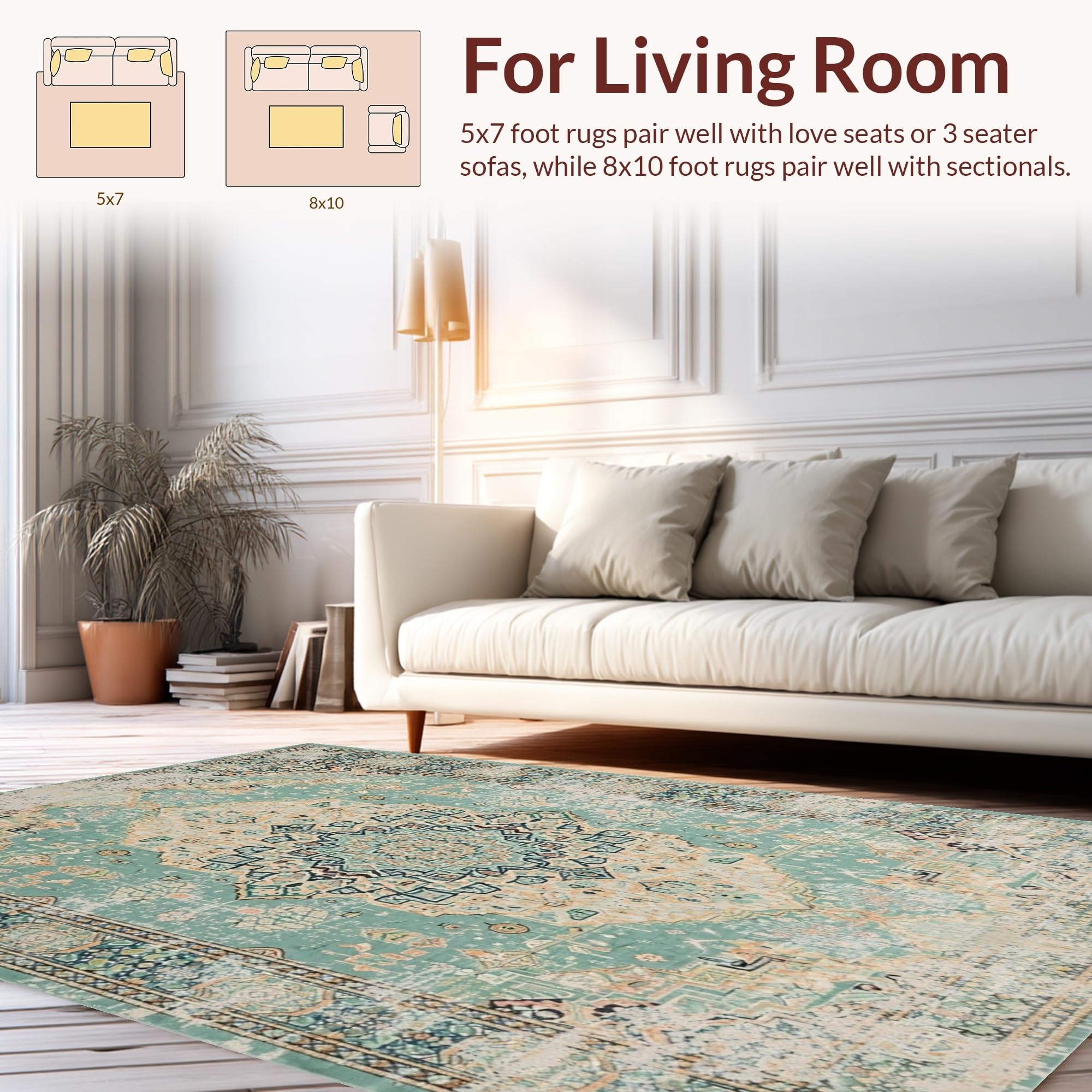 Ultra Soft Area Rug, Non Slip, Stain Resistant, Washable Area Rugs for Living Room, Bedroom, Chic Low Pile Transitional Design(Beige) Overview: