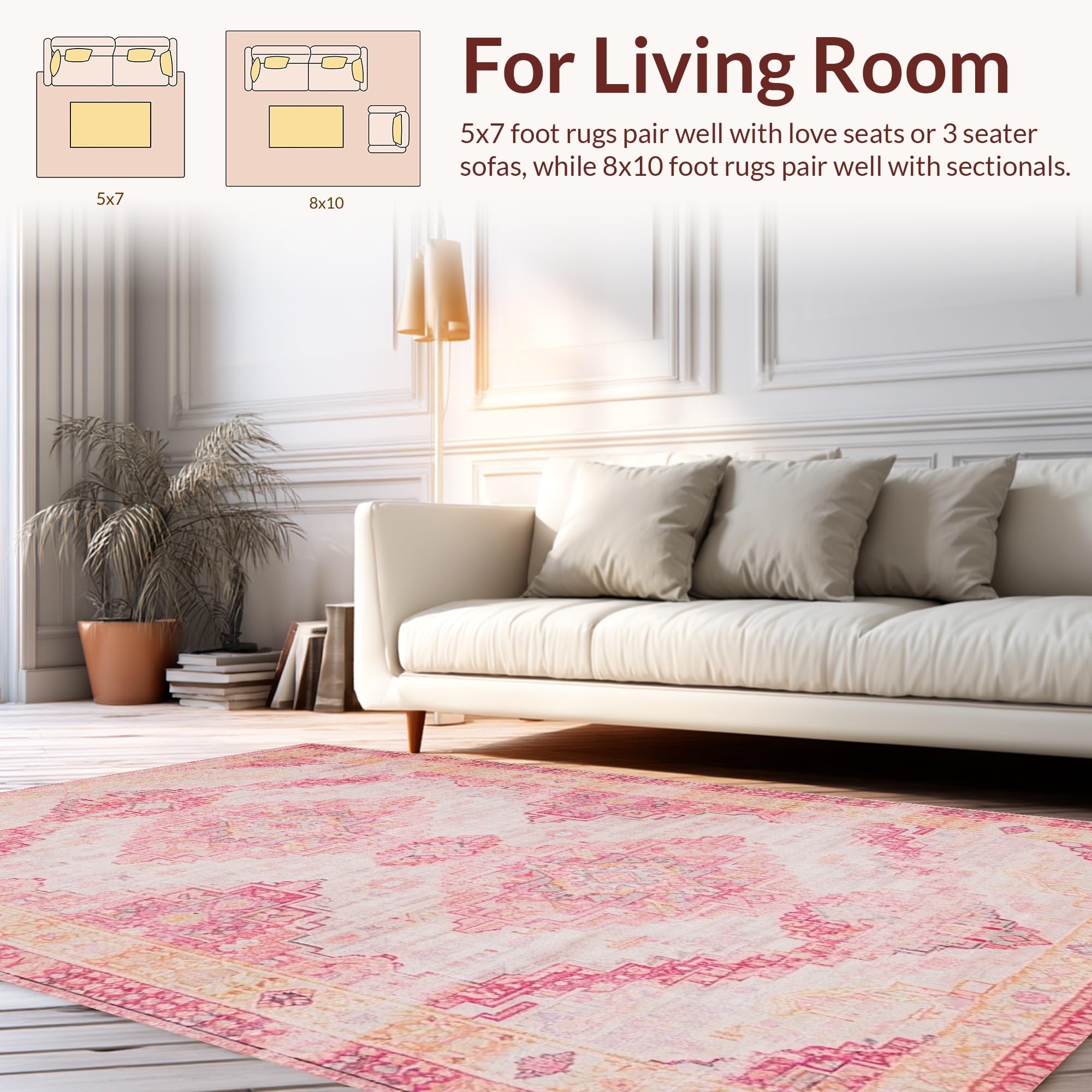 Ultra Soft Area Rug, Non Slip, Stain Resistant, Washable Area Rugs for Living Room, Bedroom, Chic Luxurious Furry Texture(Pink) Overview: