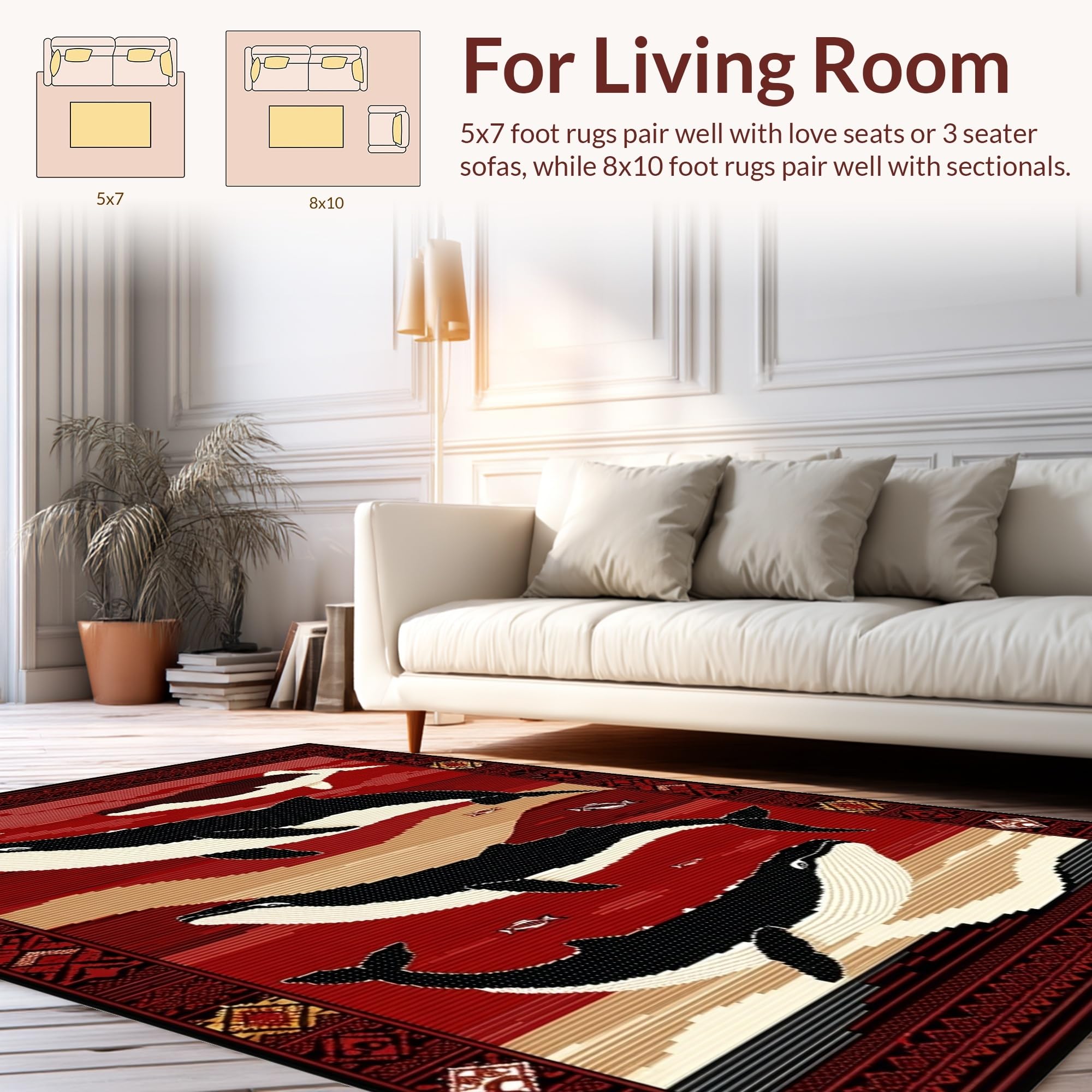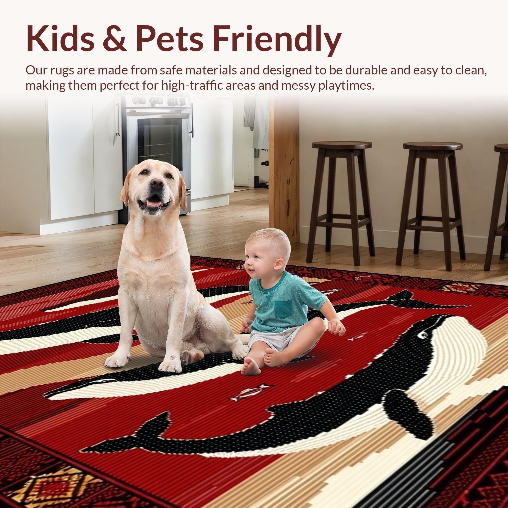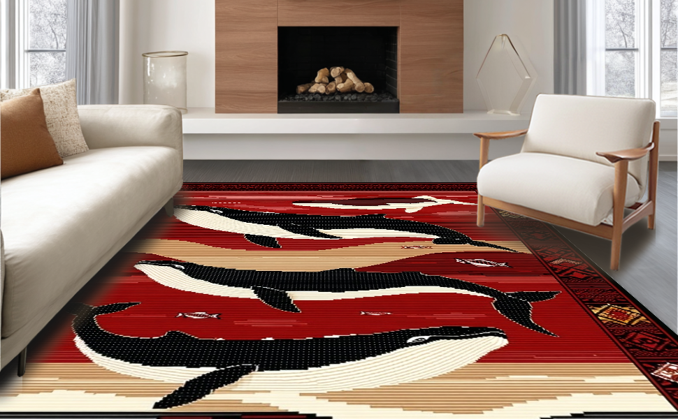 Ultra Soft Area Rug, Non Slip, Stain Resistant, Washable Area Rugs for Living Room, Bedroom, Chic Marine Life Visual(Red) Overview: