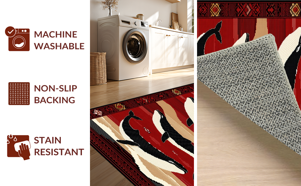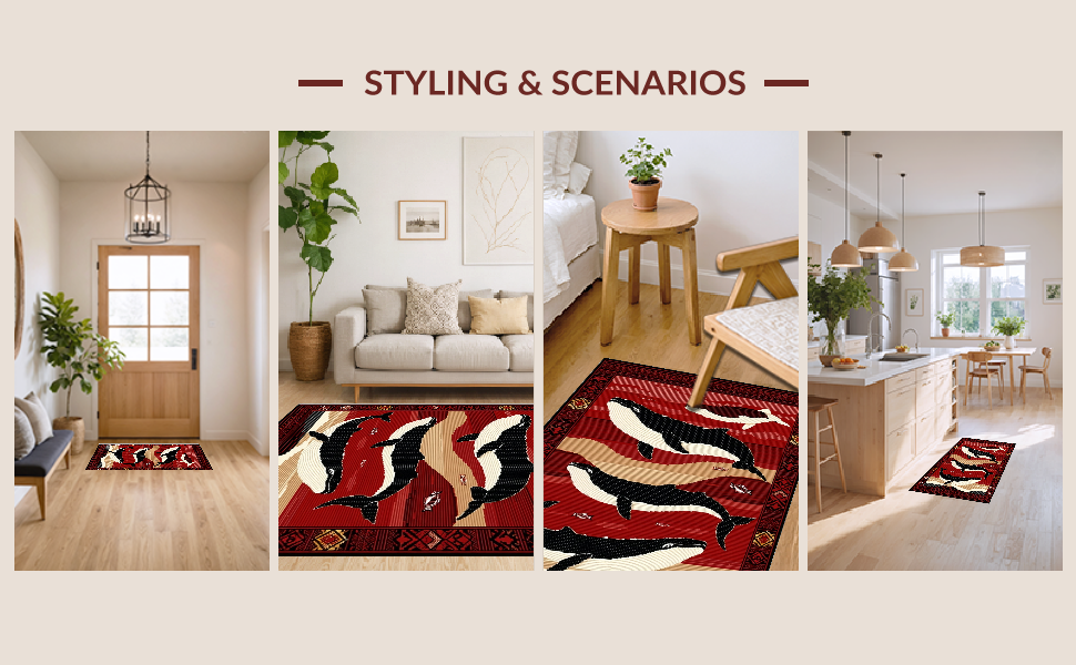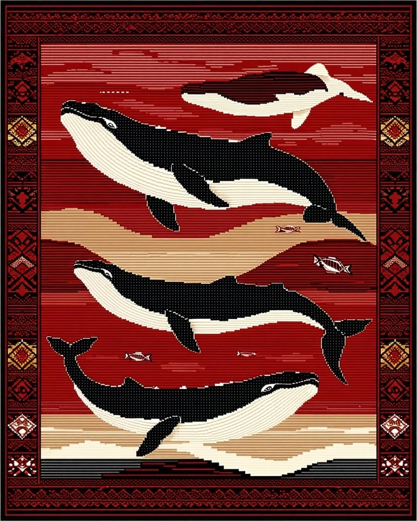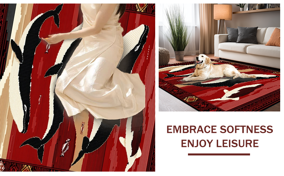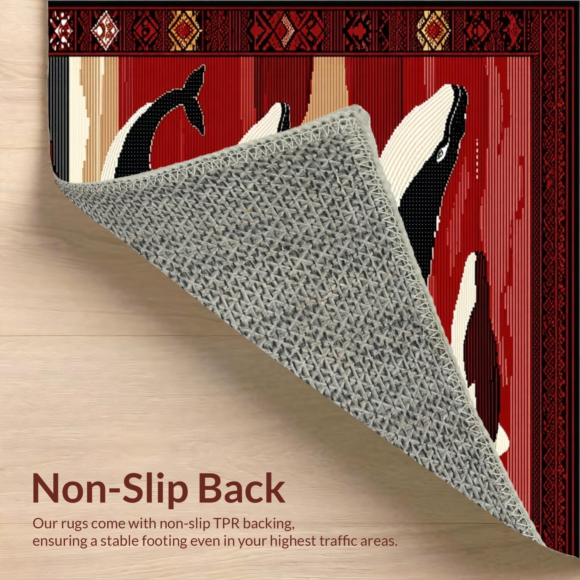 Ultra Soft Area Rug, Non Slip, Stain Resistant, Washable Area Rugs for Living Room, Bedroom, Chic Marine Life Visual(Red) Overview: