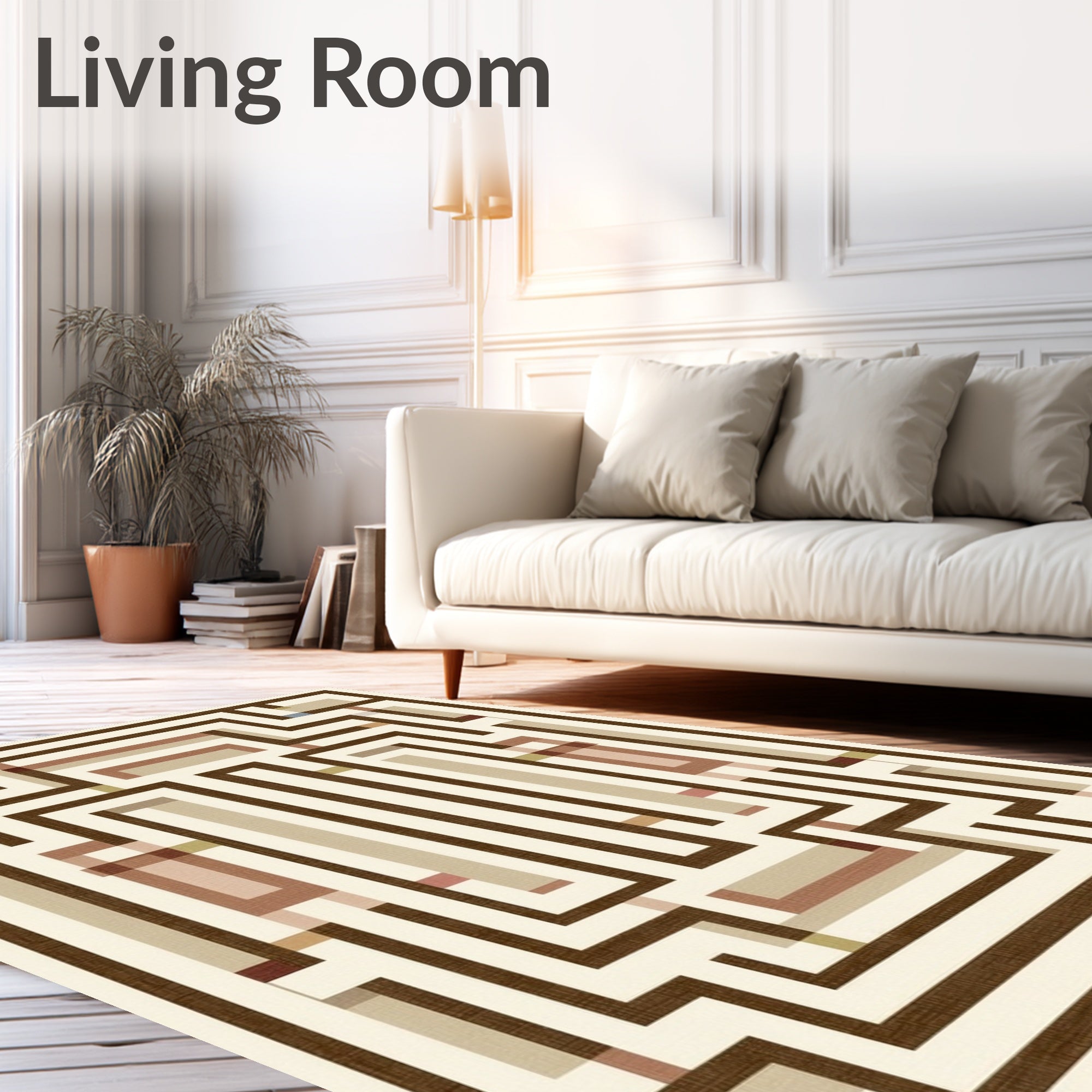 Ultra Soft Area Rug, Non Slip, Stain Resistant, Washable Area Rugs for Living Room, Bedroom, Chic Maze Inspired Area Featuring Layered Rectangular(Beige) Overview: