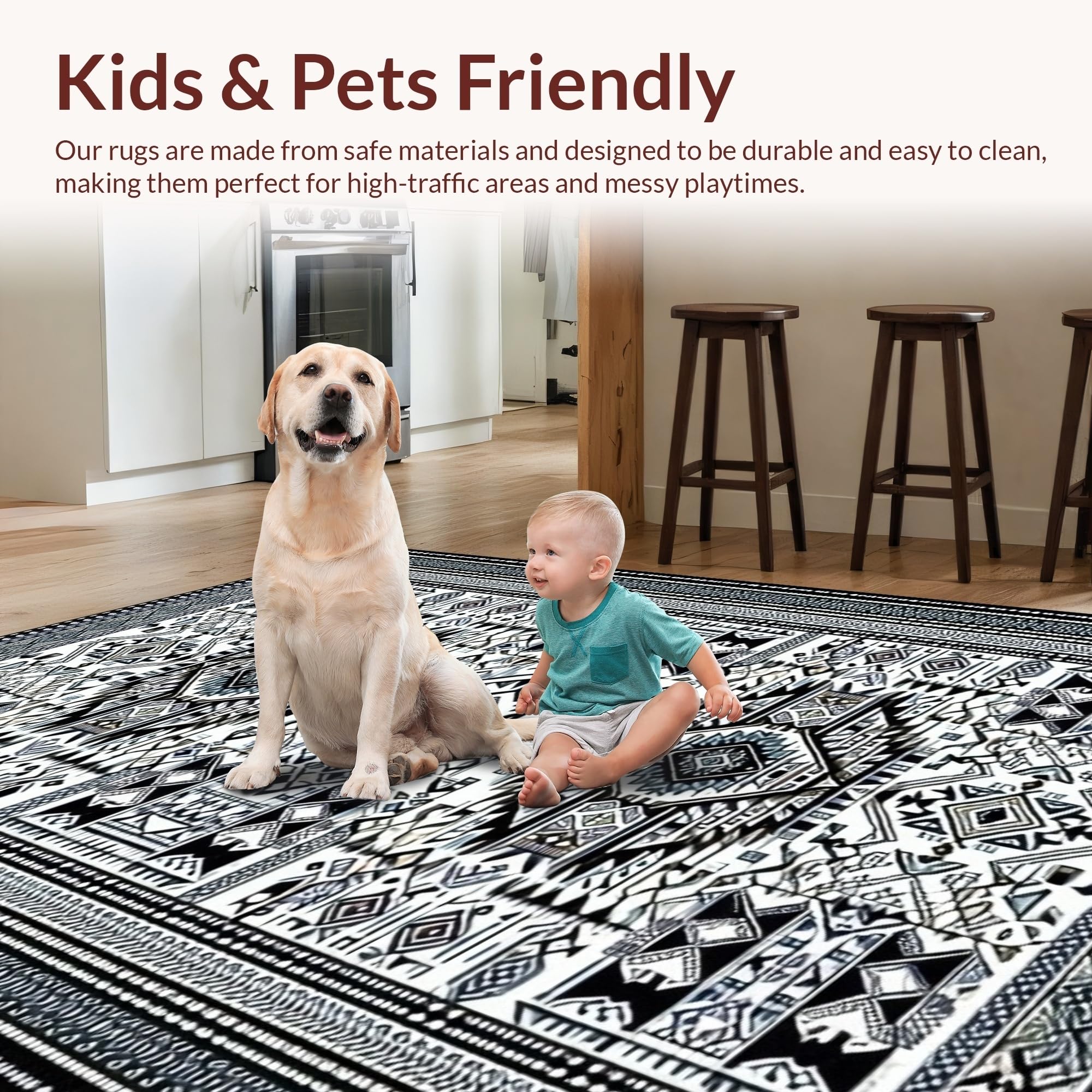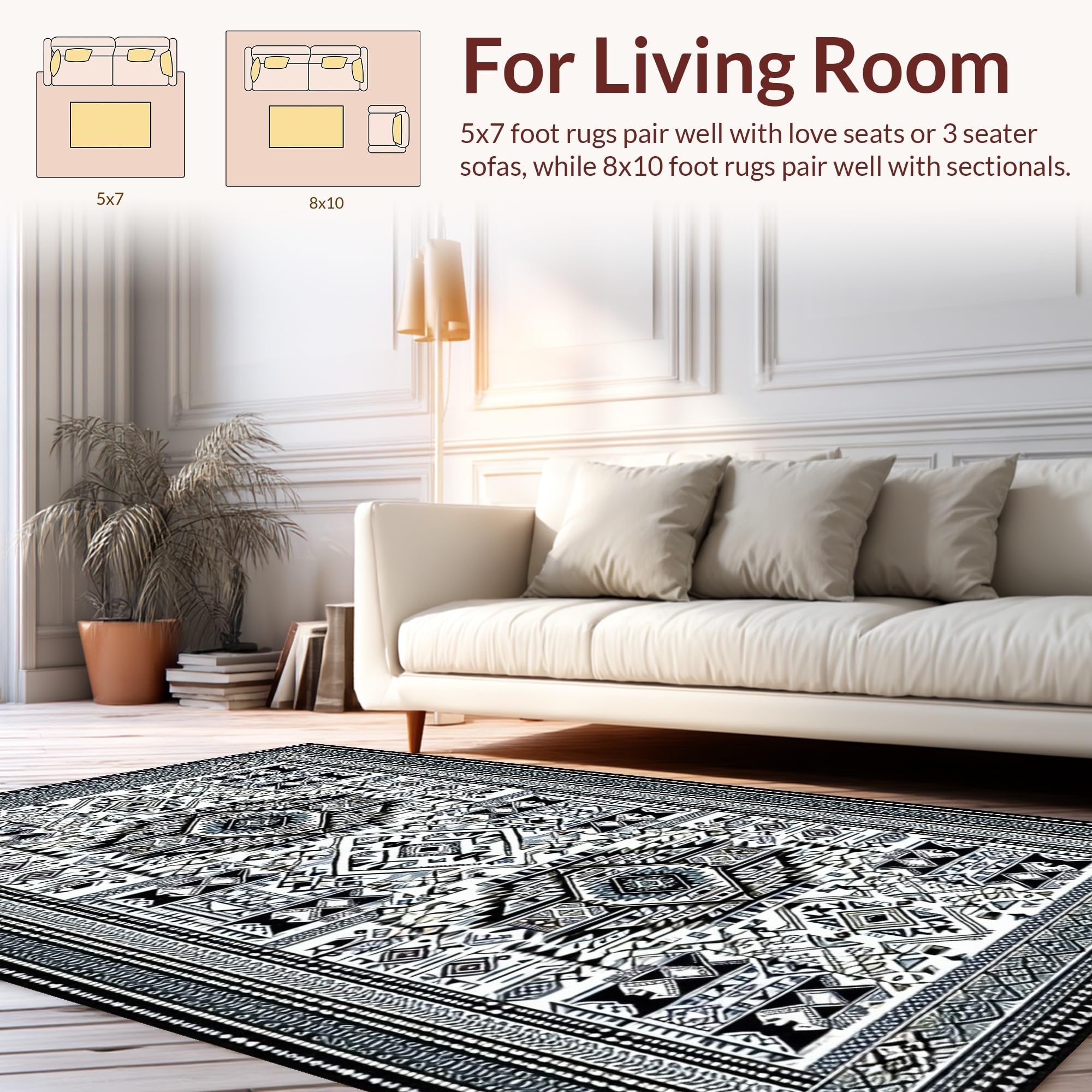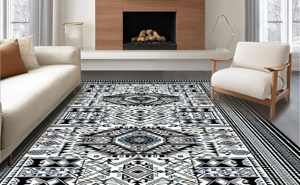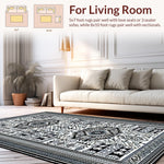 Ultra Soft Area Rug, Non Slip, Stain Resistant, Washable Area Rugs for Living Room, Bedroom, Chic Medallion Motif with Earthy Hues(Black) Overview: